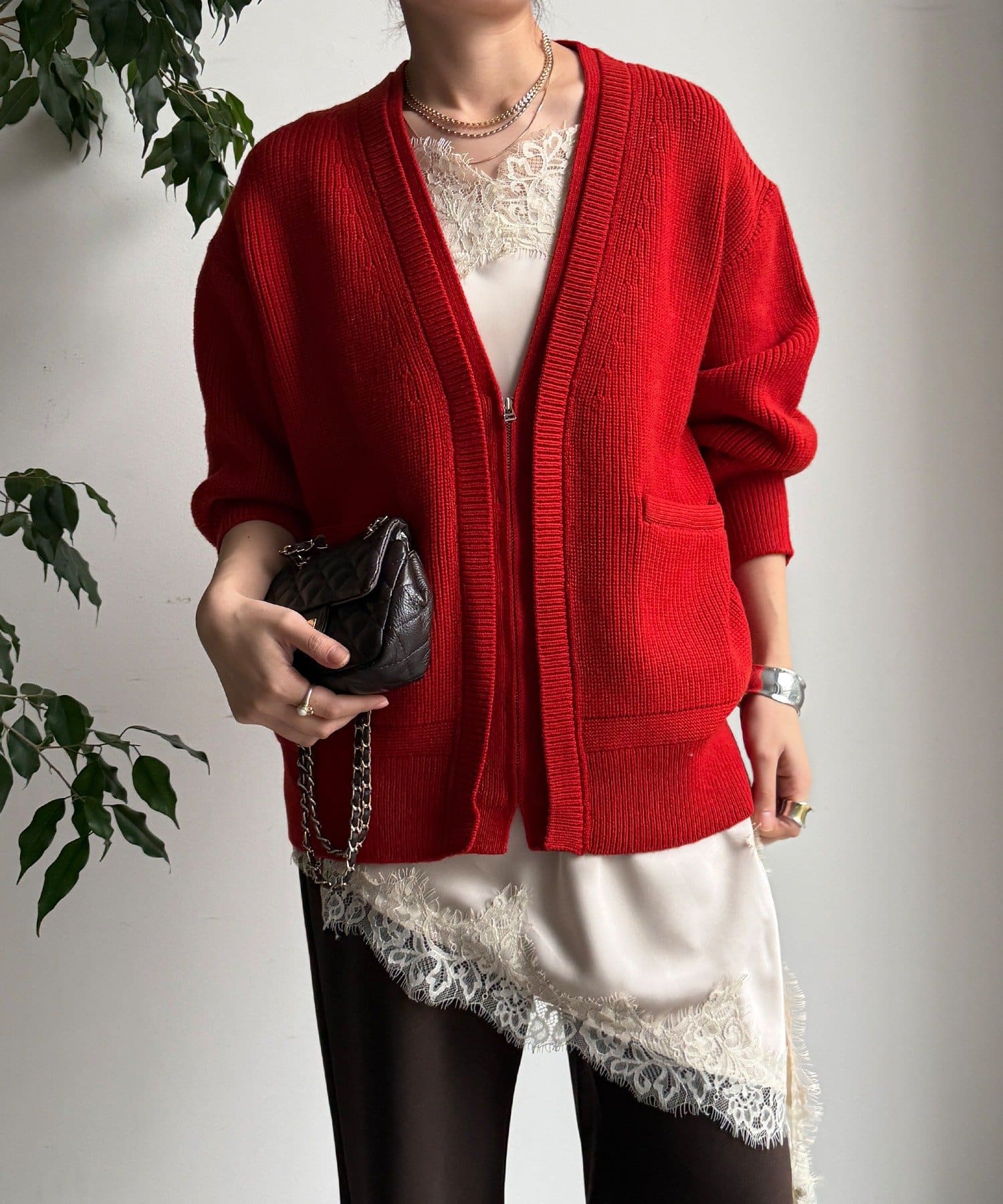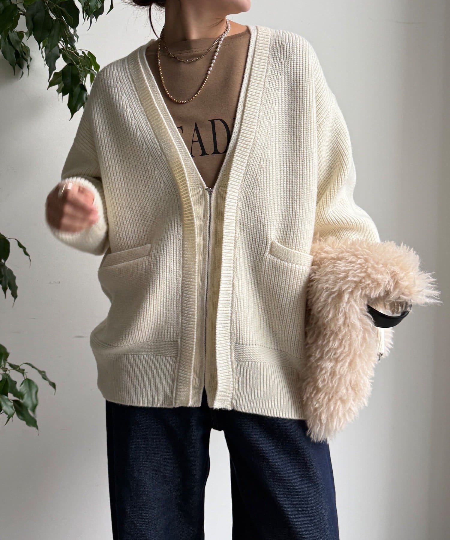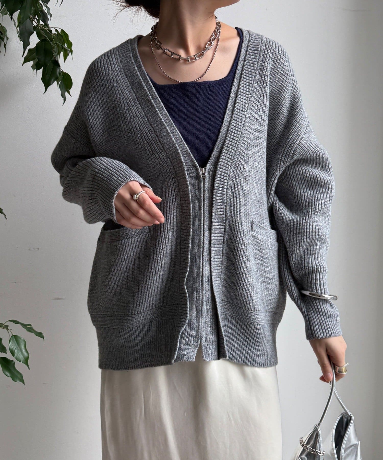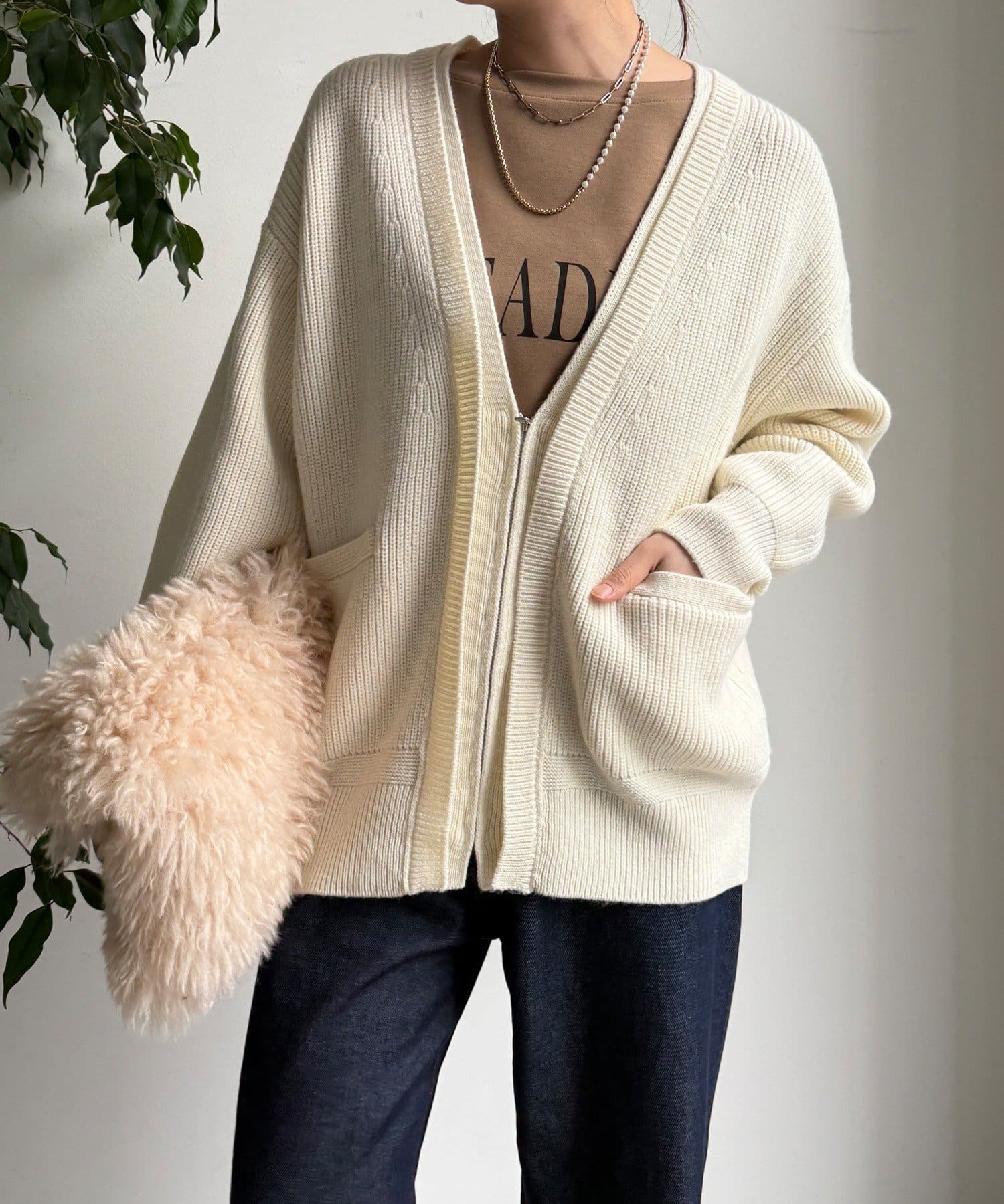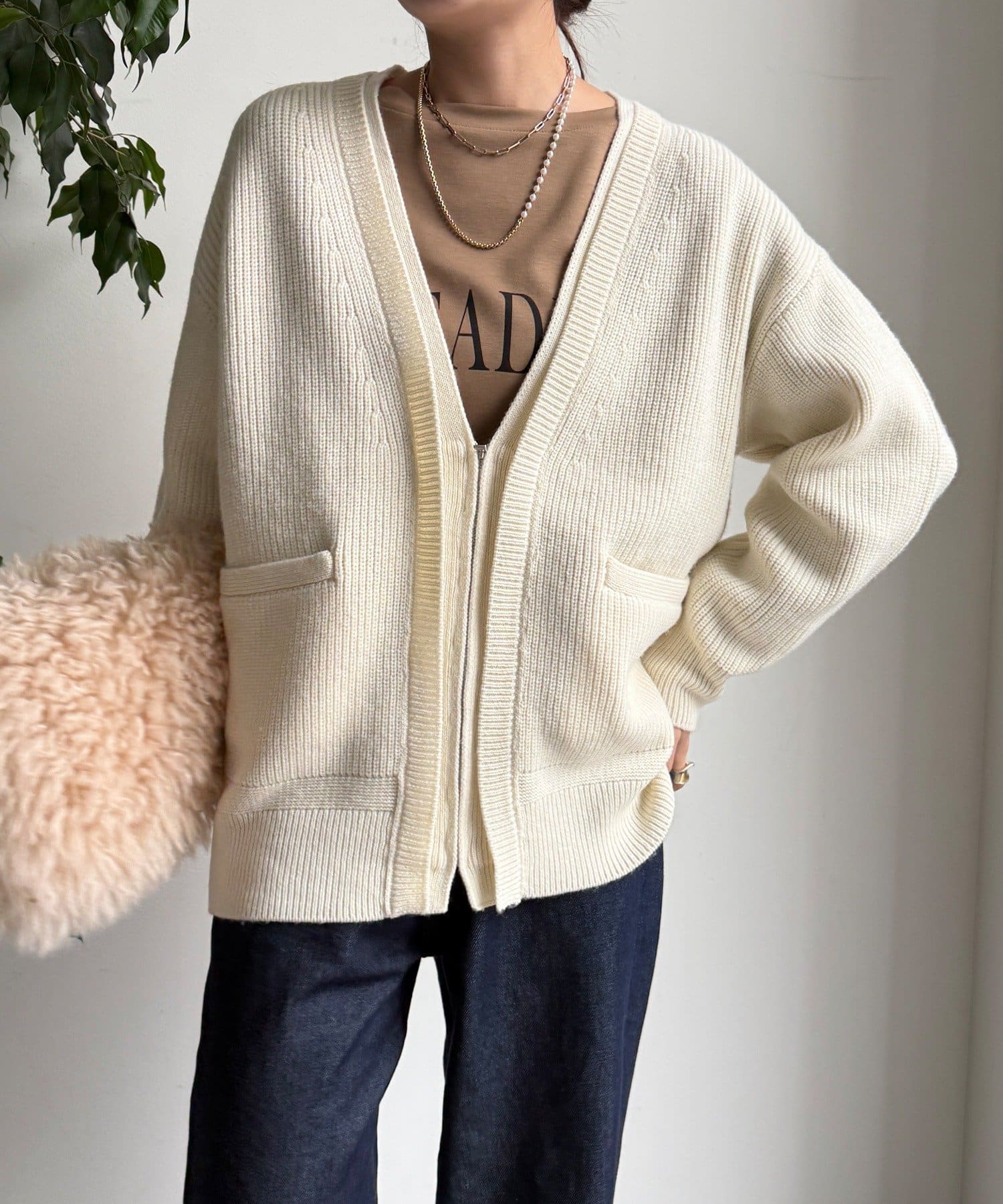DOUDOU(ドゥドゥ) ジップニットカーディガン