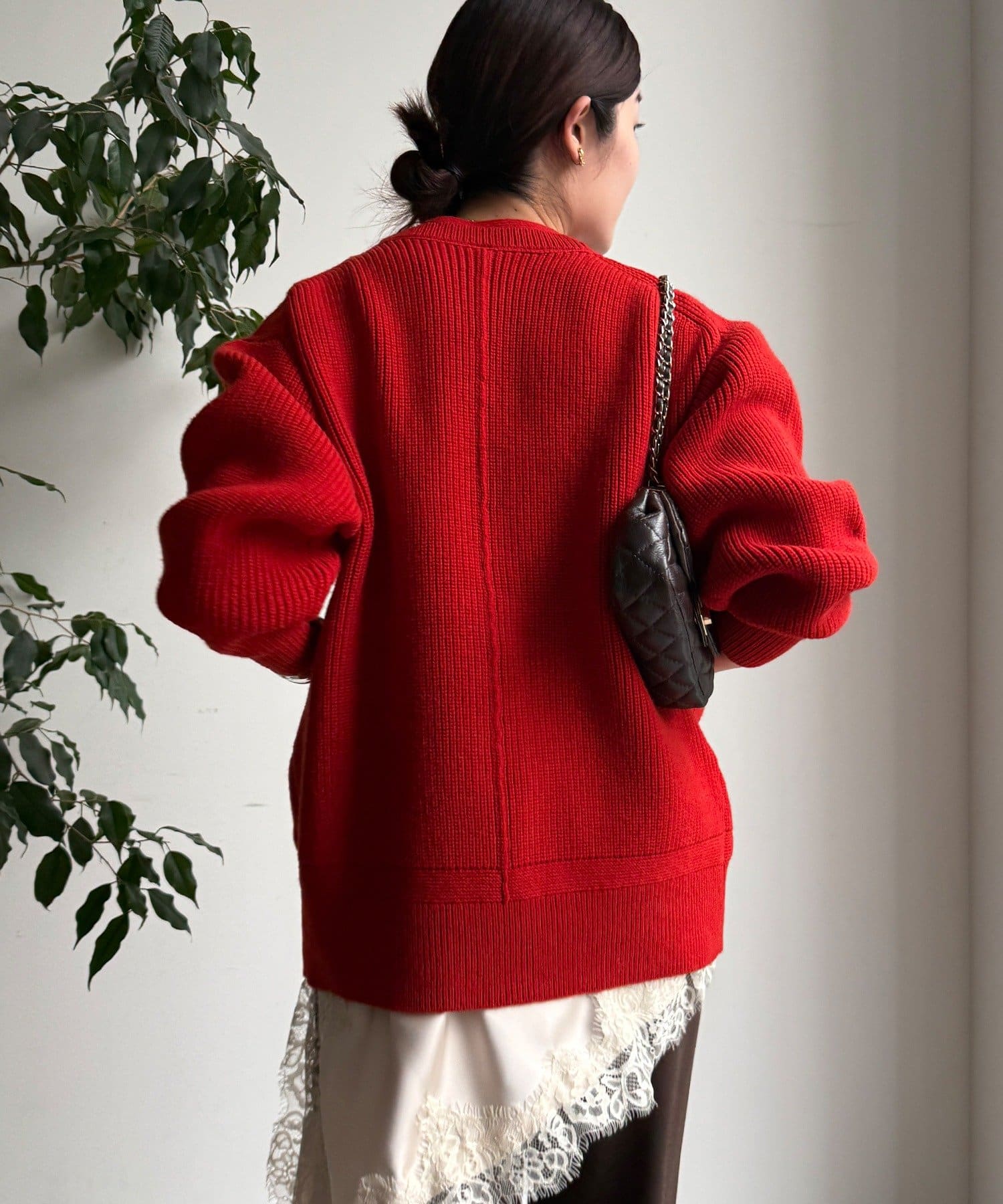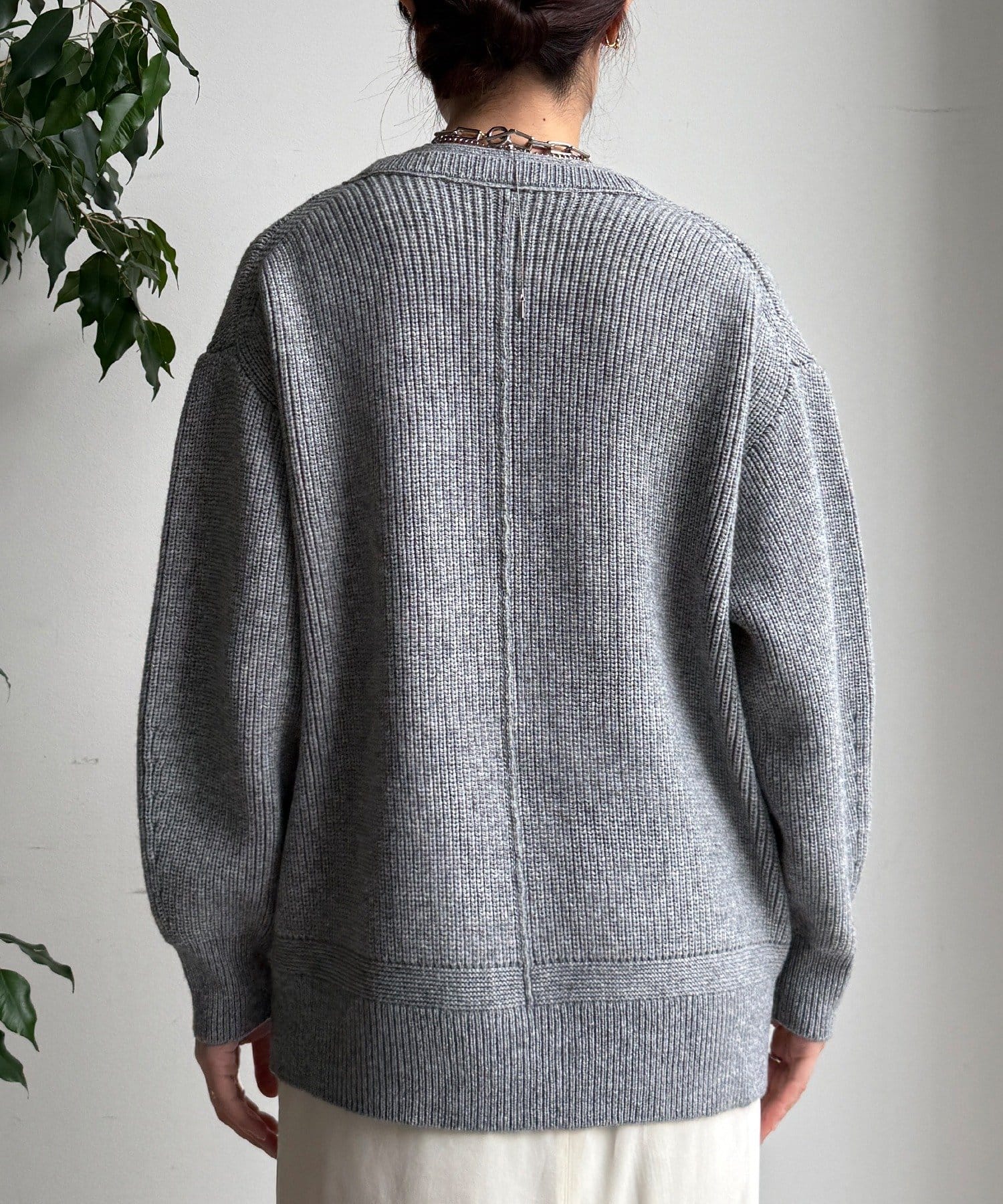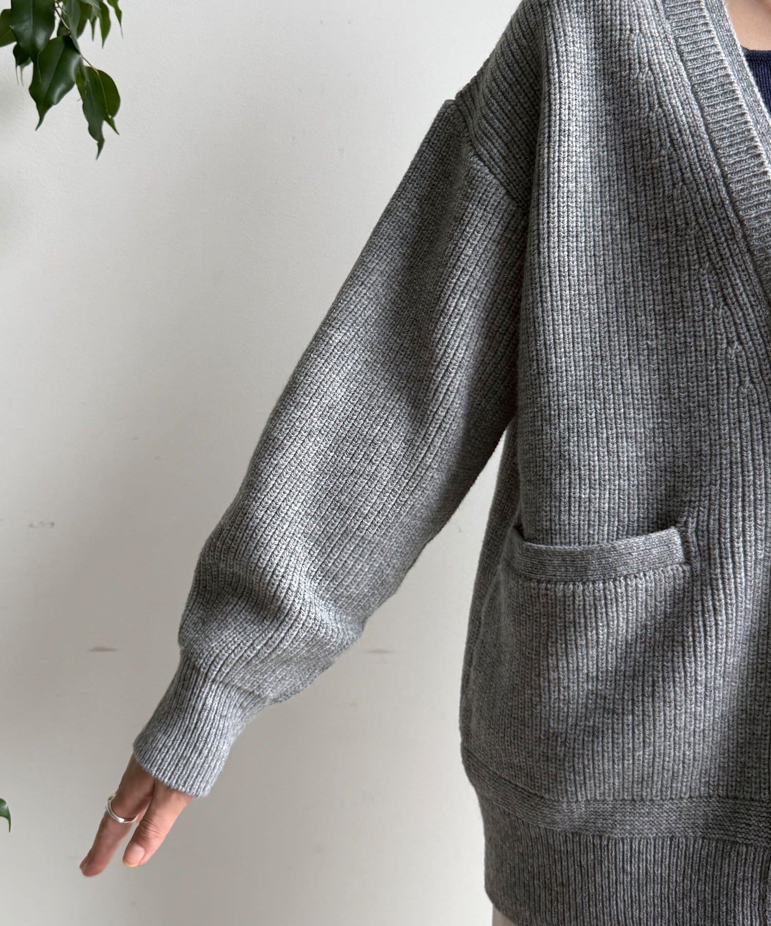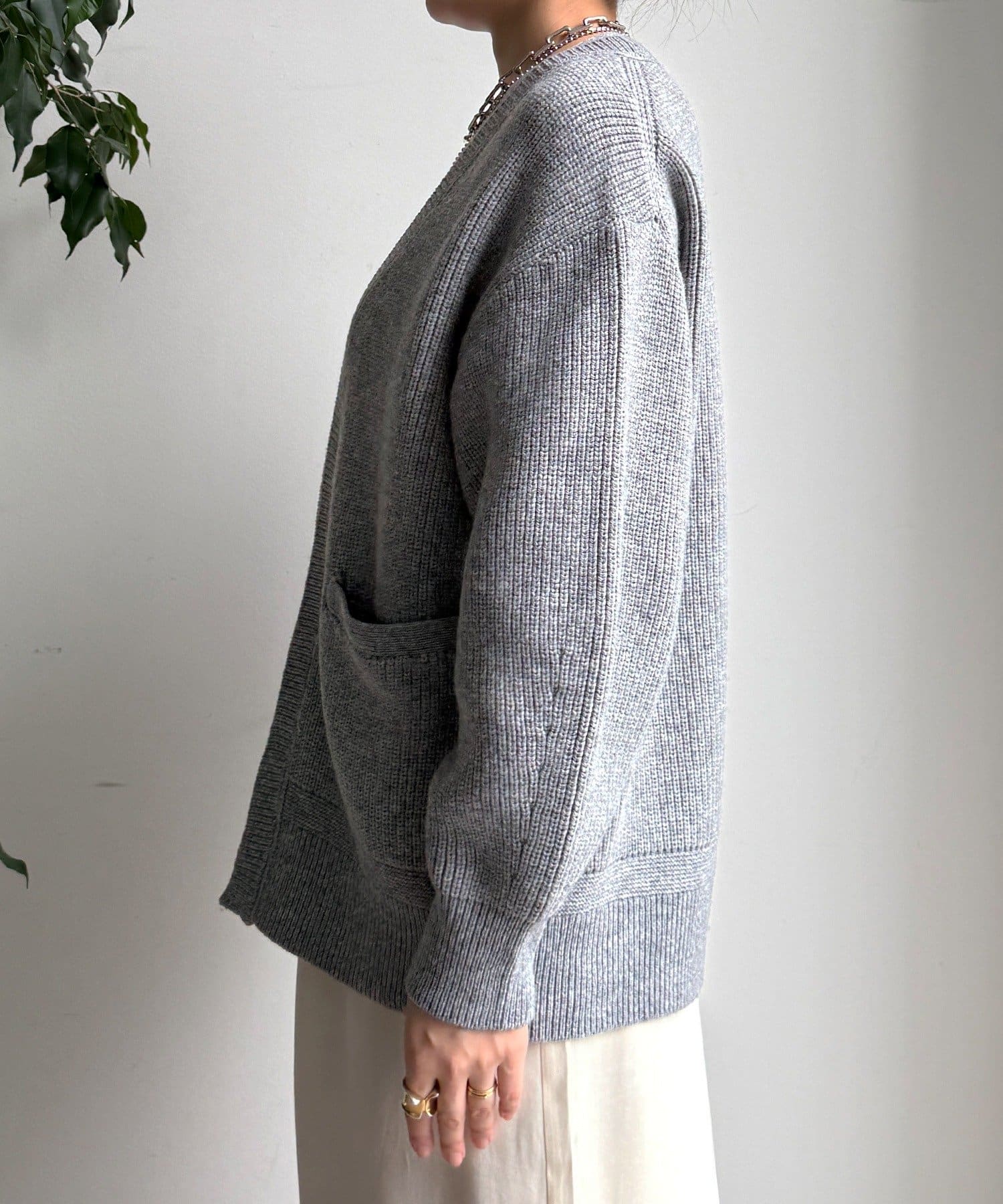 ウールをベースにブレンドした、暖かくふっくらとした肉感が魅力のニットカーデ。