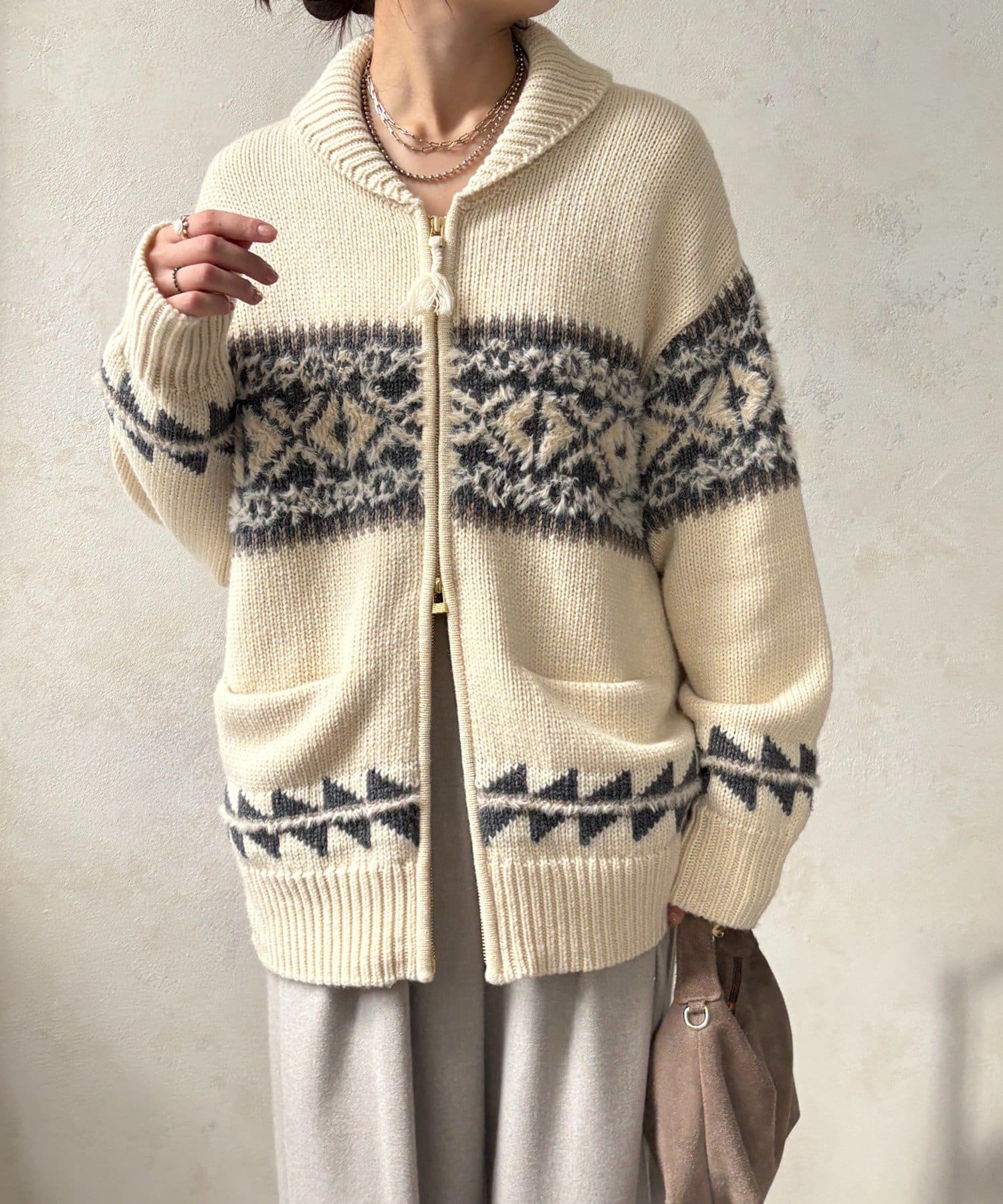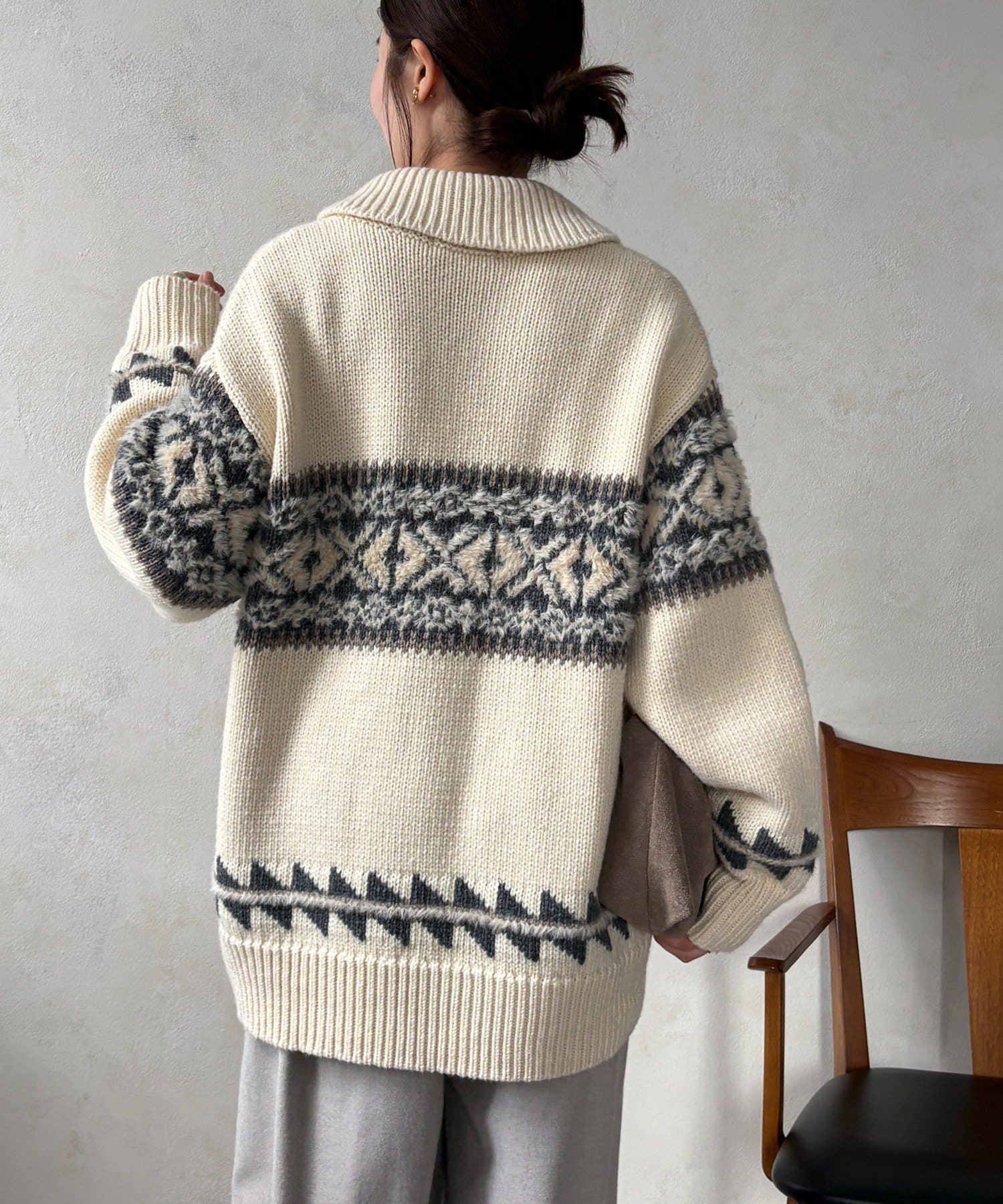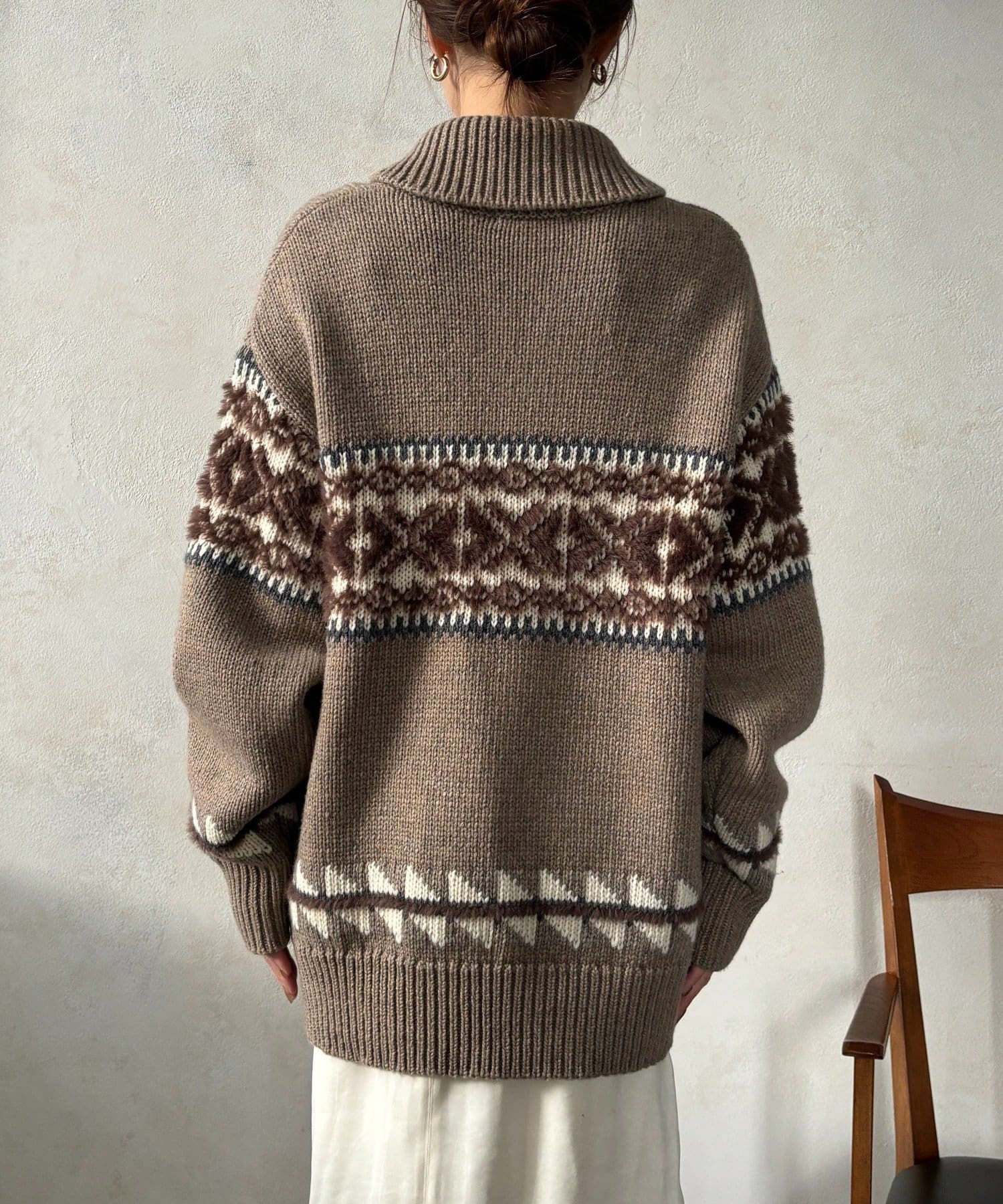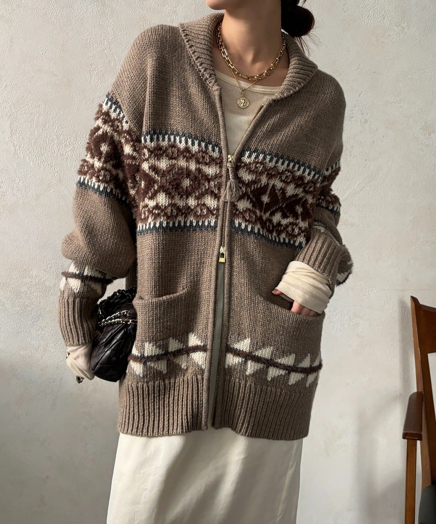 冬を纏う大人のノルディックジップカーディガン