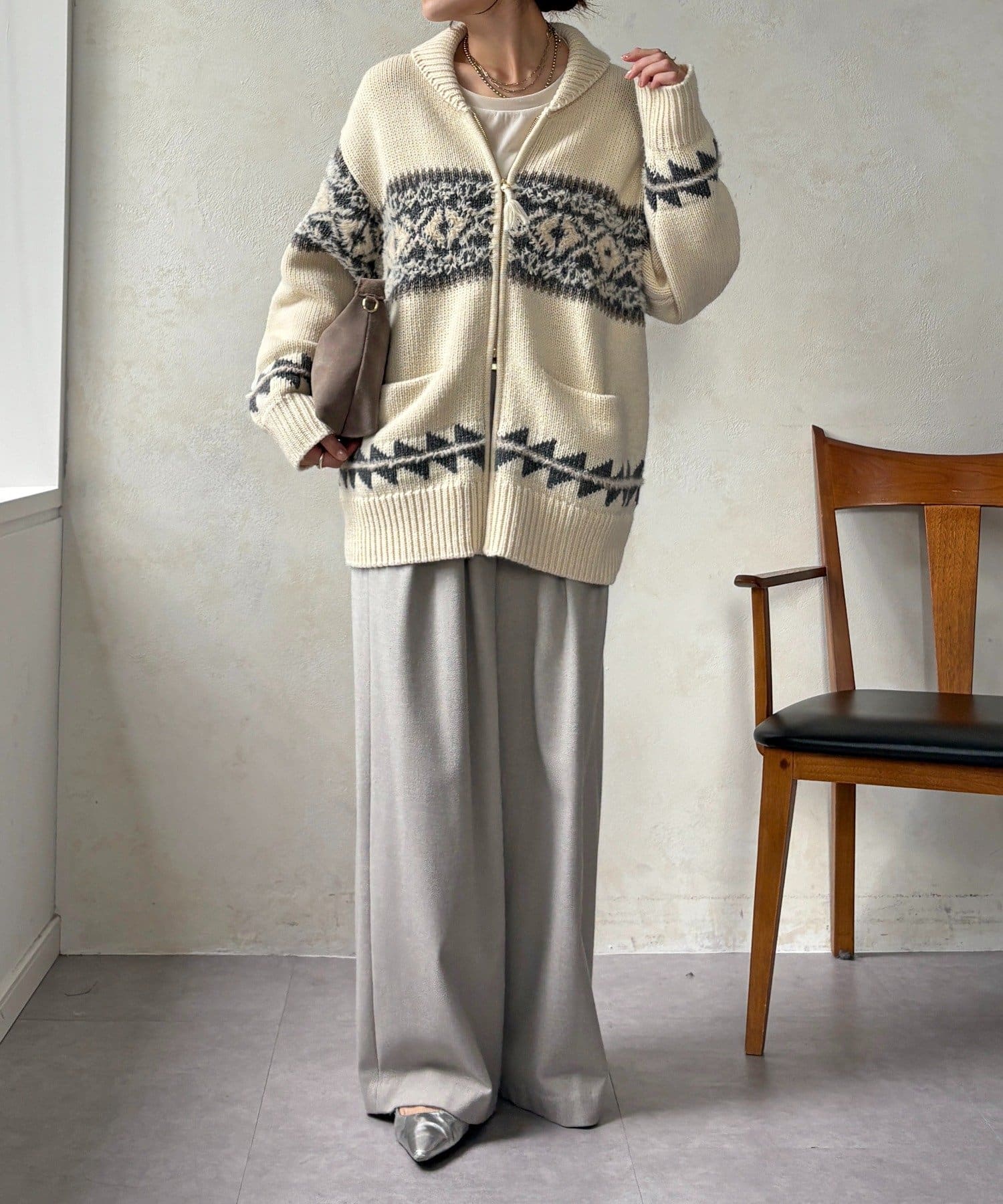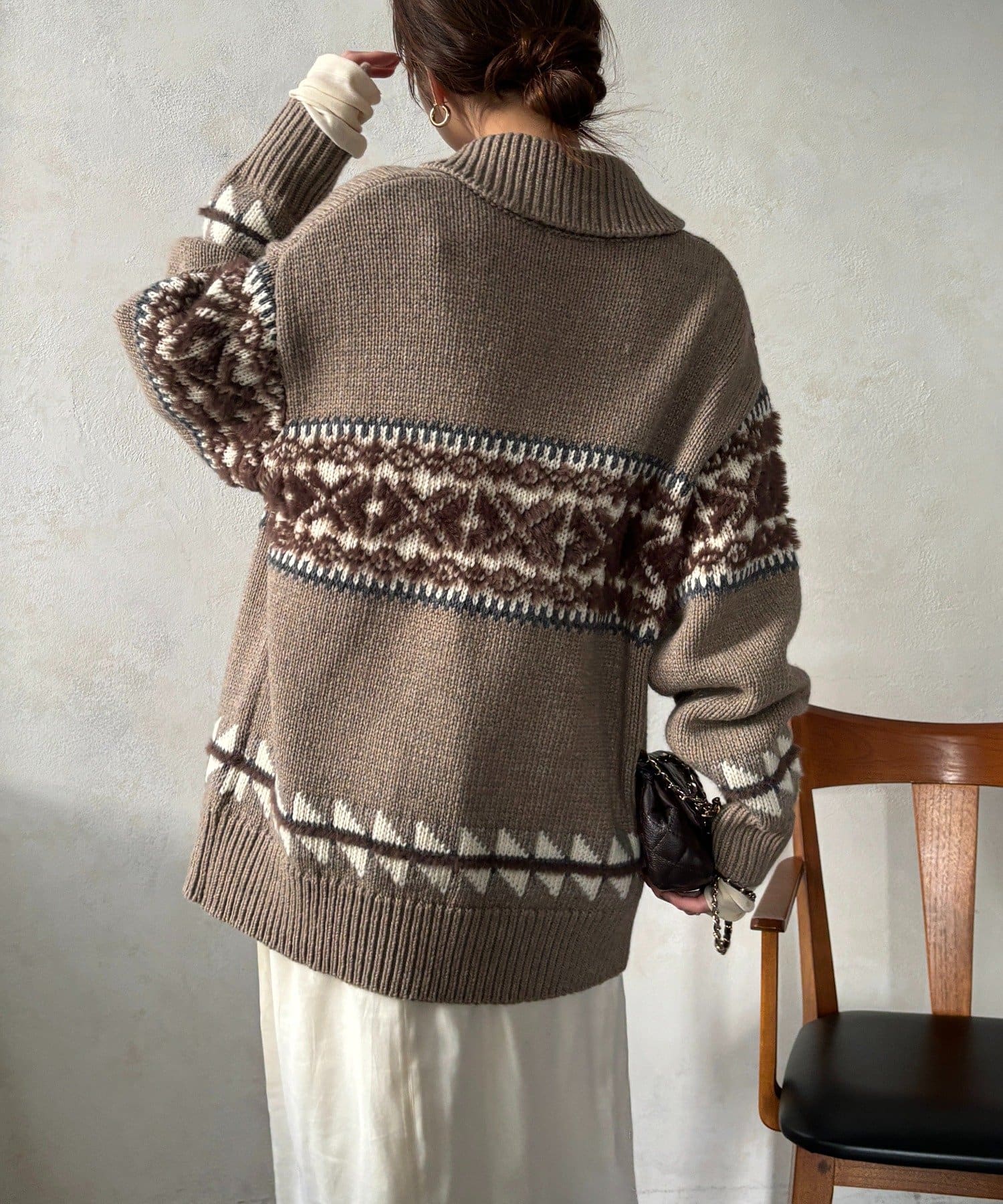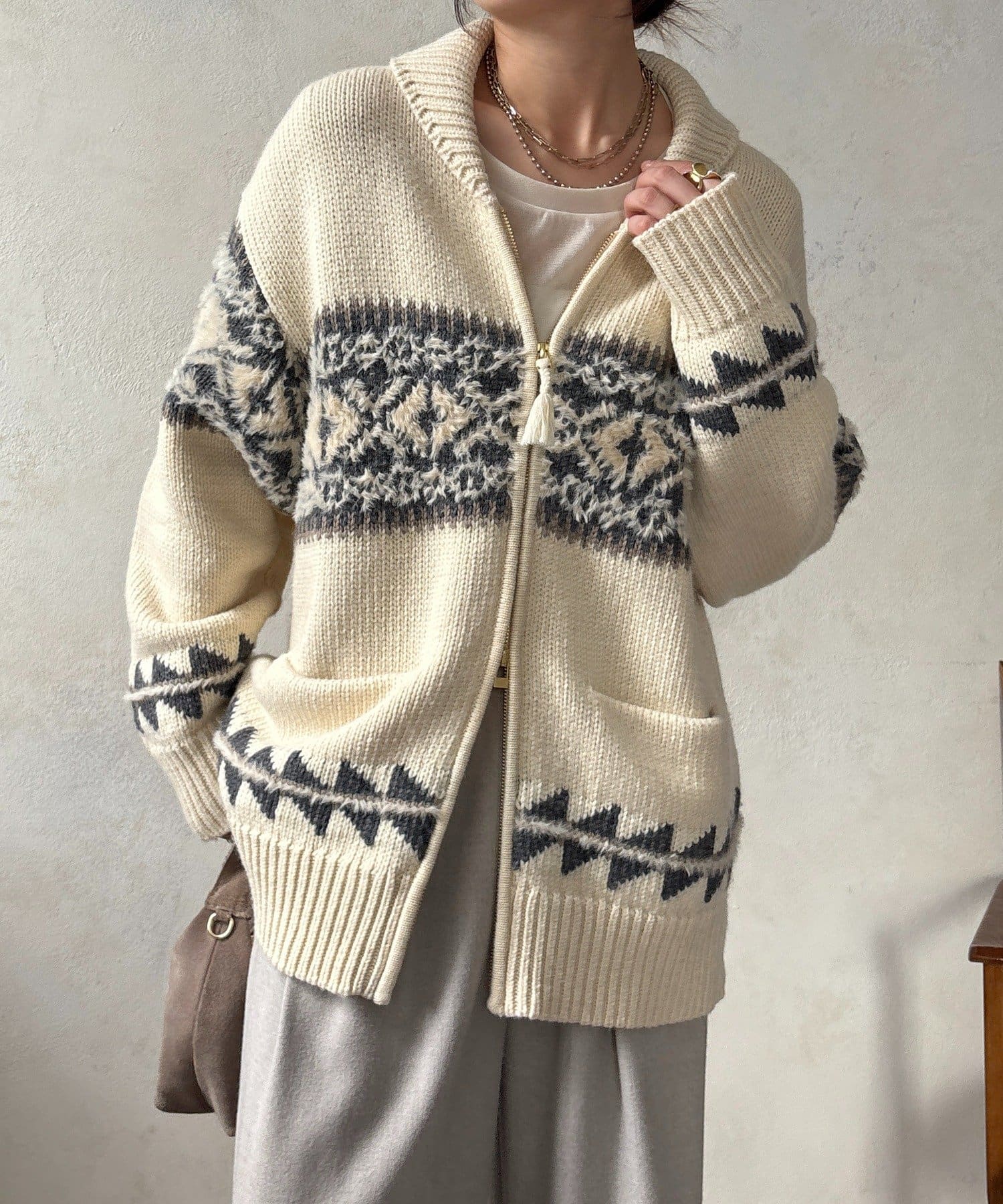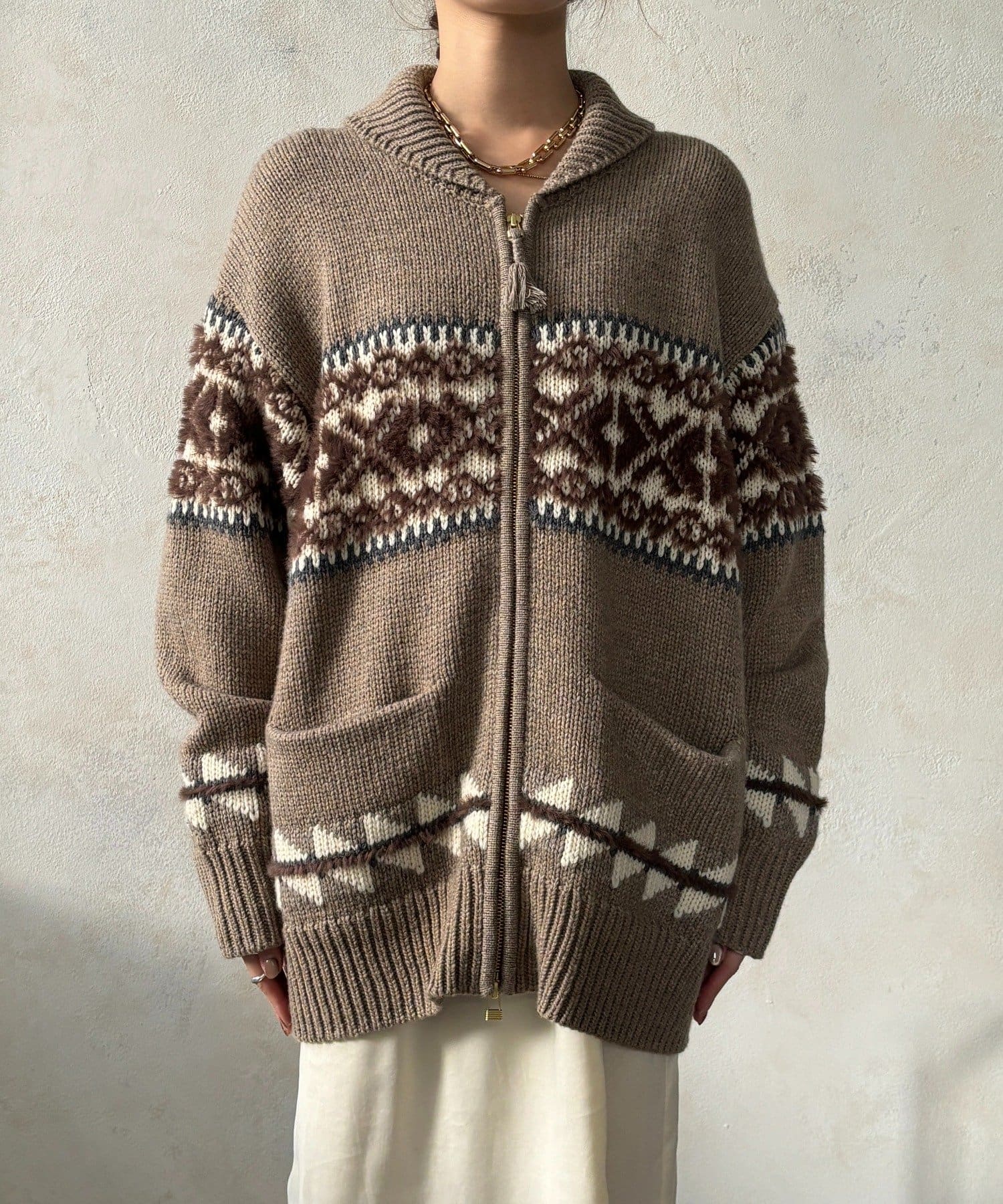 冬を纏う大人のノルディックジップカーディガン