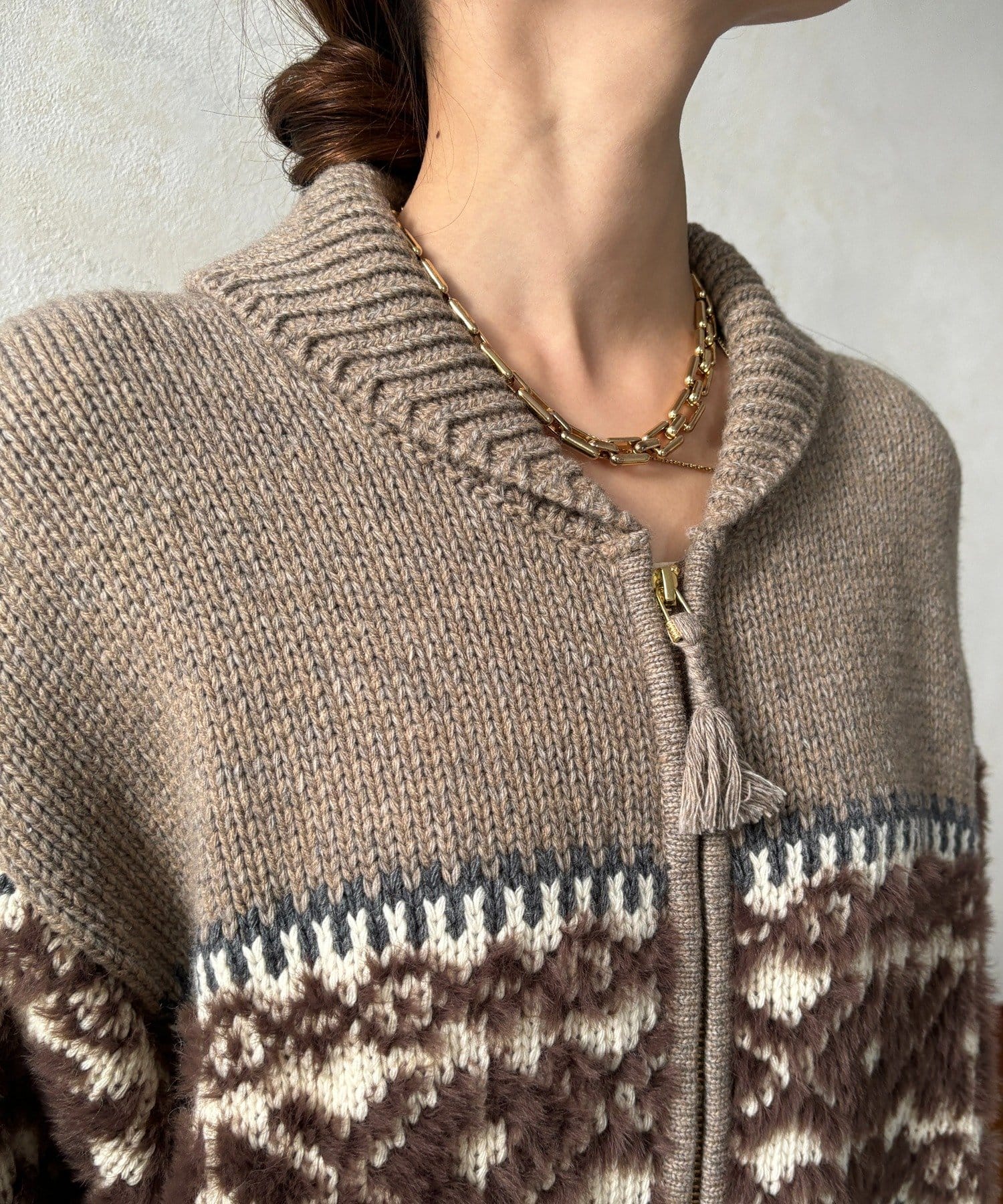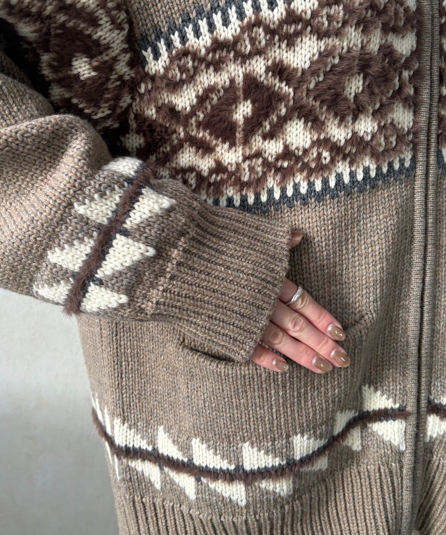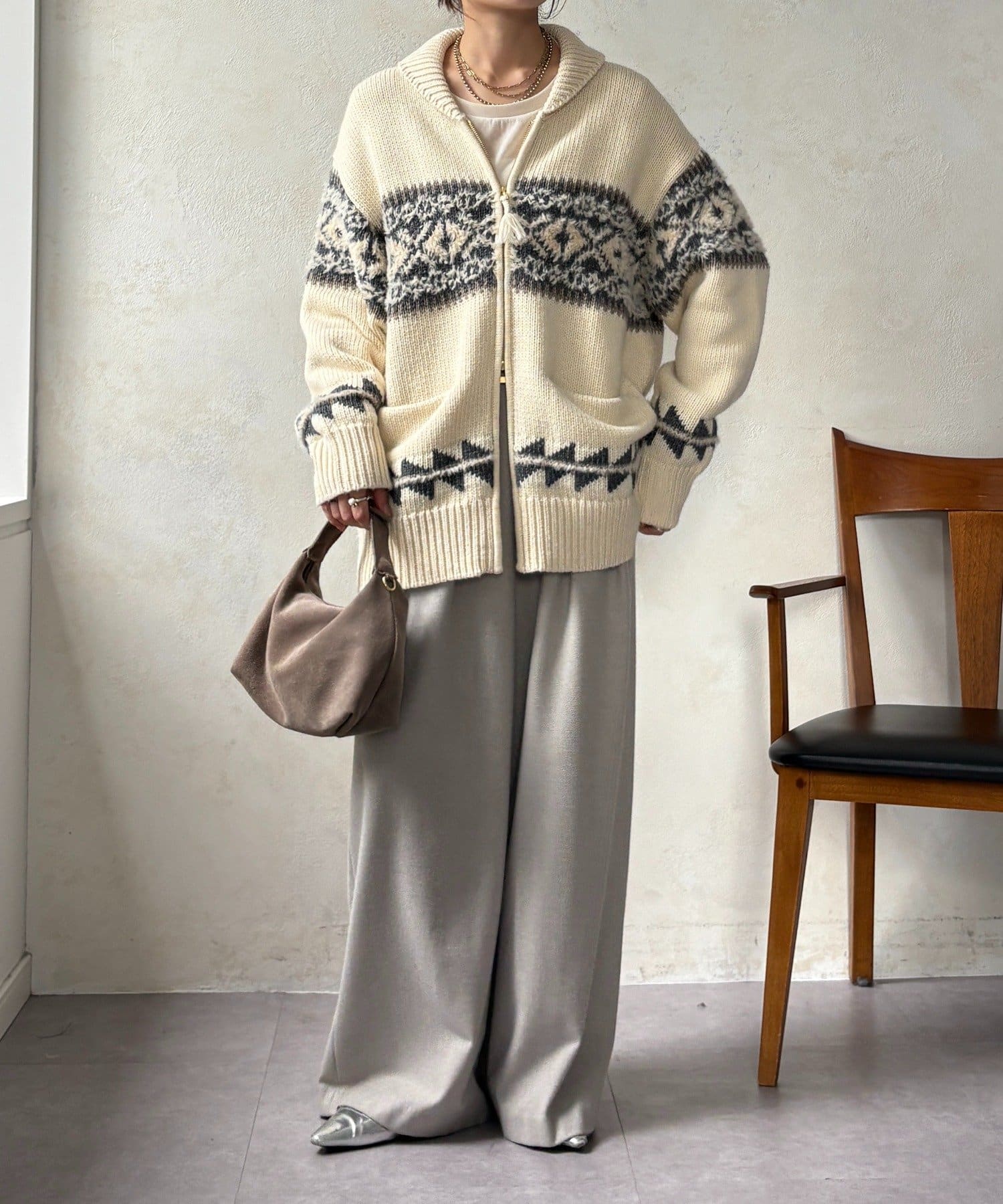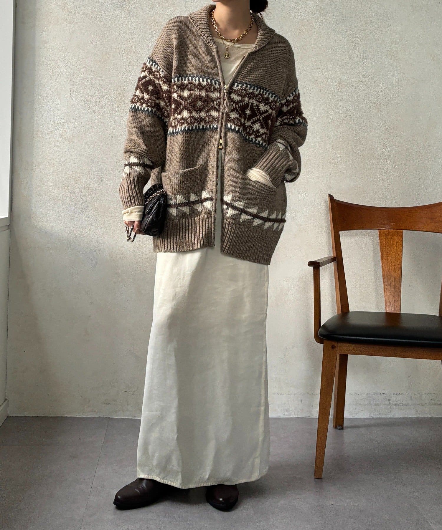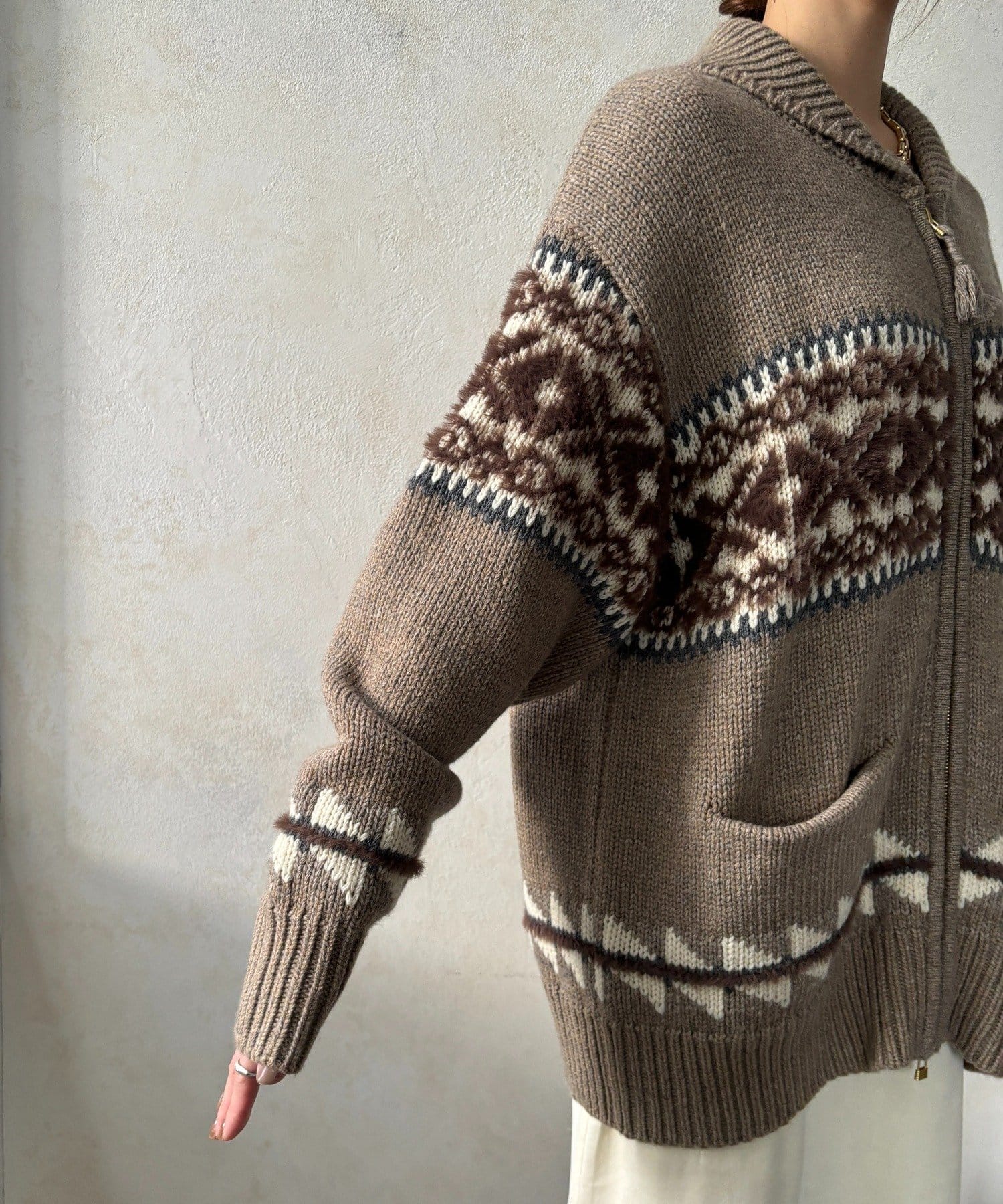 冬を纏う大人のノルディックジップカーディガン