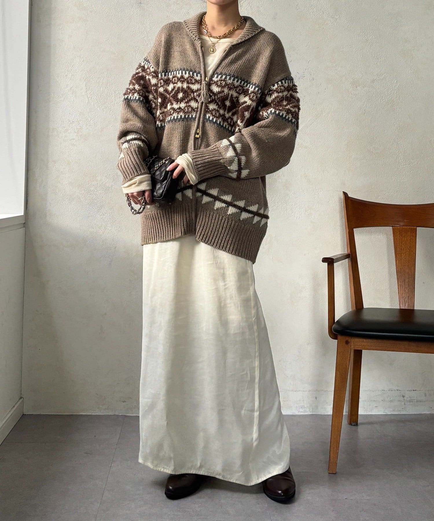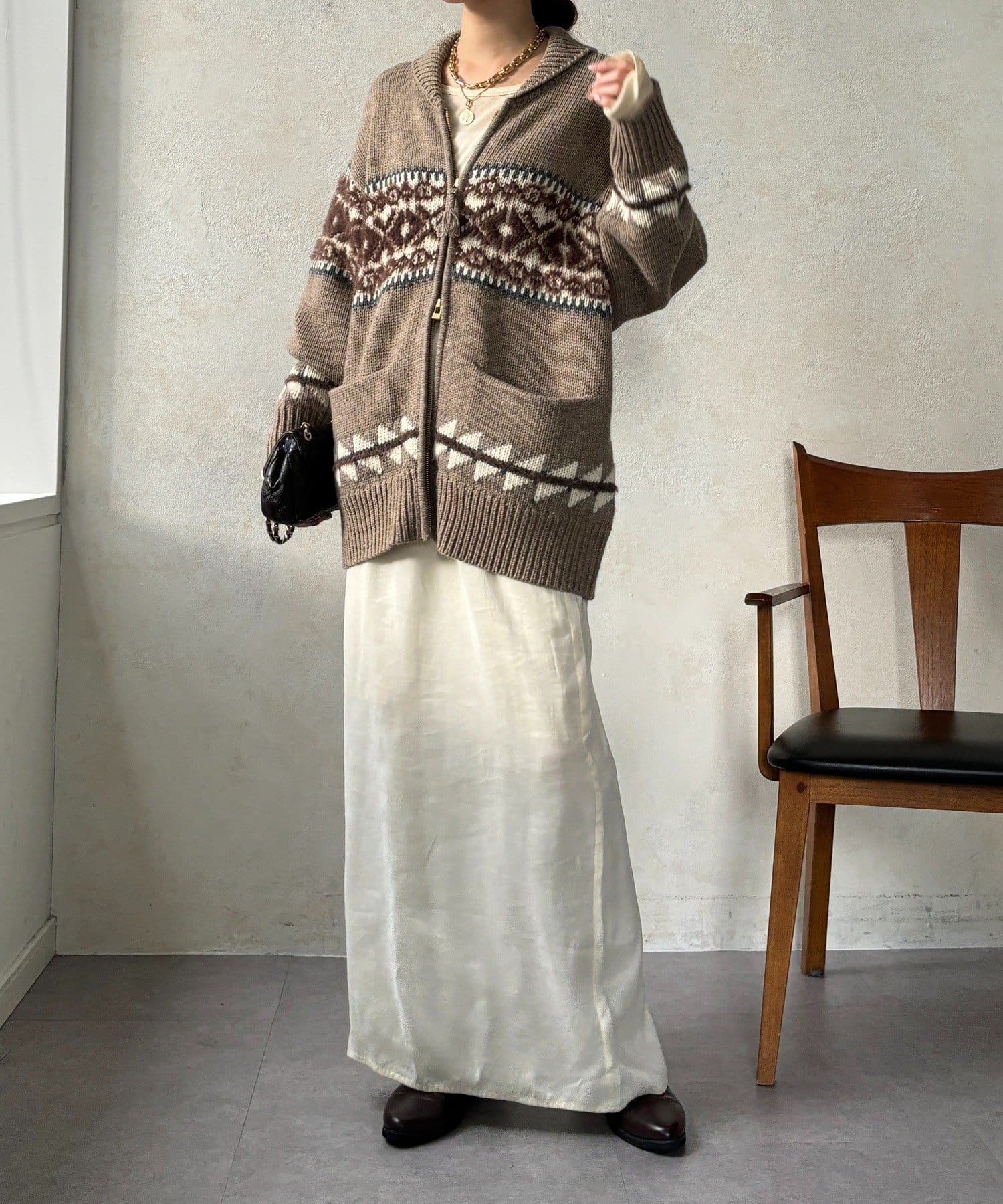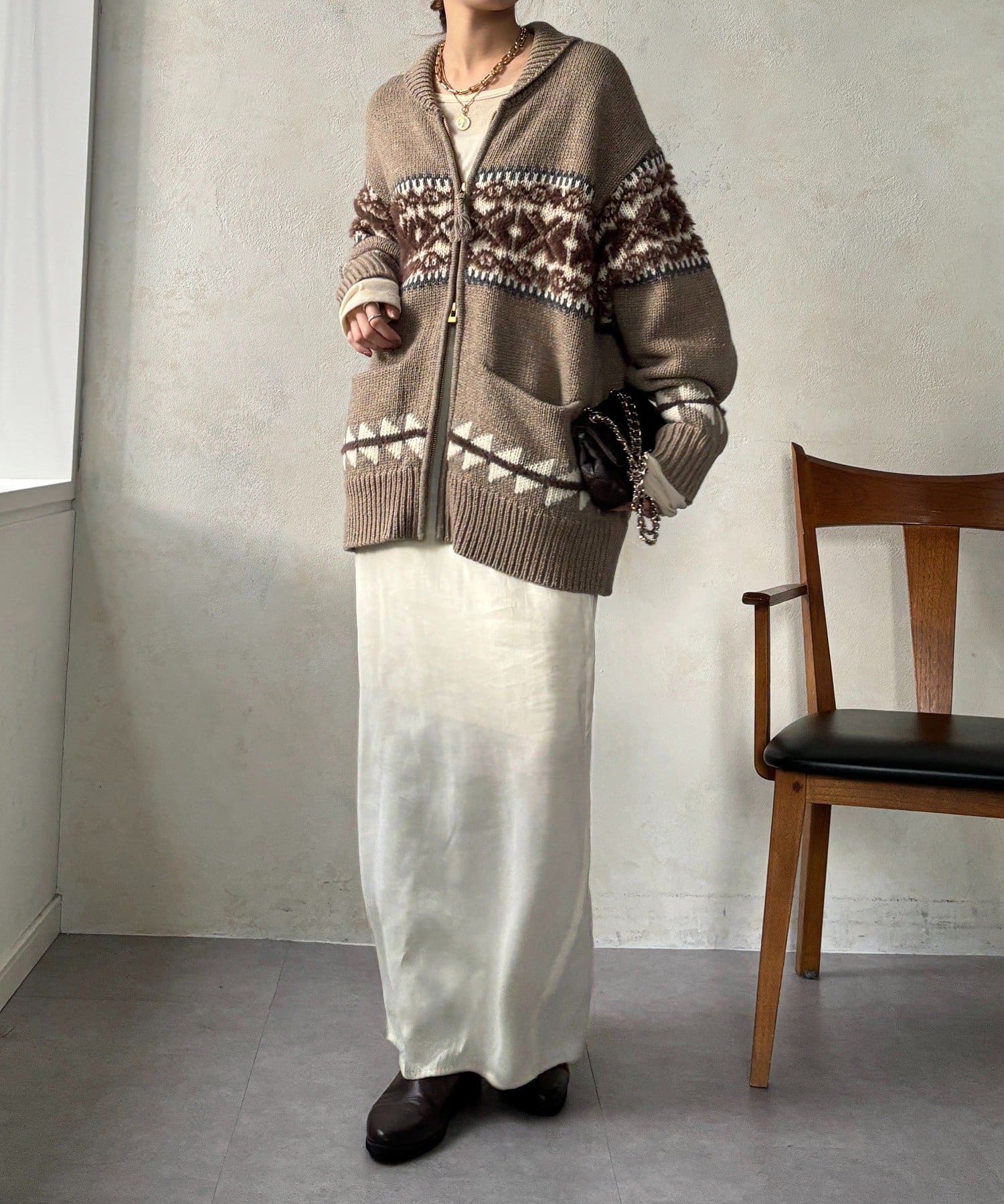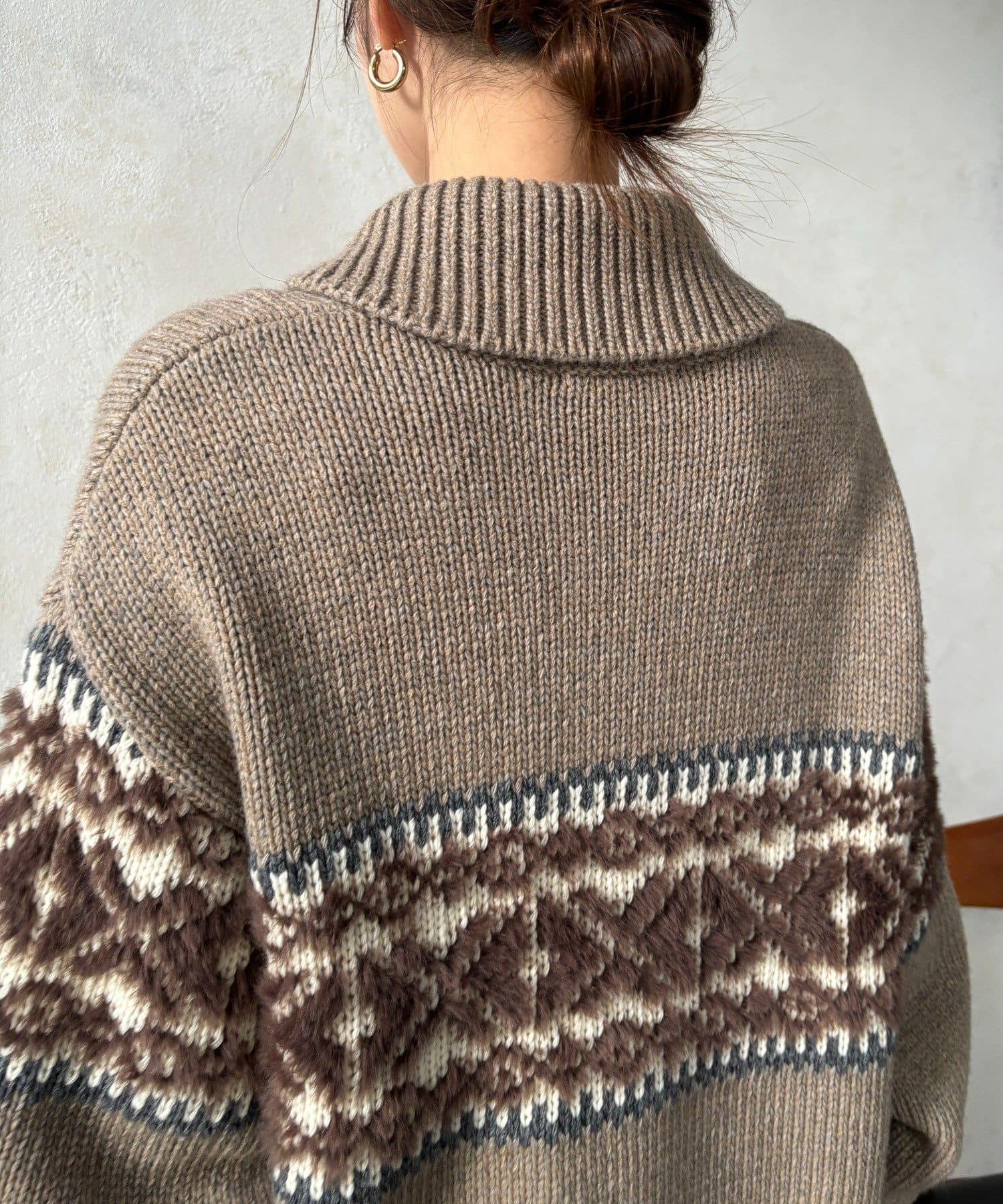 冬を纏う大人のノルディックジップカーディガン