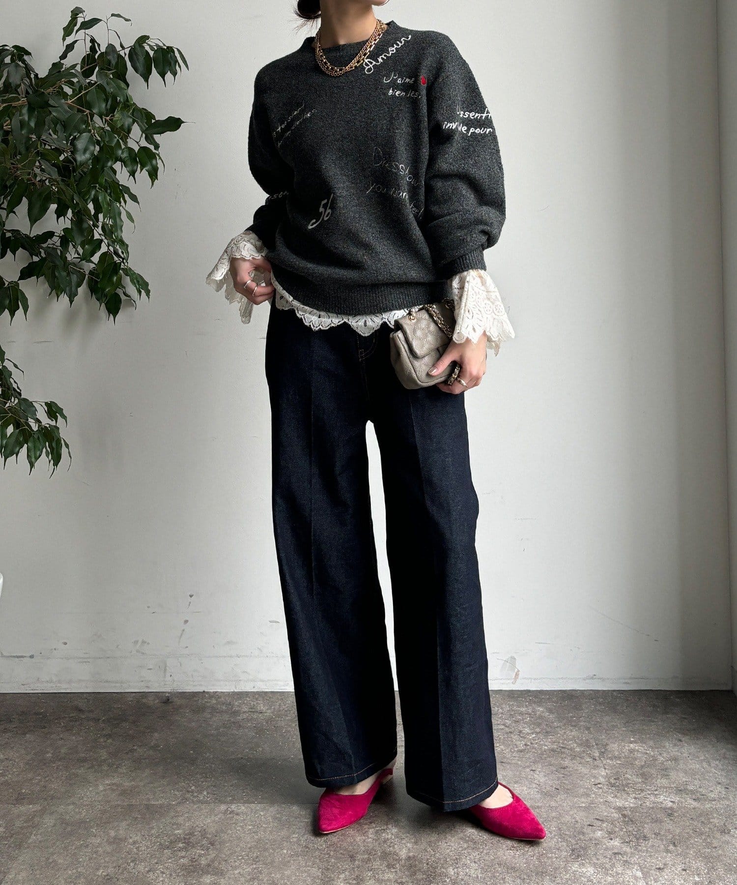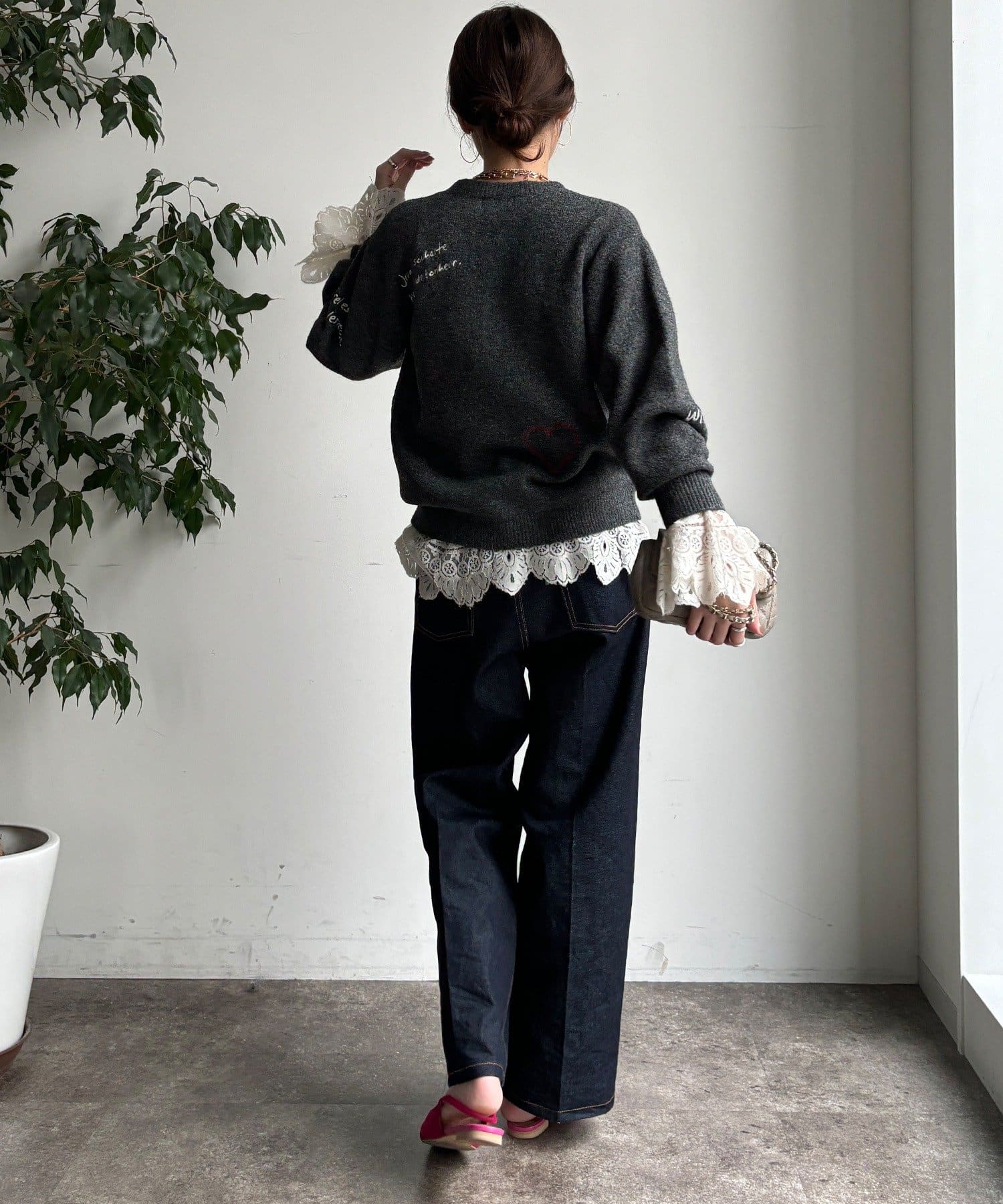 袖口からレースのブラウスなどをレイヤードしてもさらに華やかに◎