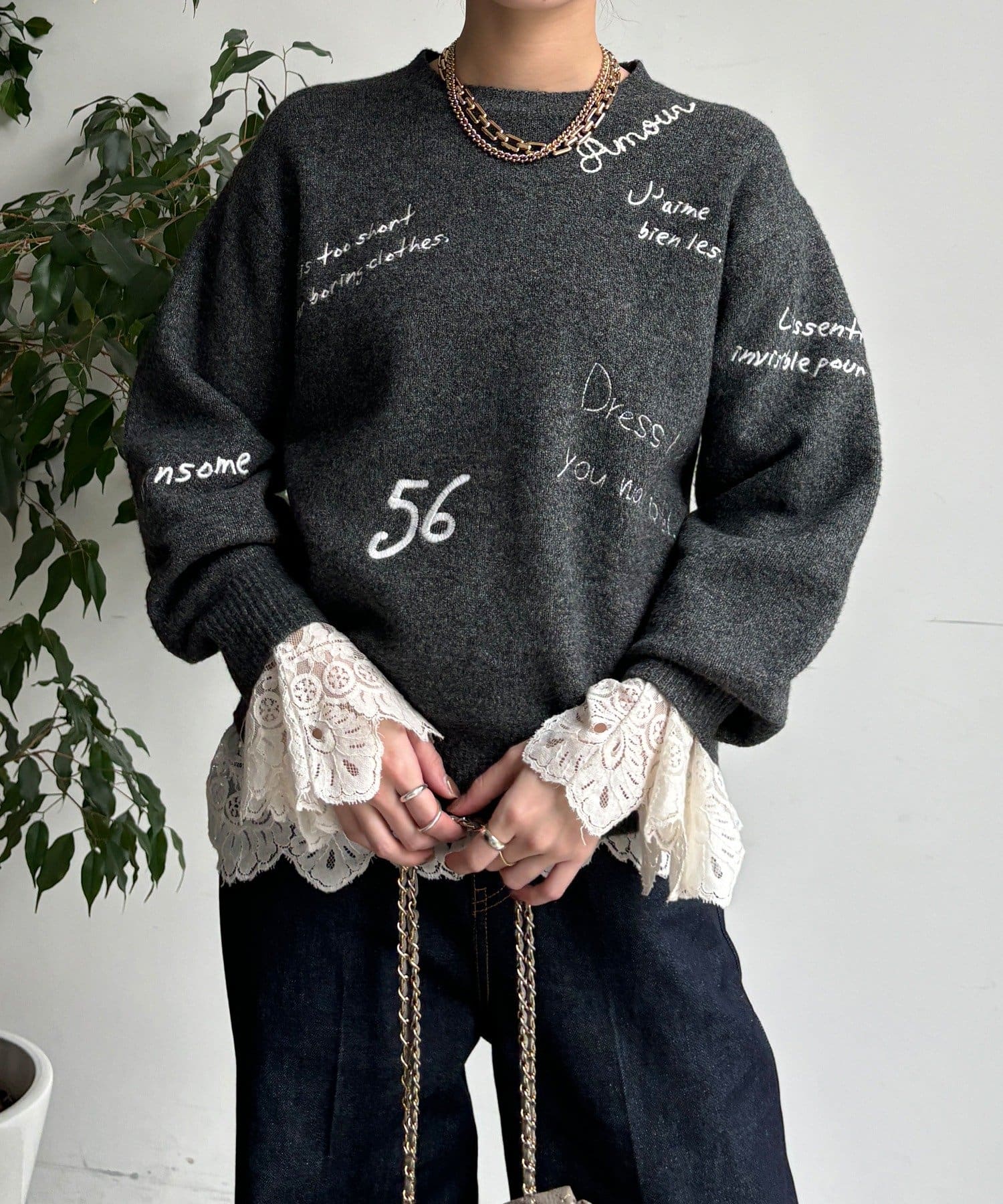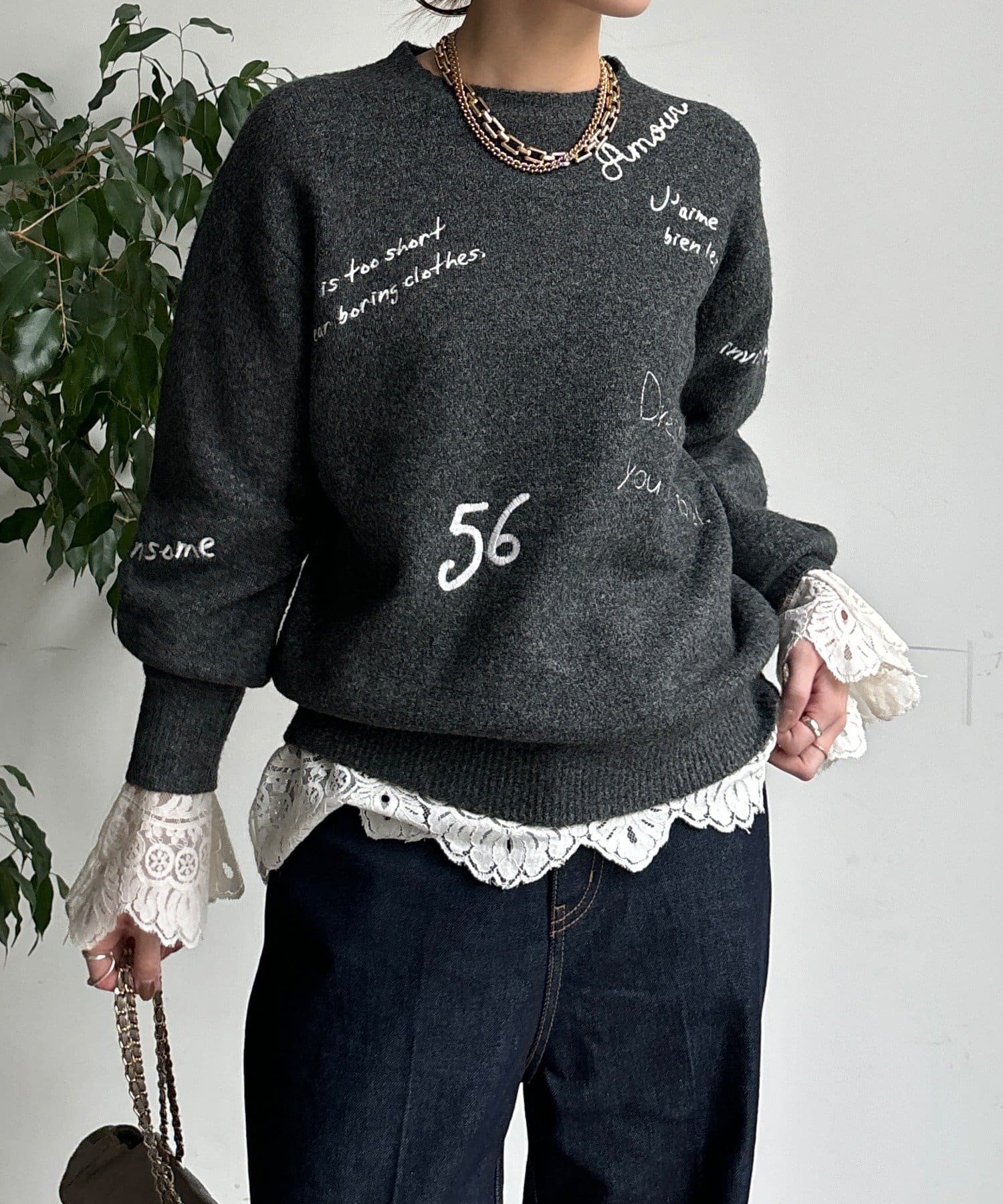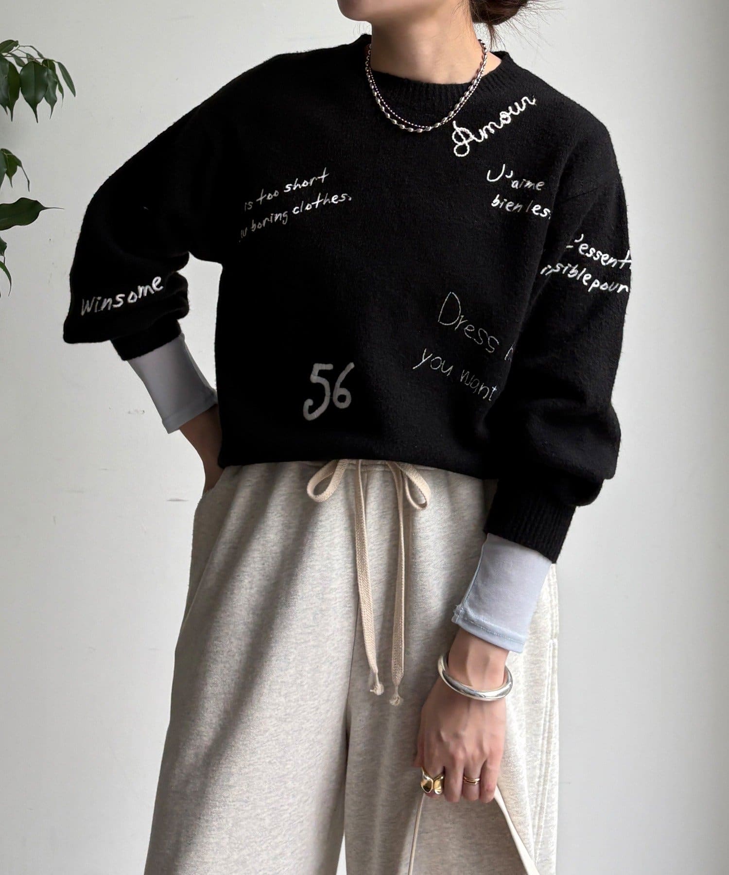 手書き風のレタリング刺繍を散りばめた、存在感たっぷりのプルオーバーが登場!
