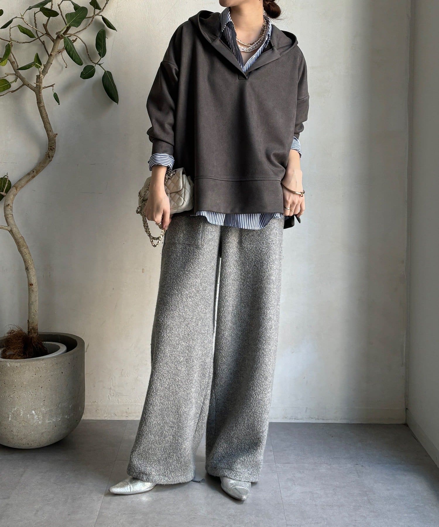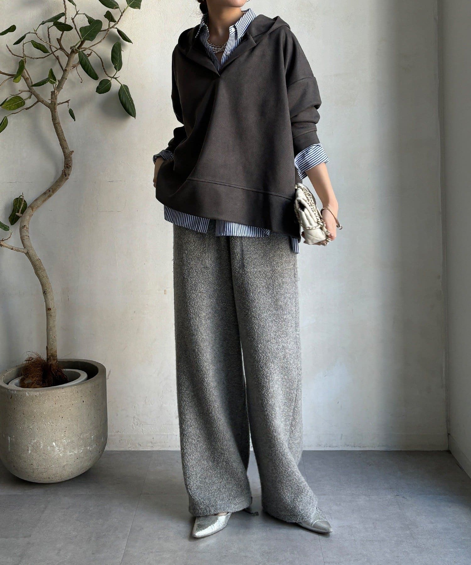 ゆったりした落ち感で体型を拾わず、自然に華奢見えを叶えます。