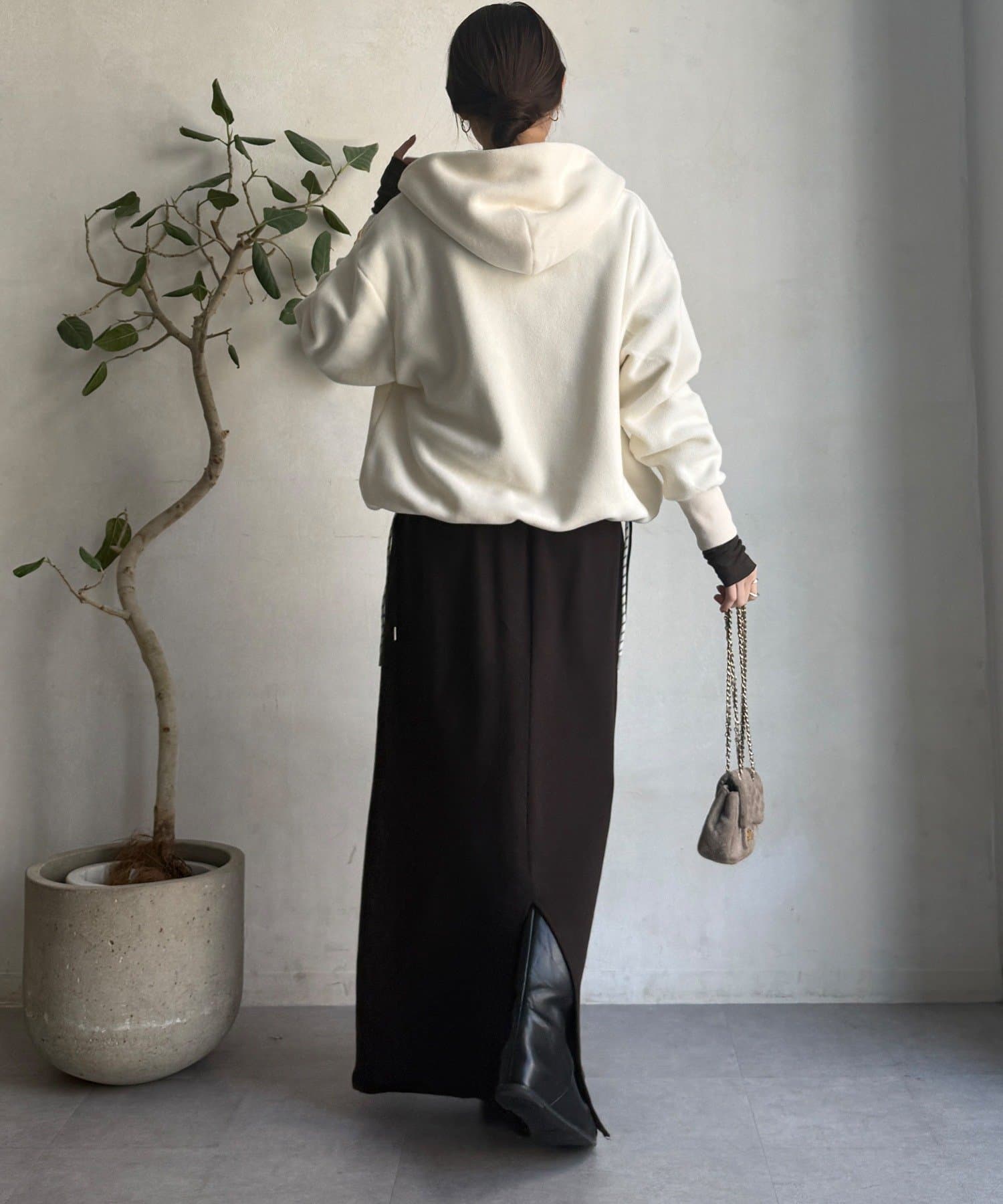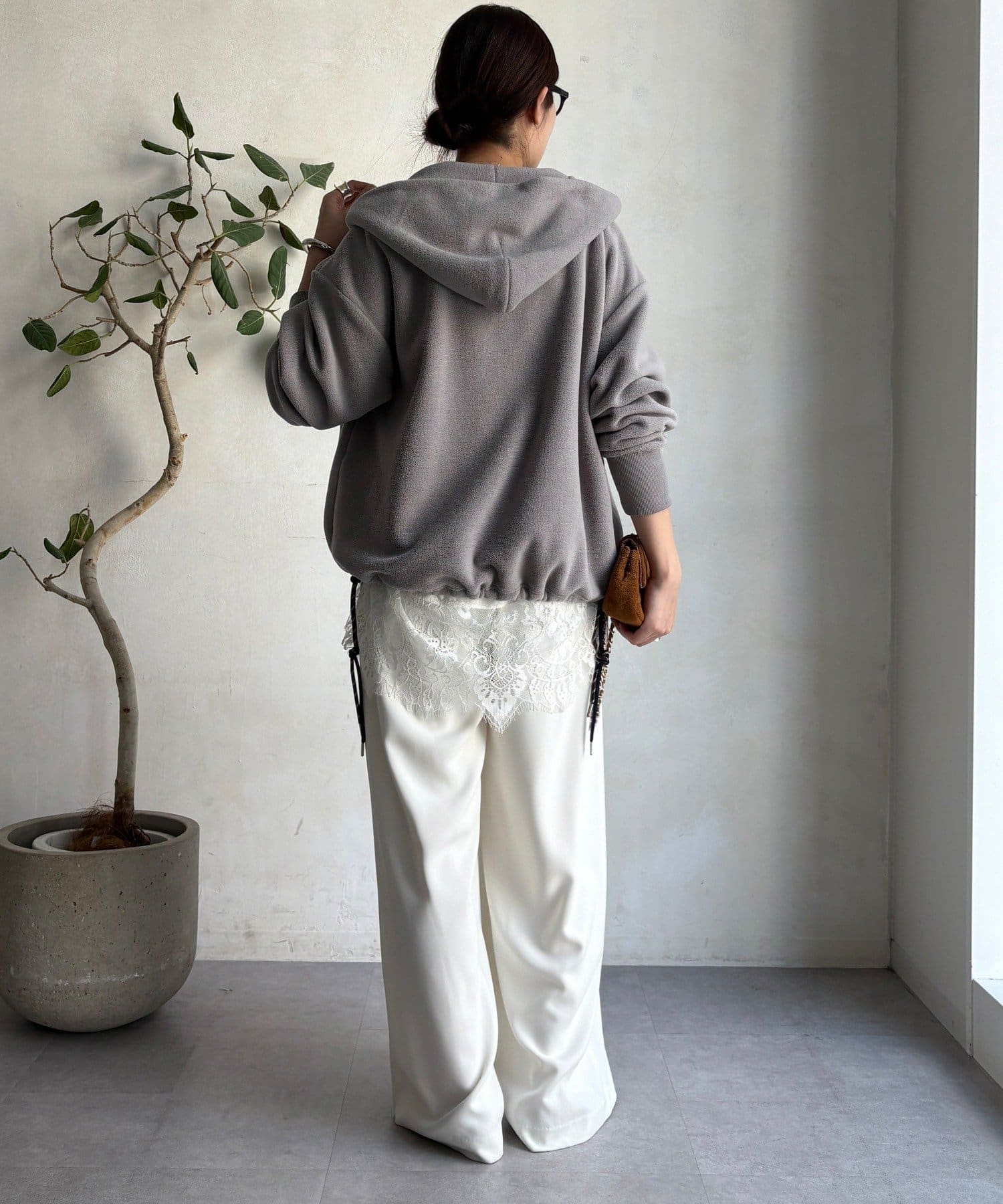 裾にはドロストコードを施し、シルエットを自由に調整可能です。