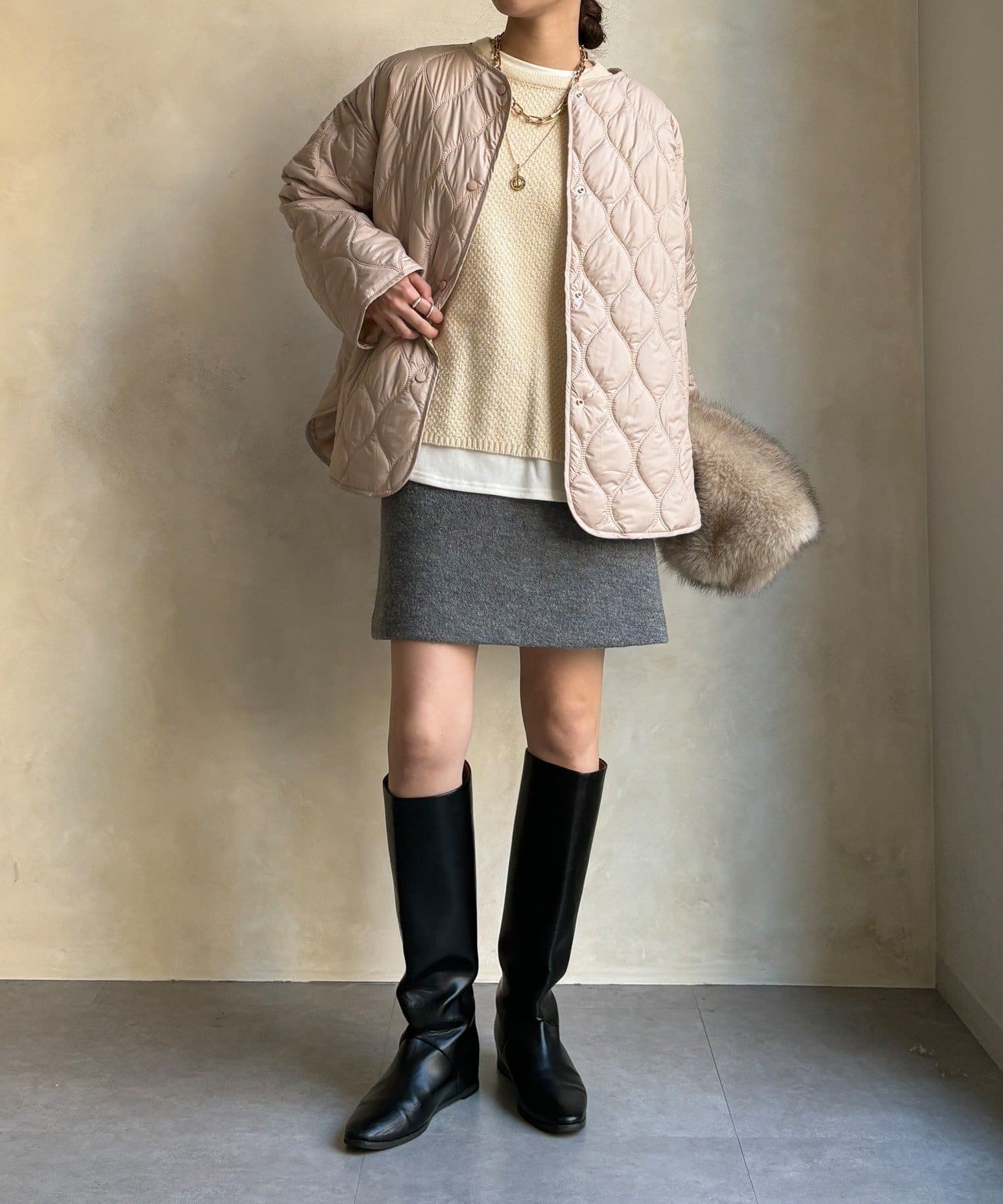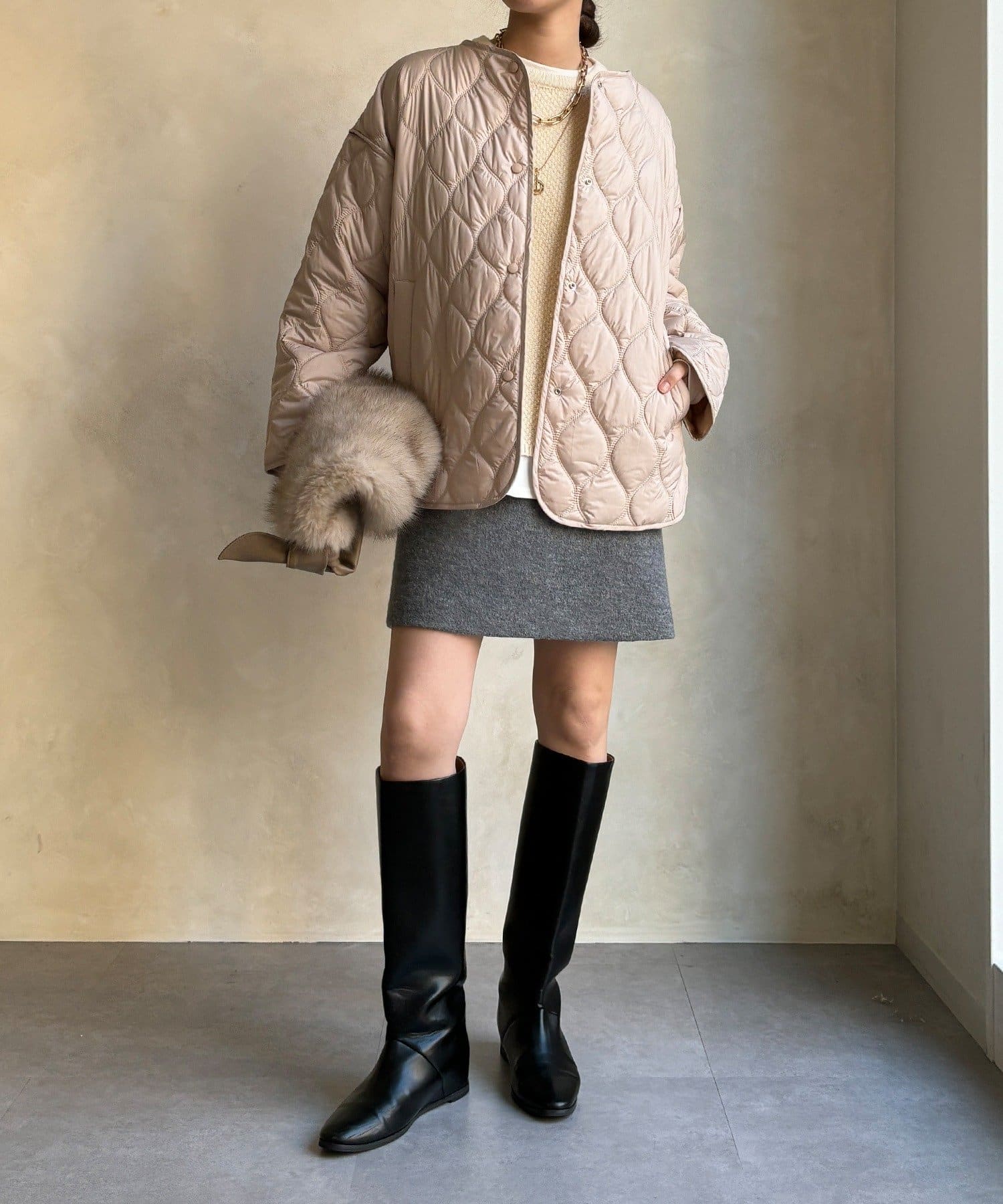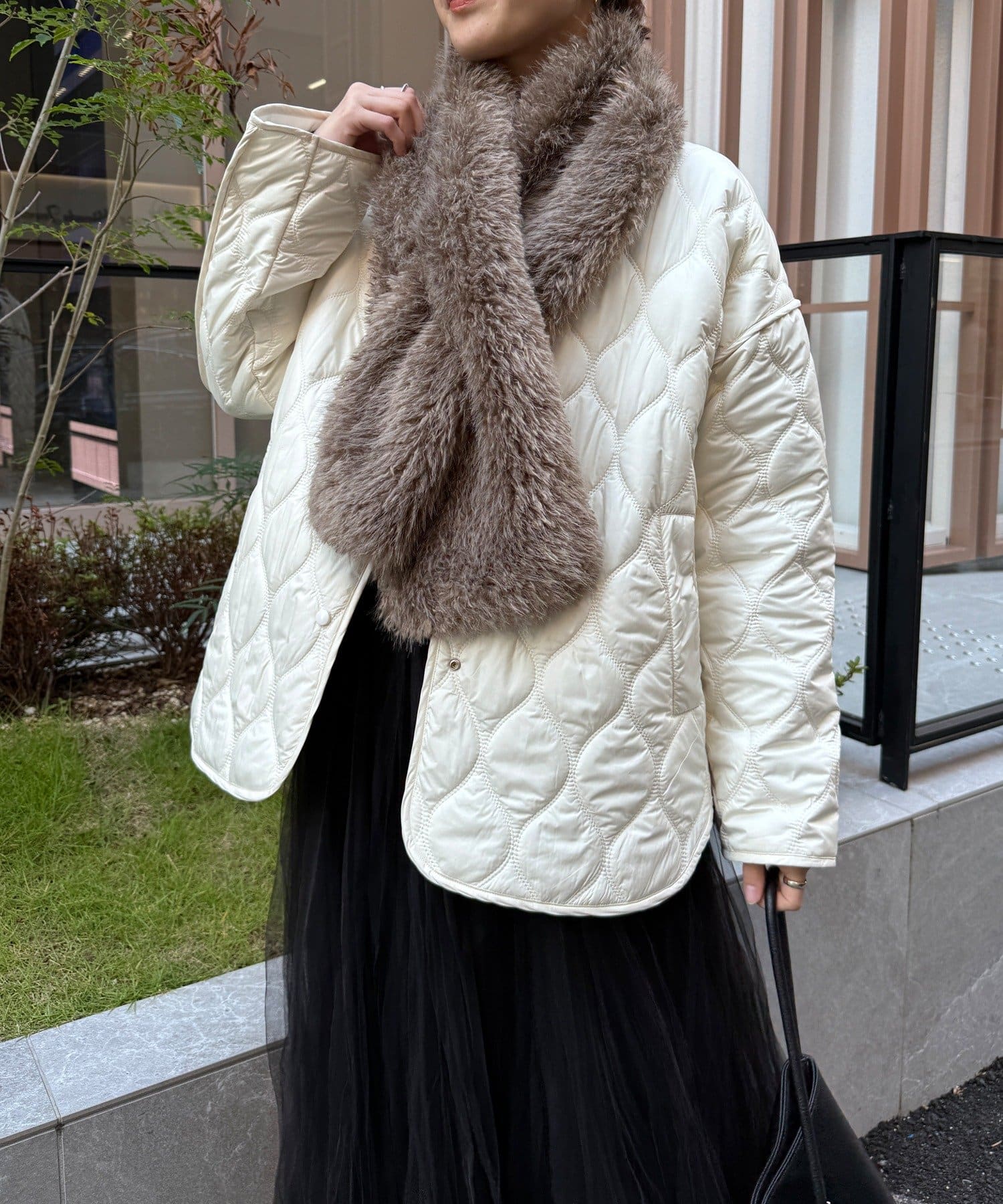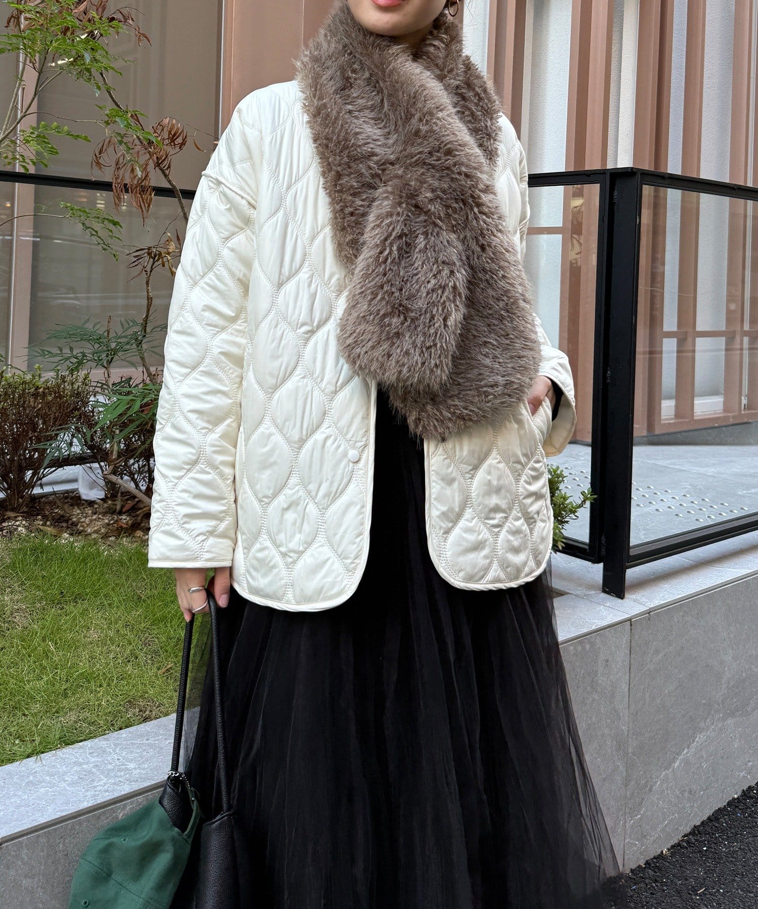 ふわふわな手触りで愛らしい印象。ノーカラーのコートとの相性抜群!