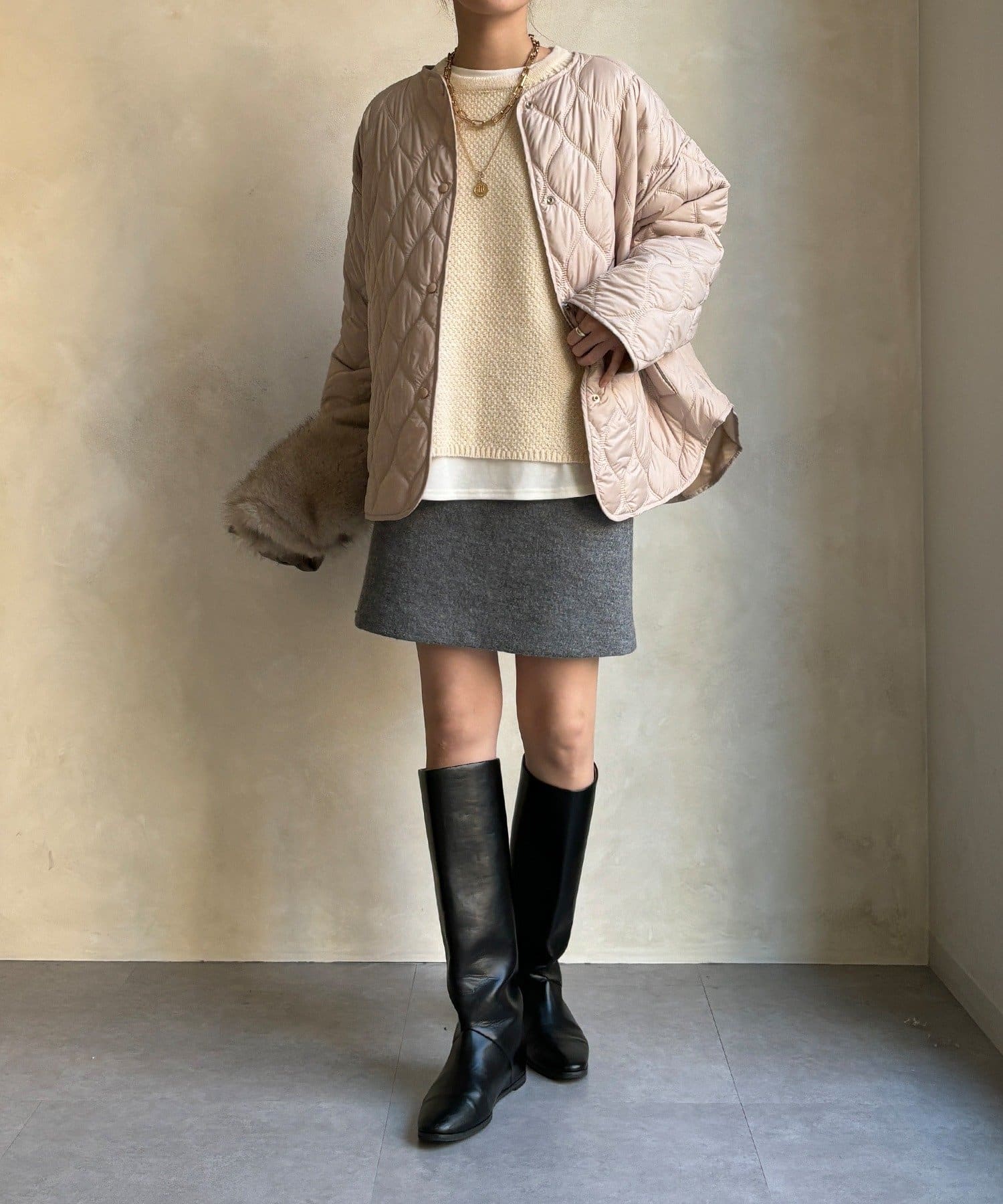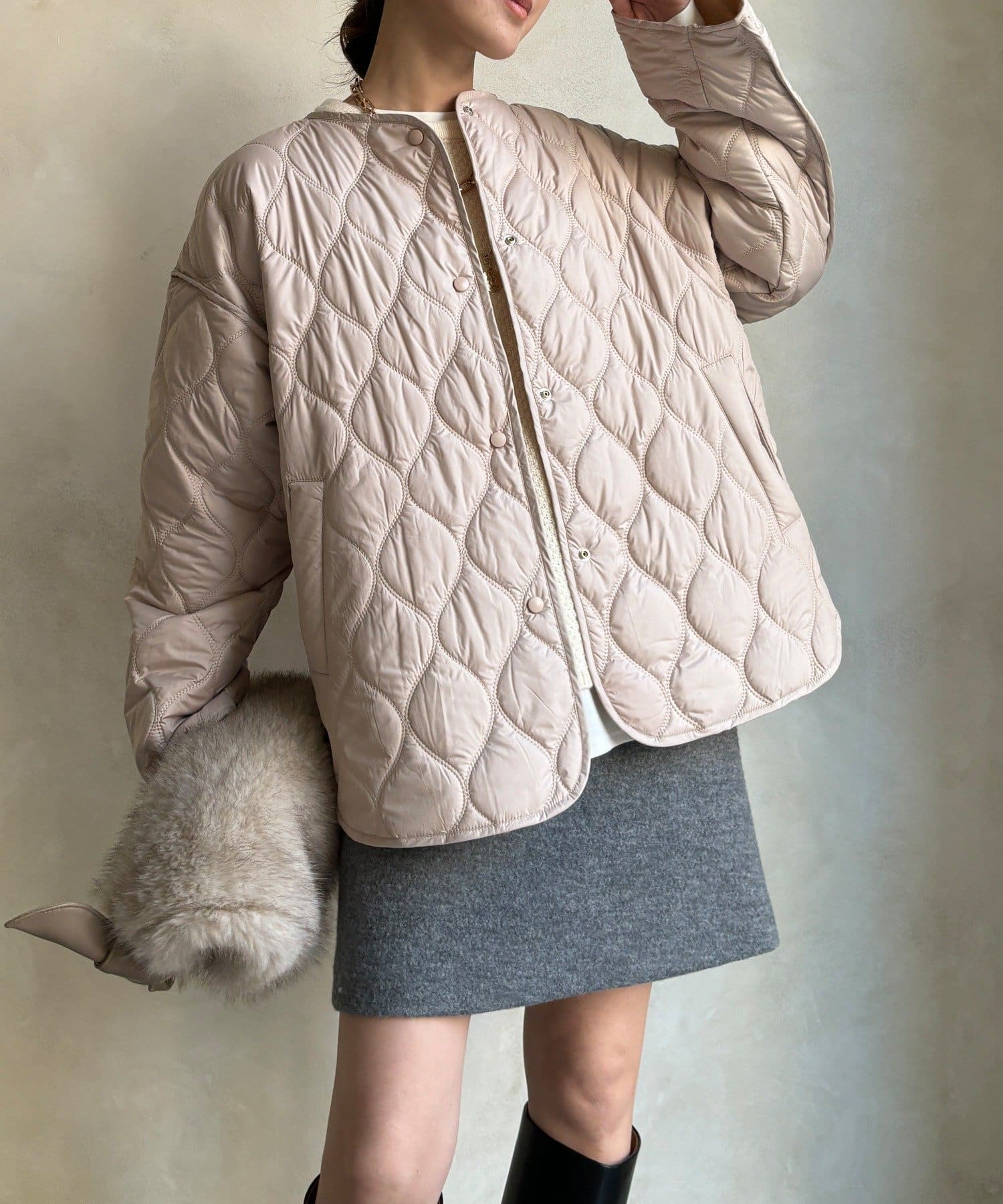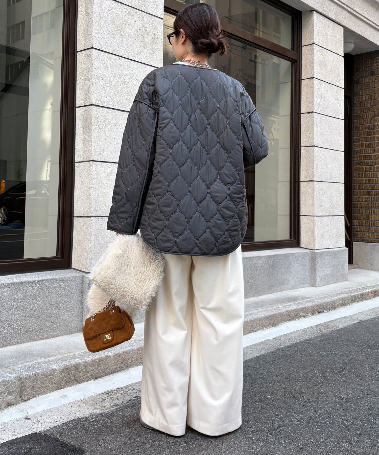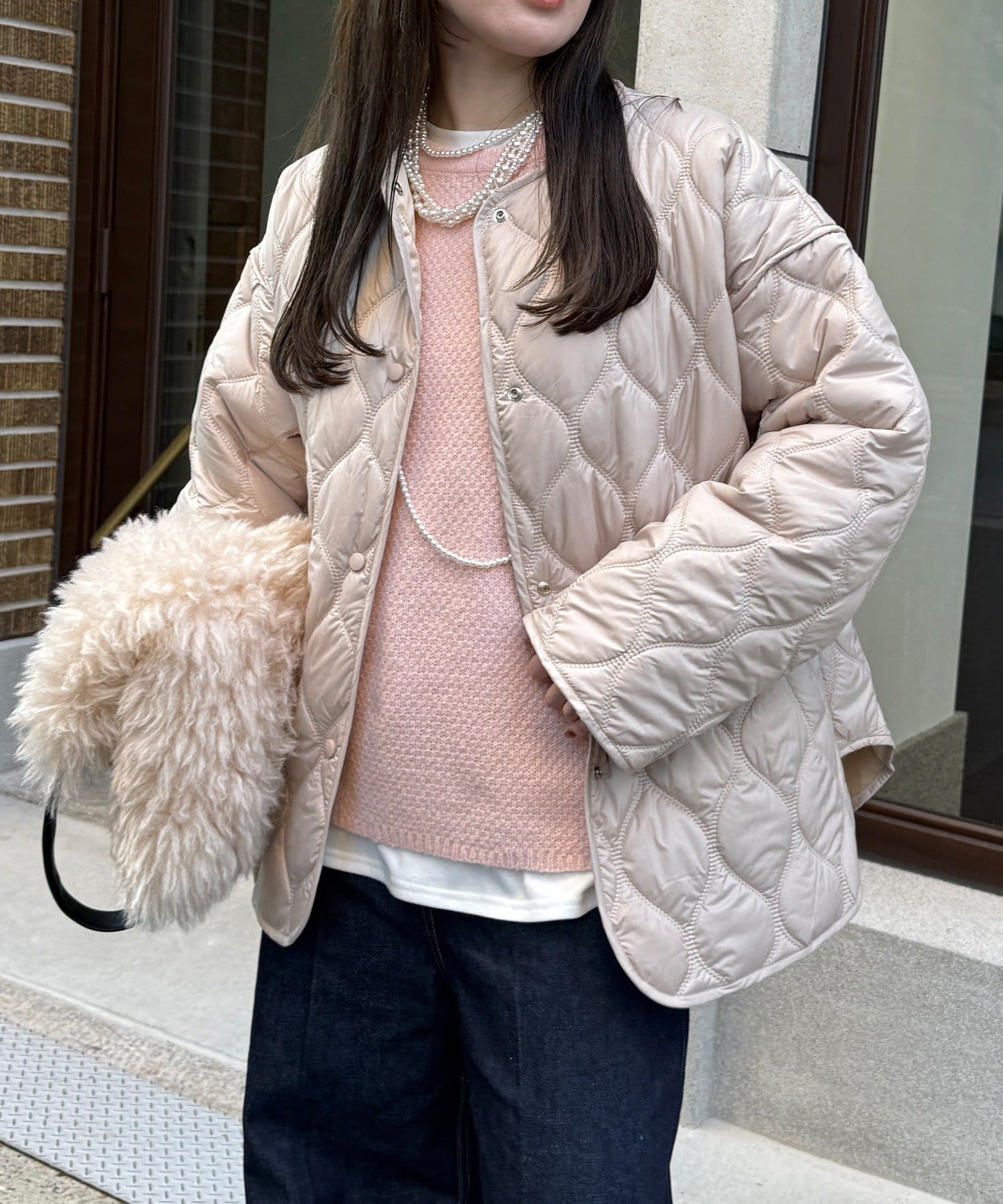 ふわふわな手触りで愛らしい印象。ノーカラーのコートとの相性抜群!