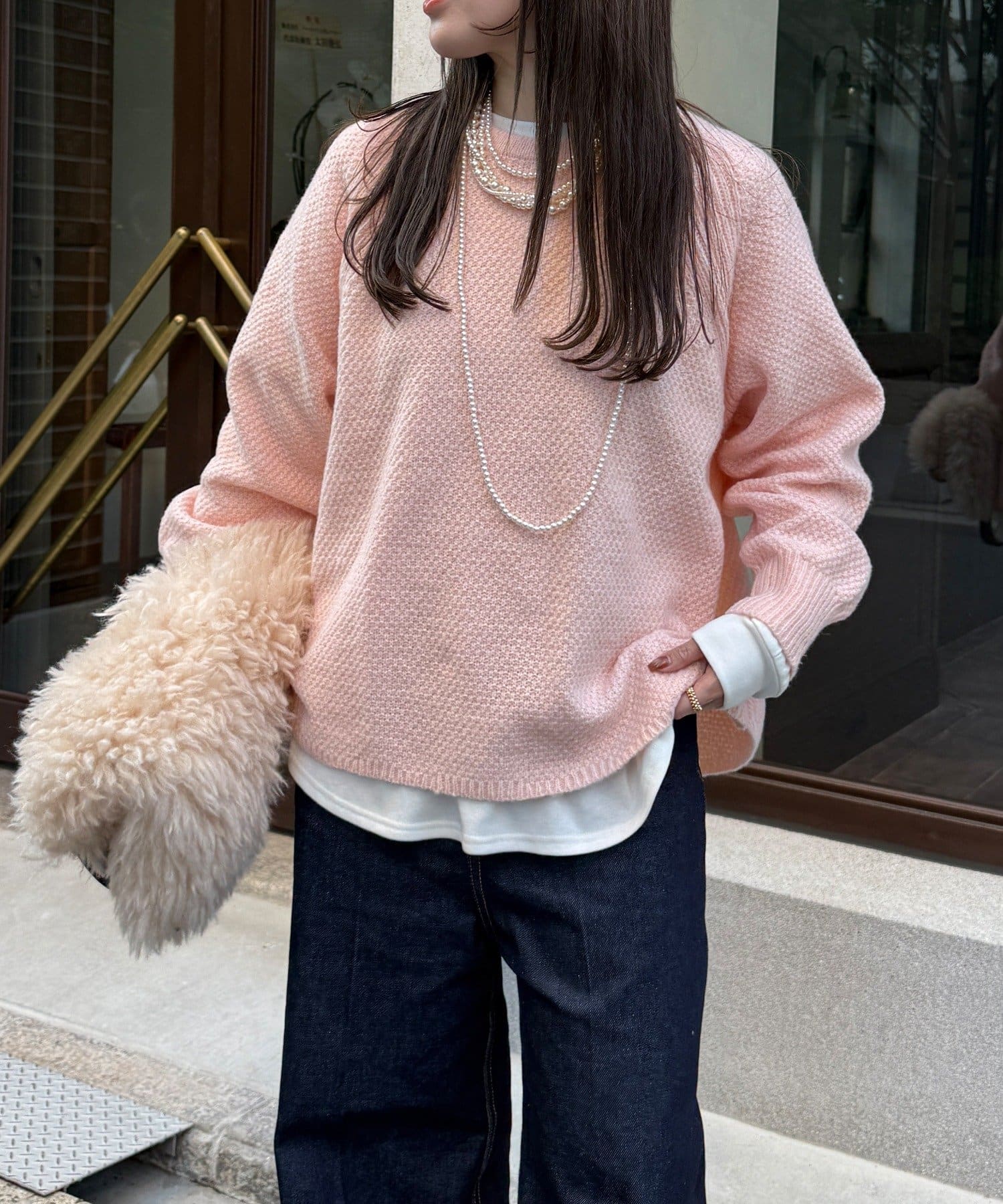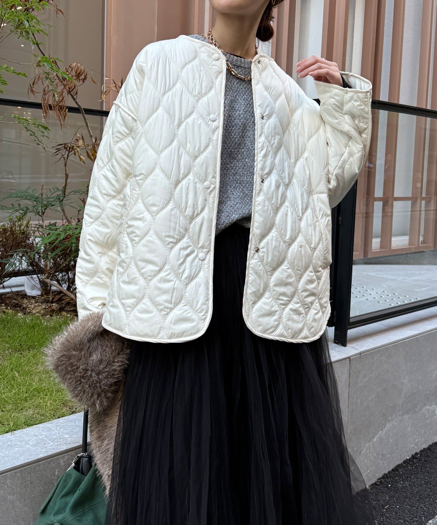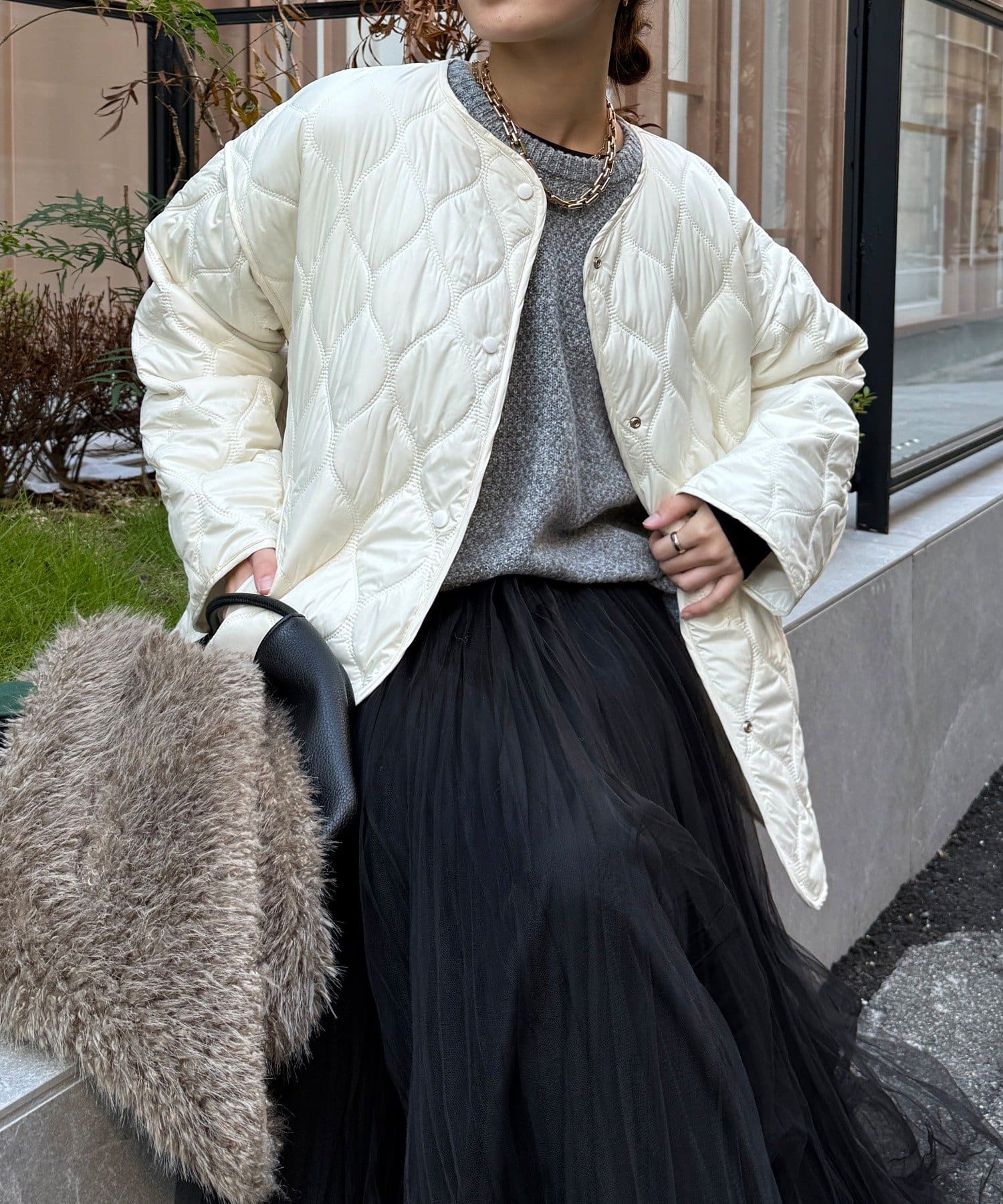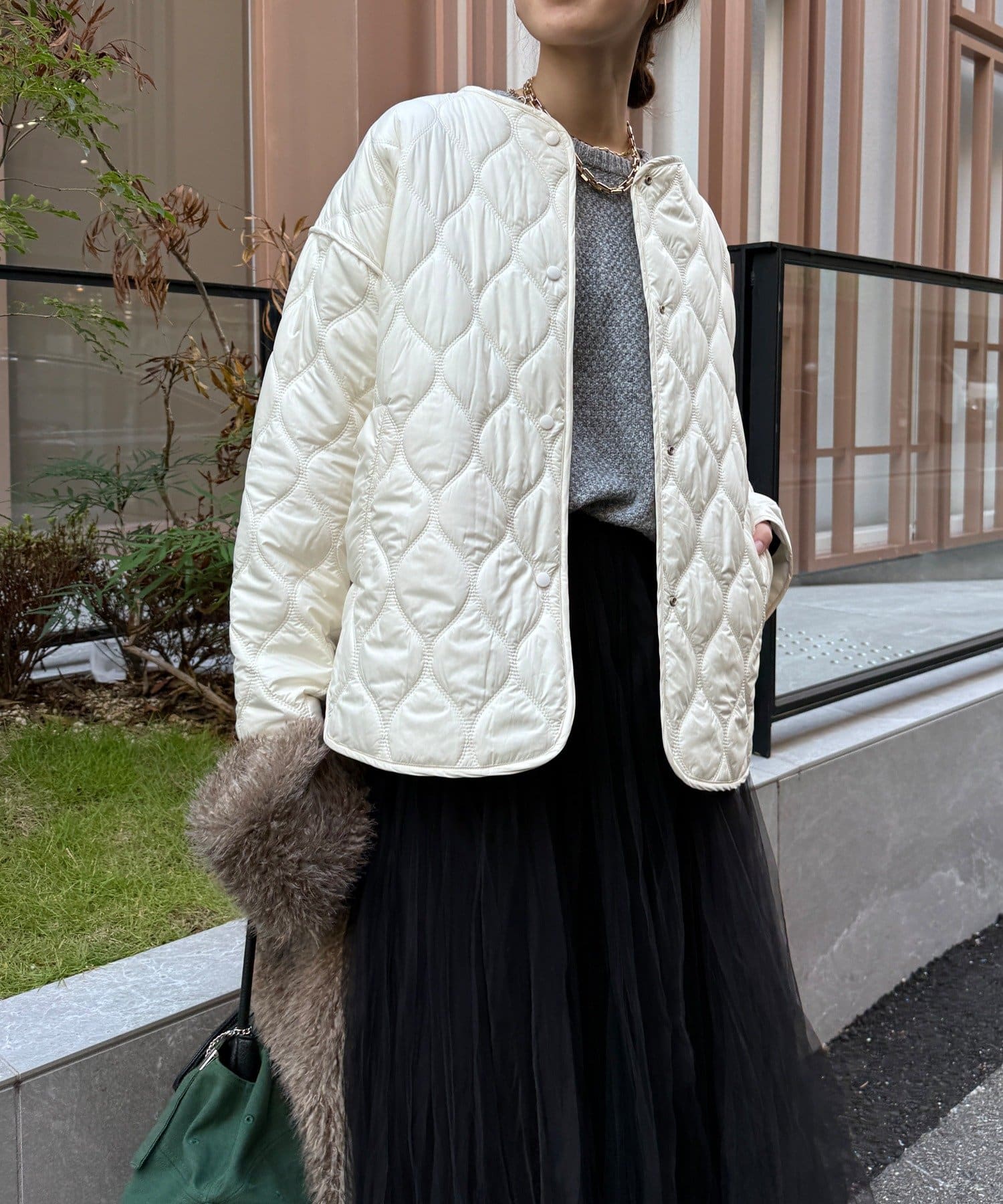 ふわふわな手触りで愛らしい印象。ノーカラーのコートとの相性抜群!