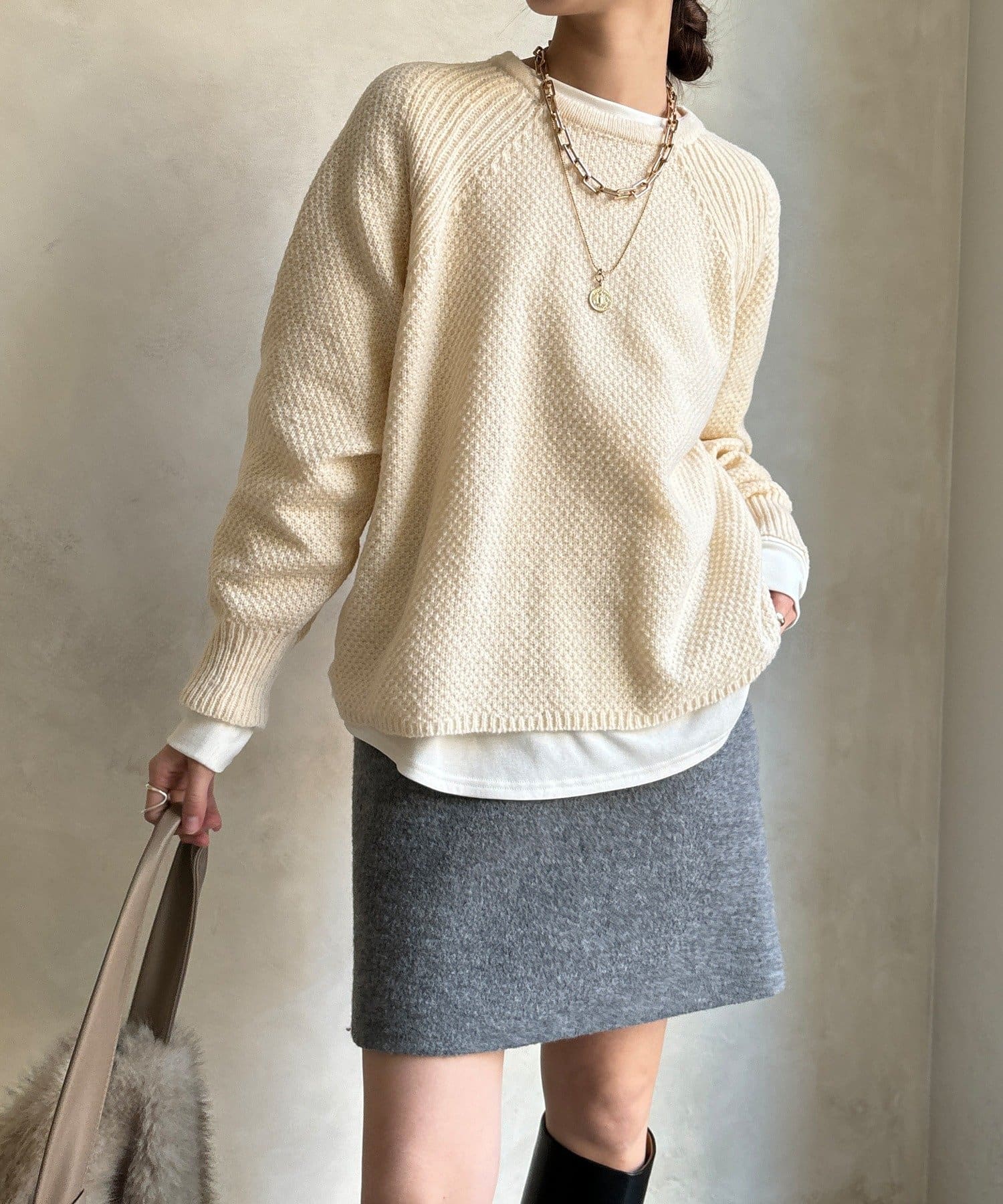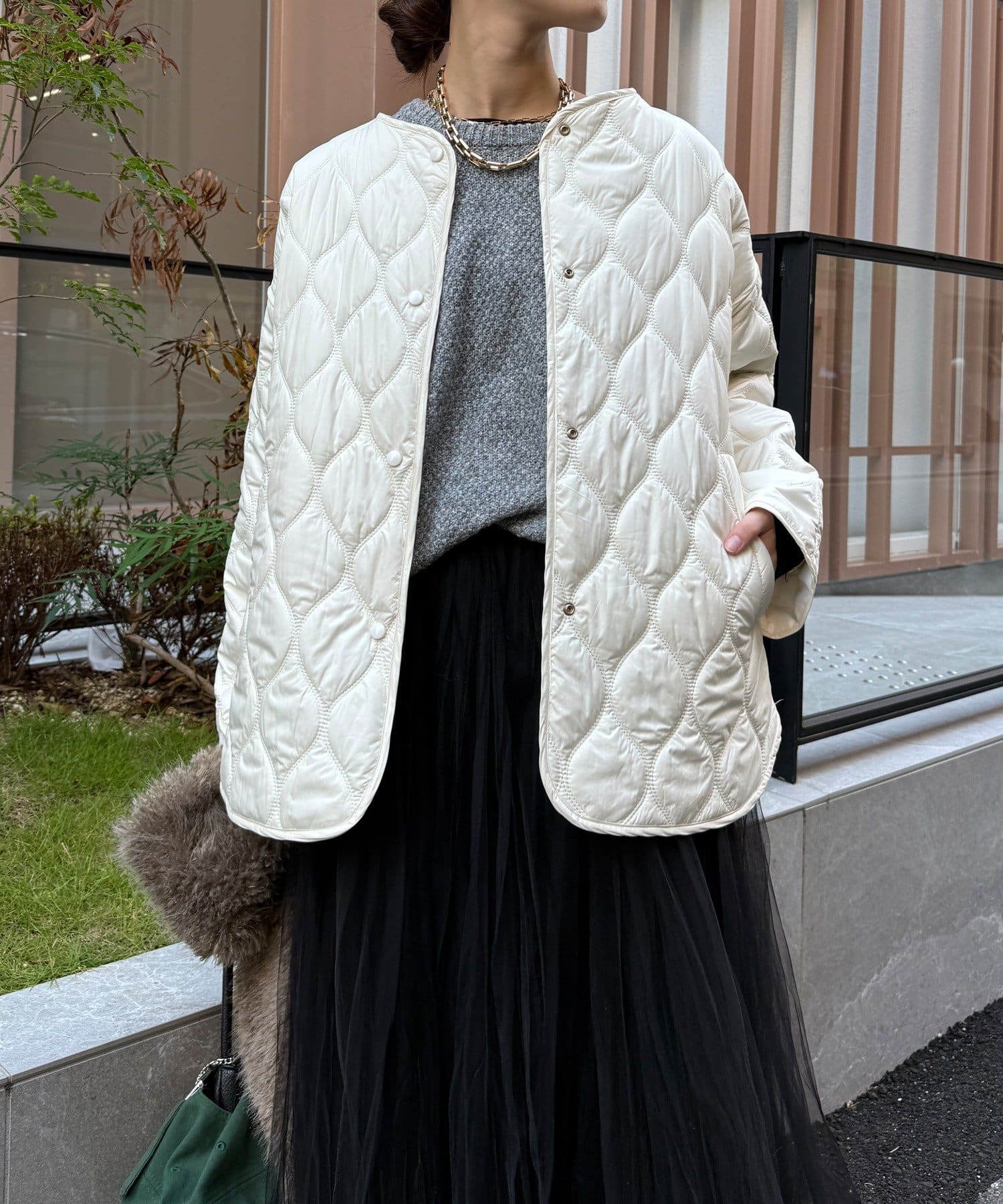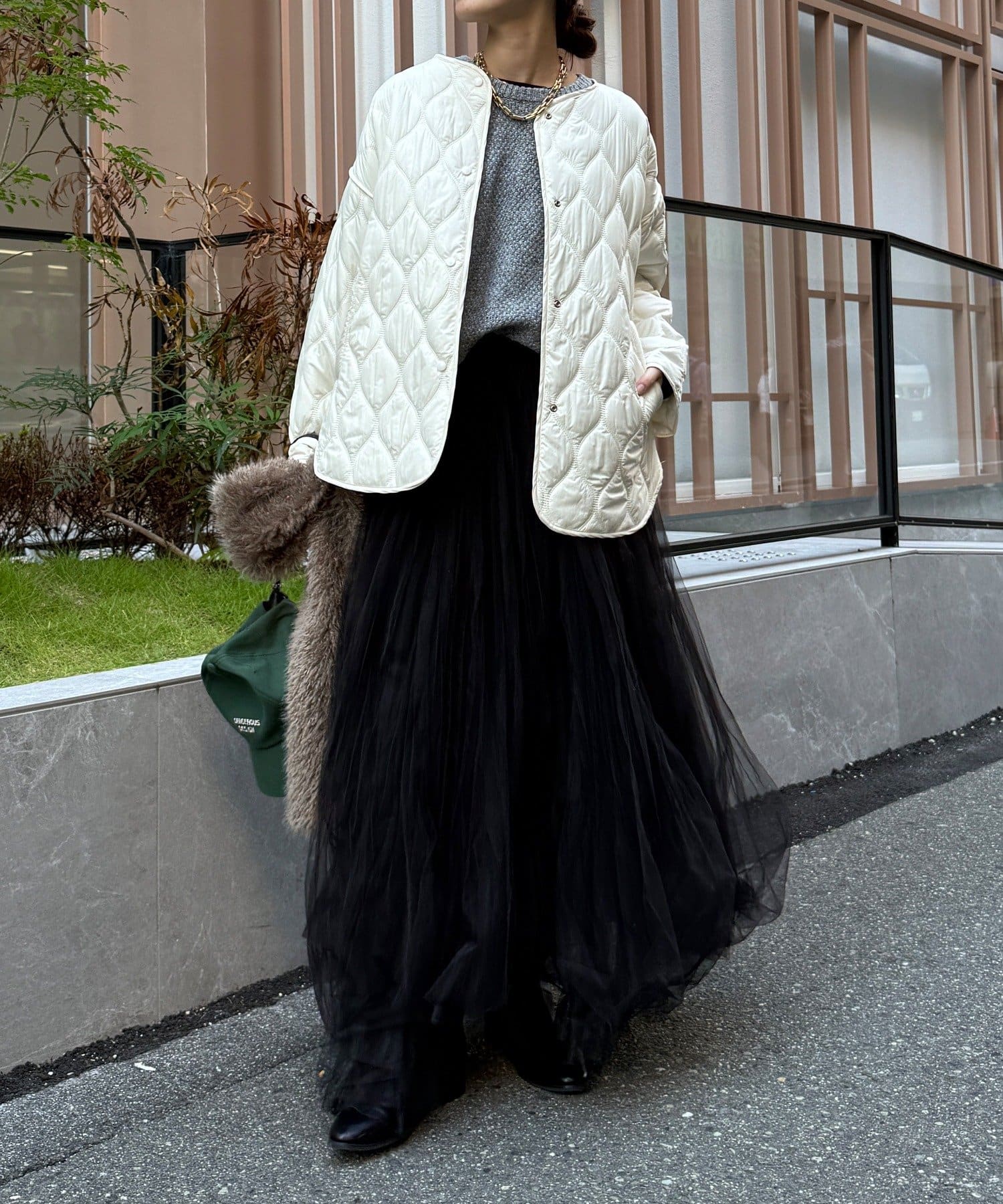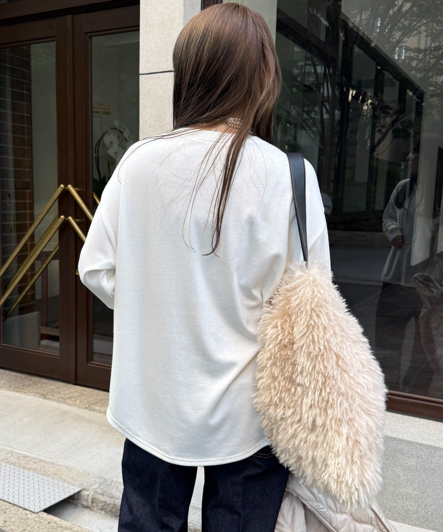ふわふわな手触りで愛らしい印象。ノーカラーのコートとの相性抜群!
