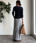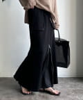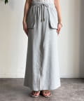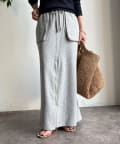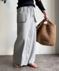 大きめのフラップポケットはデザインのアクセントになるだけでなく、腰位置を高く見せてスタイルアップ効果も抜群です。ロング丈ながら裾に程よい広がりがあり、歩くたびに女性らしいシルエットを描きますよ。