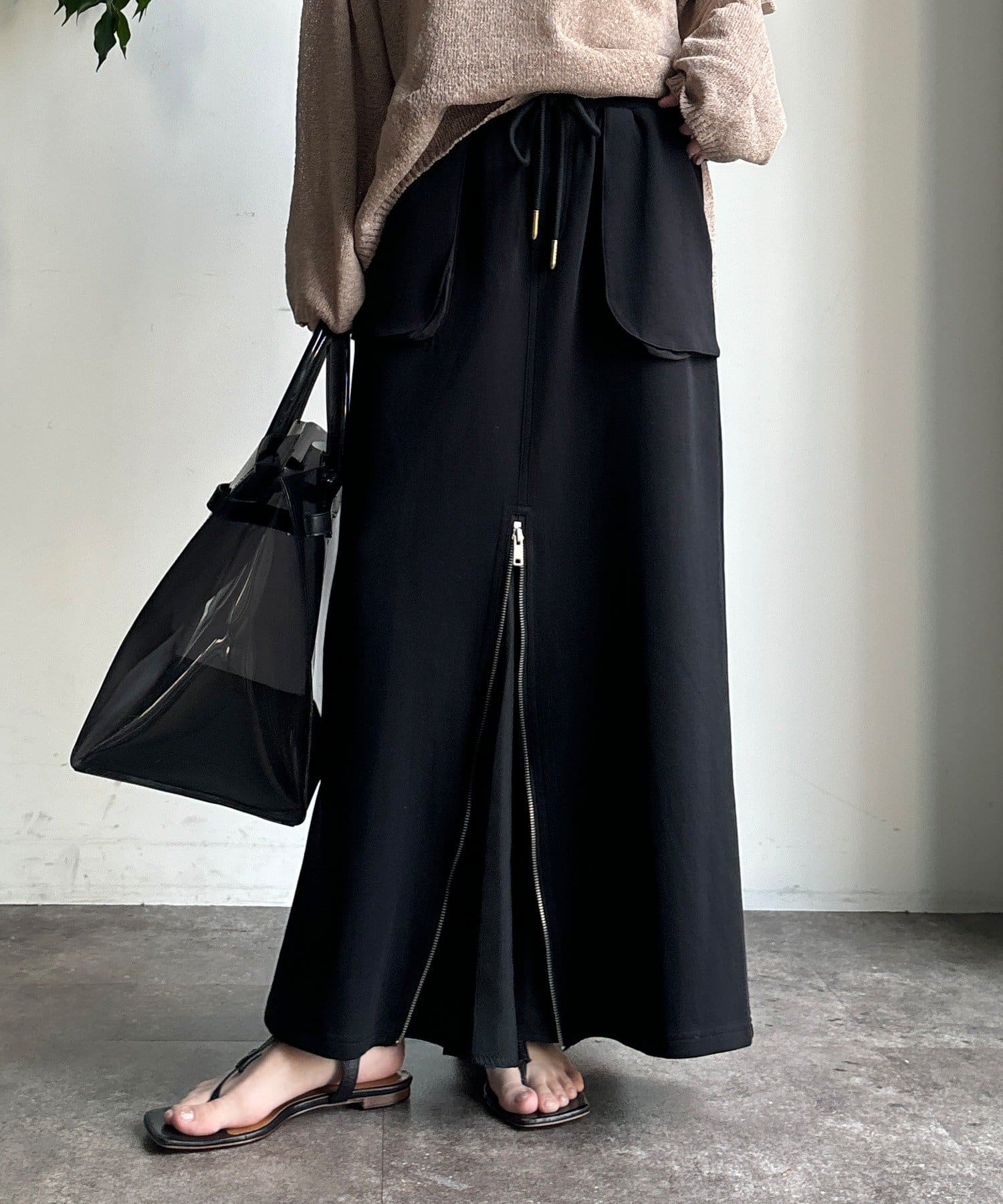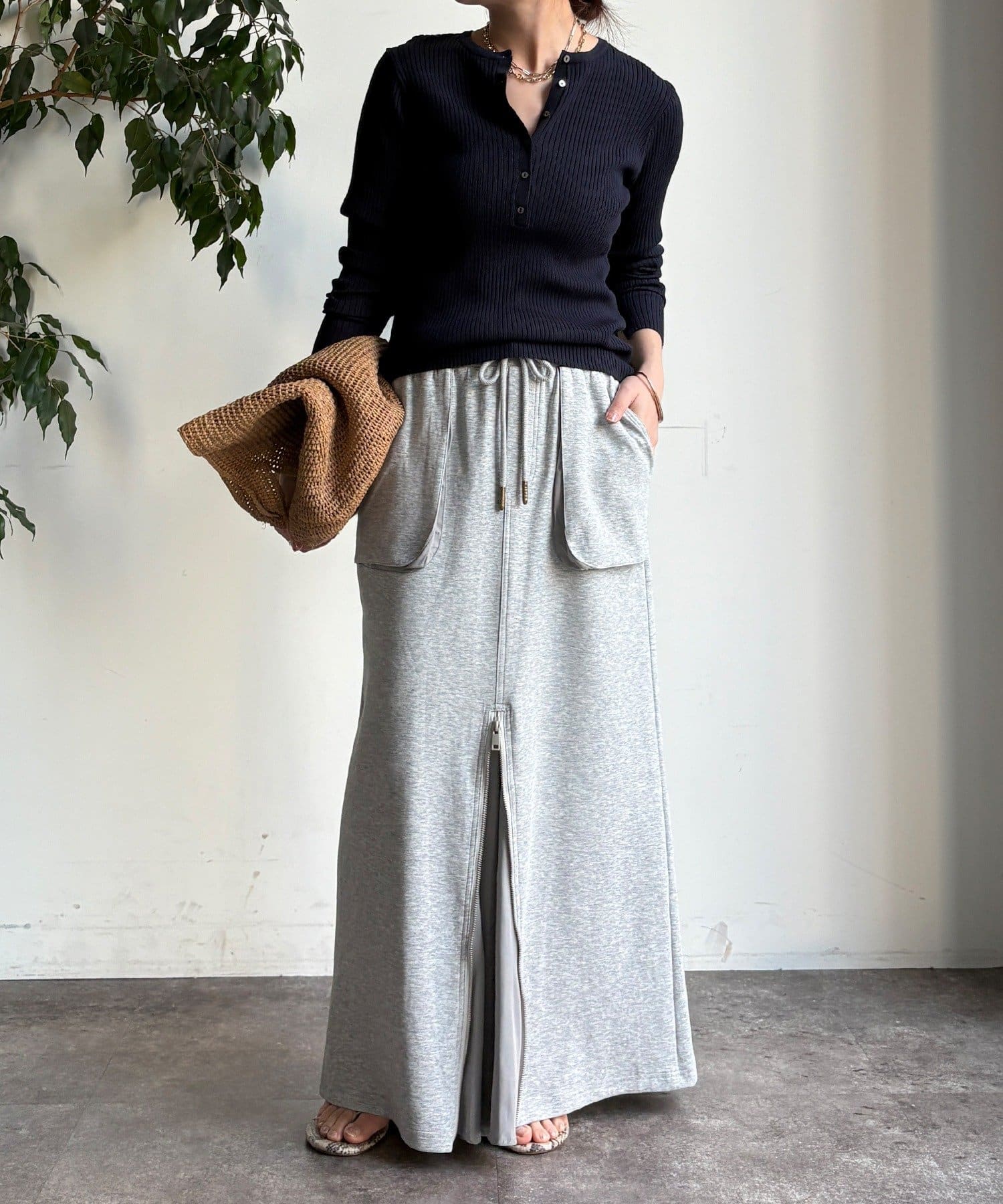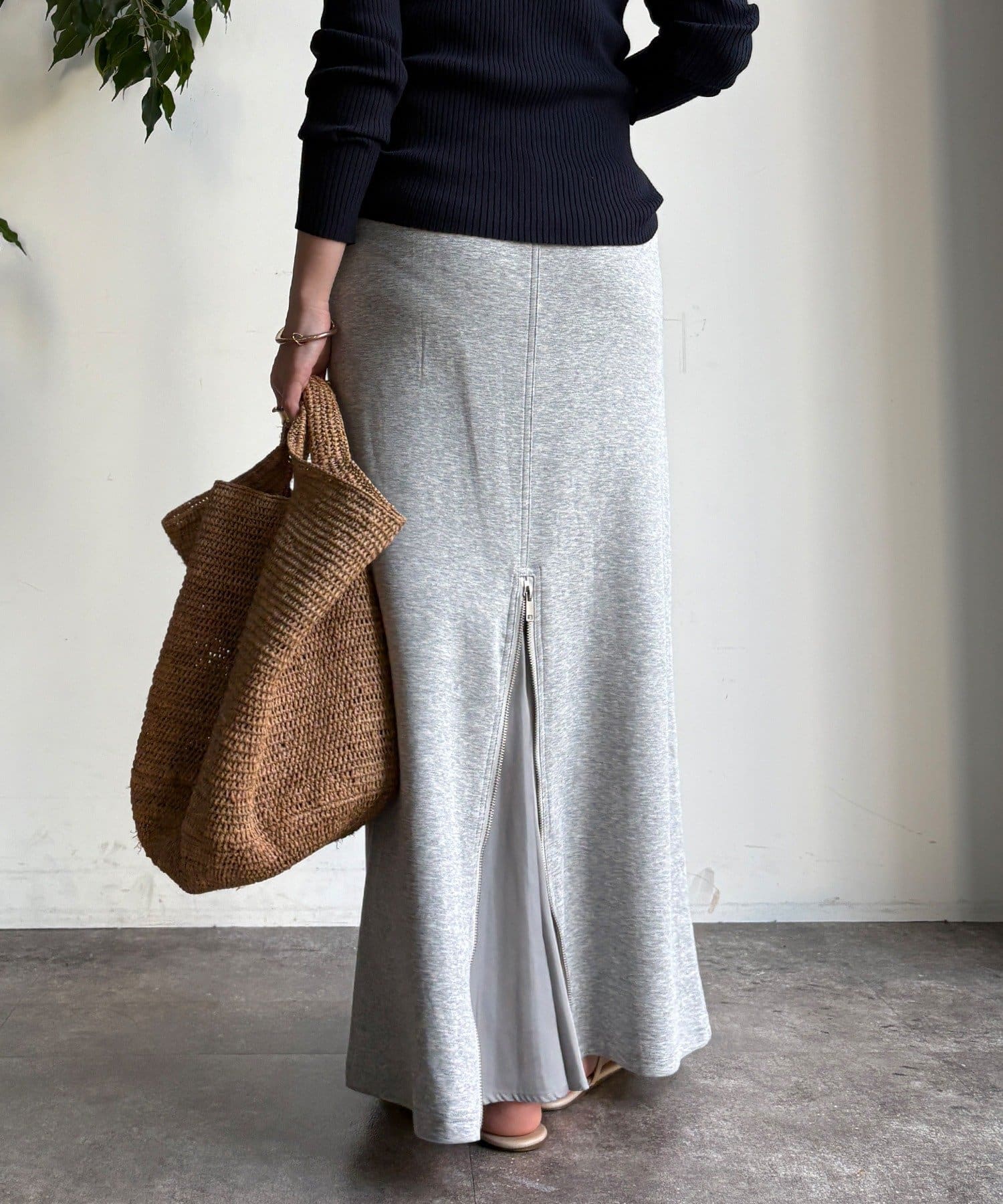 センタージップ裏毛ロングスカート|リラックス×大人シルエット