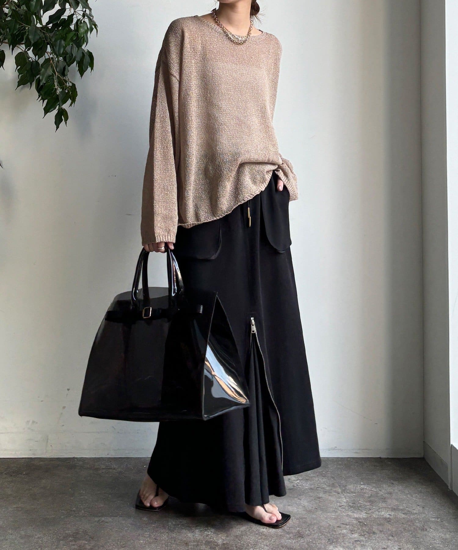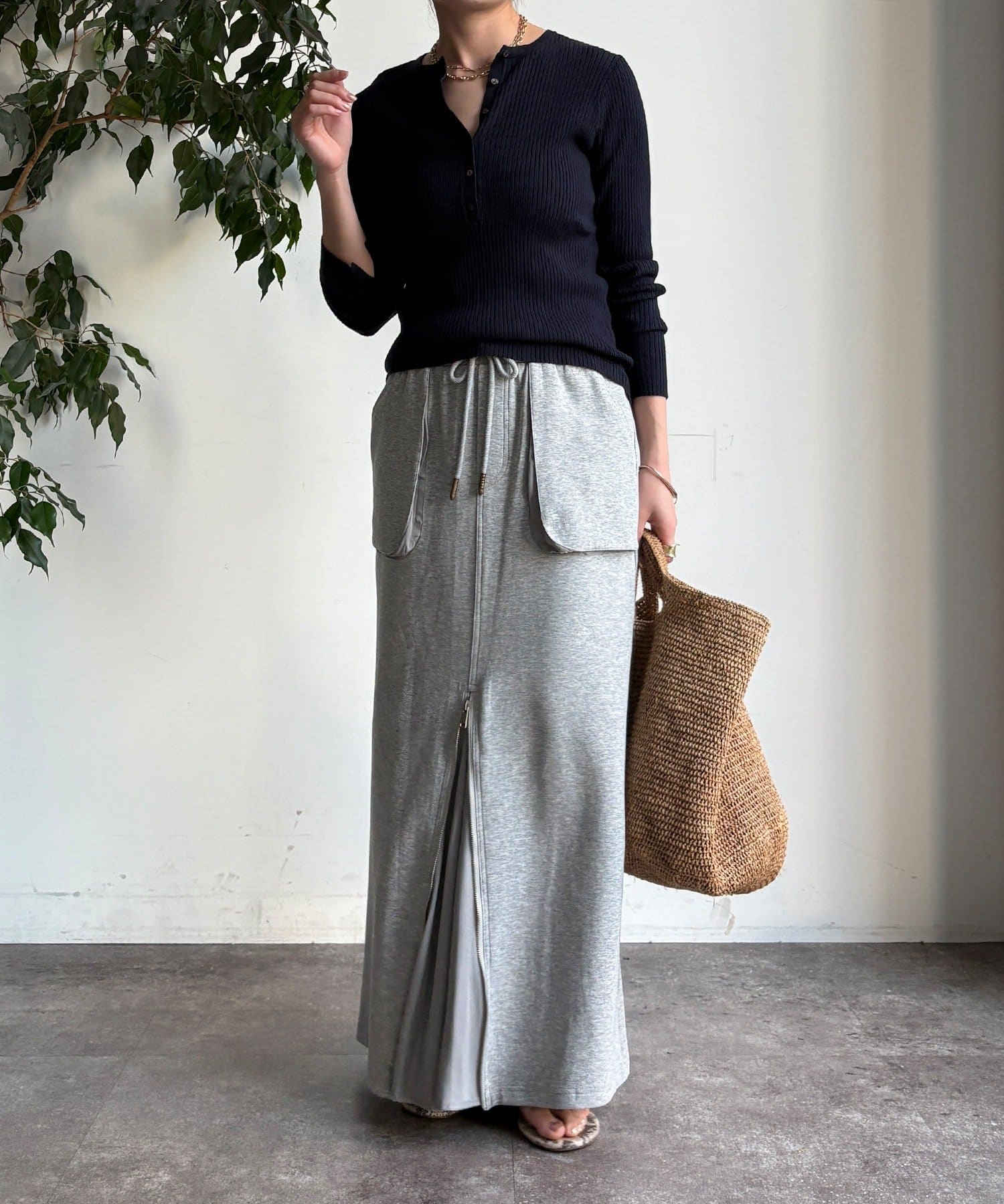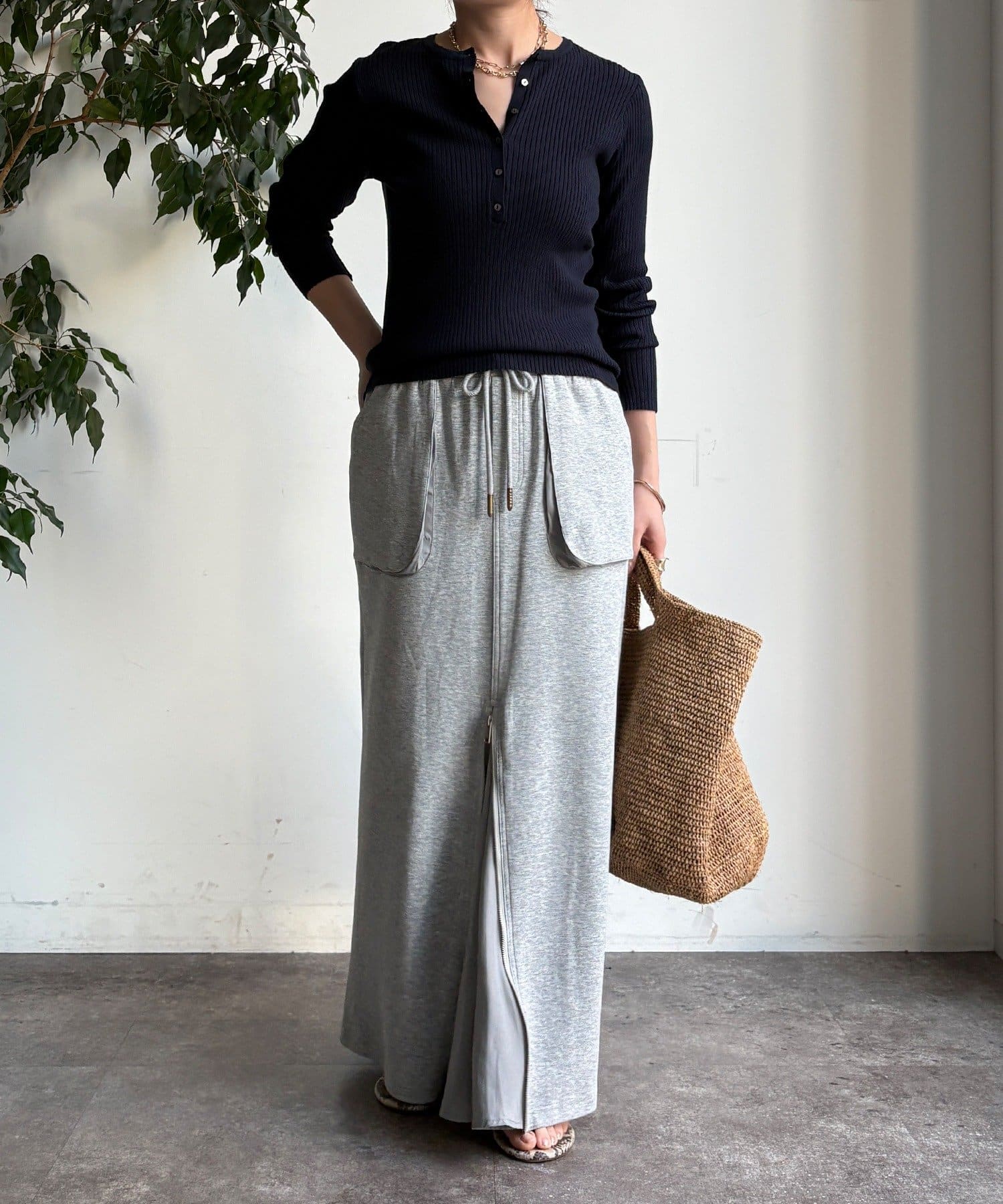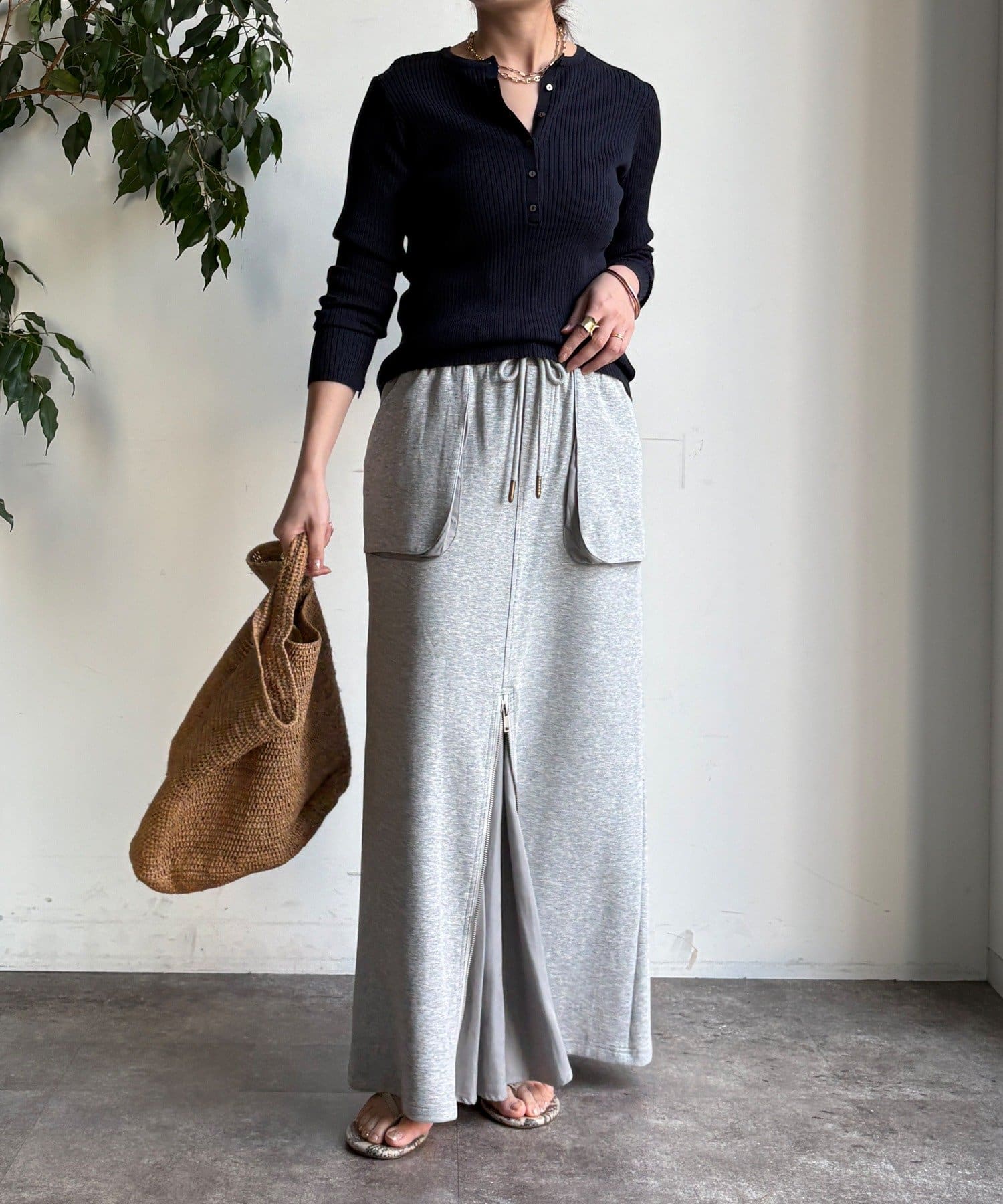 センタージップ裏毛ロングスカート|リラックス×大人シルエット