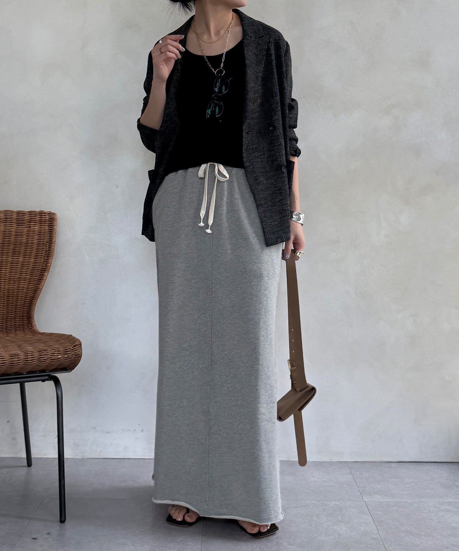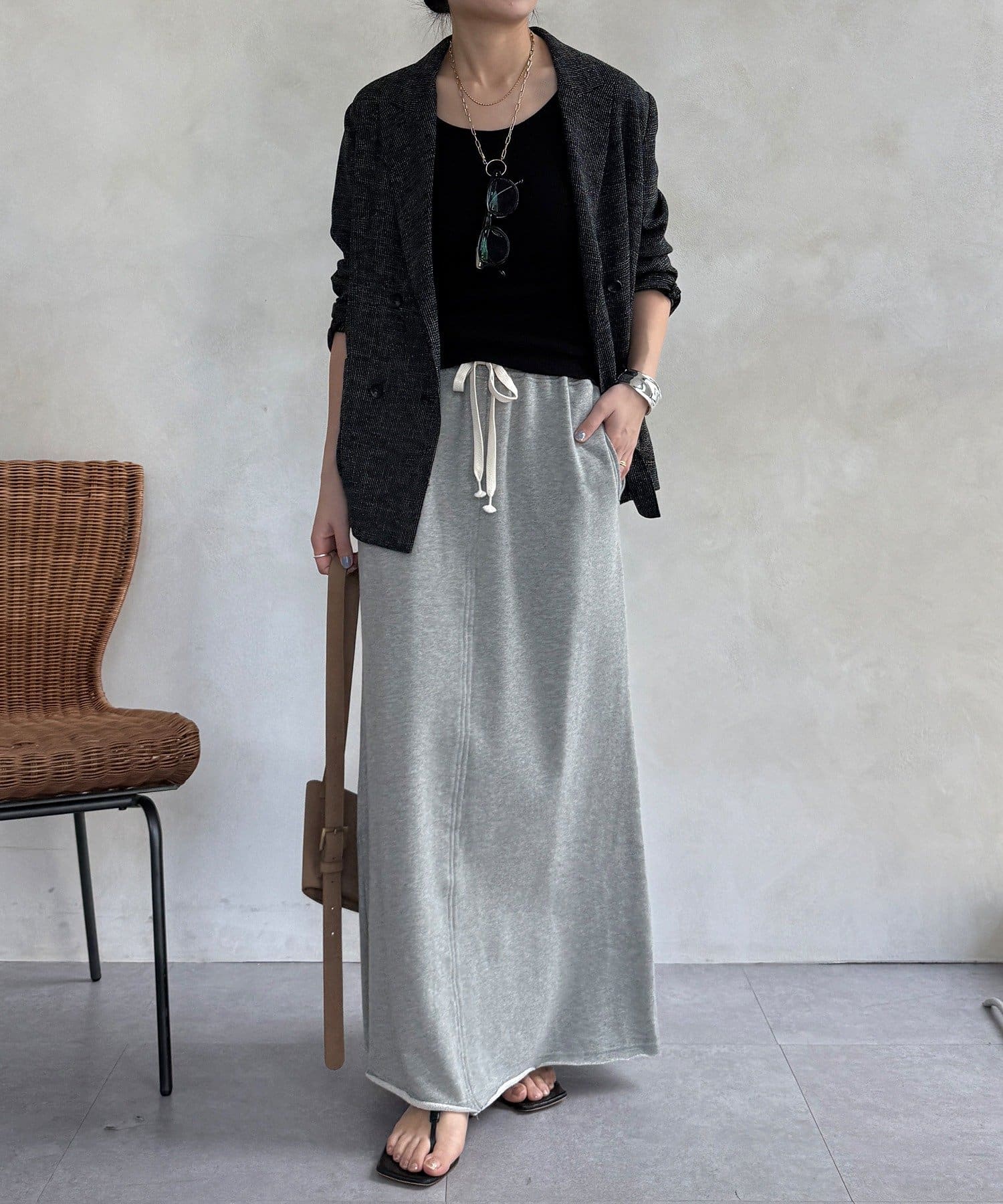 裾の切りっぱなし風がオシャレで、スウェット素材特有の重さを軽減し