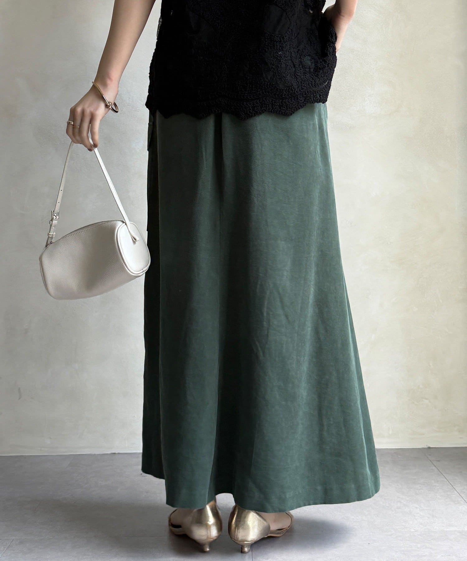 腰回りはスッキリとしており、裾に向かって広がるAラインは