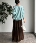 ざっくりとしたニットやカジュアル見えするスウェットなどを合わせて、素材のコントラストを楽しむ着こなしがおすすめです。