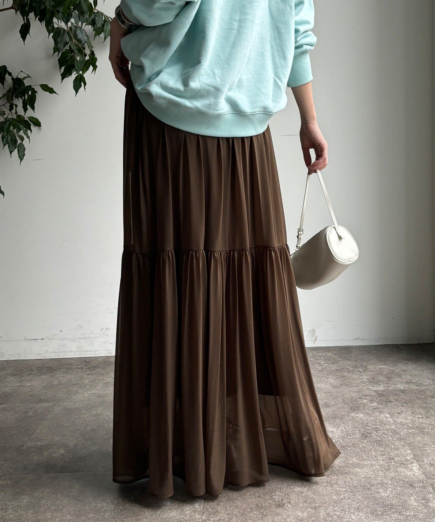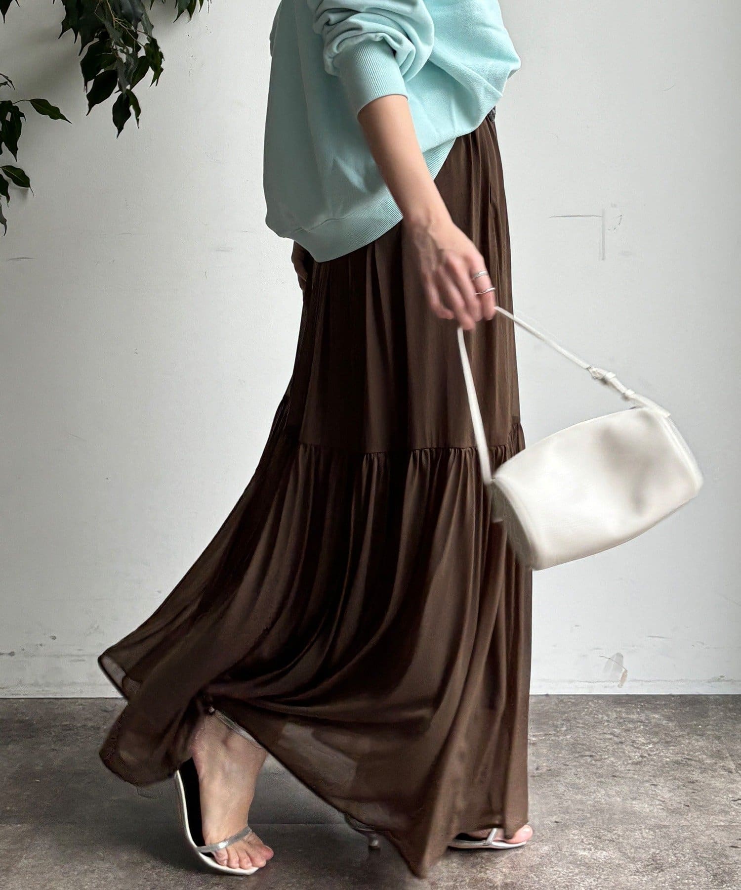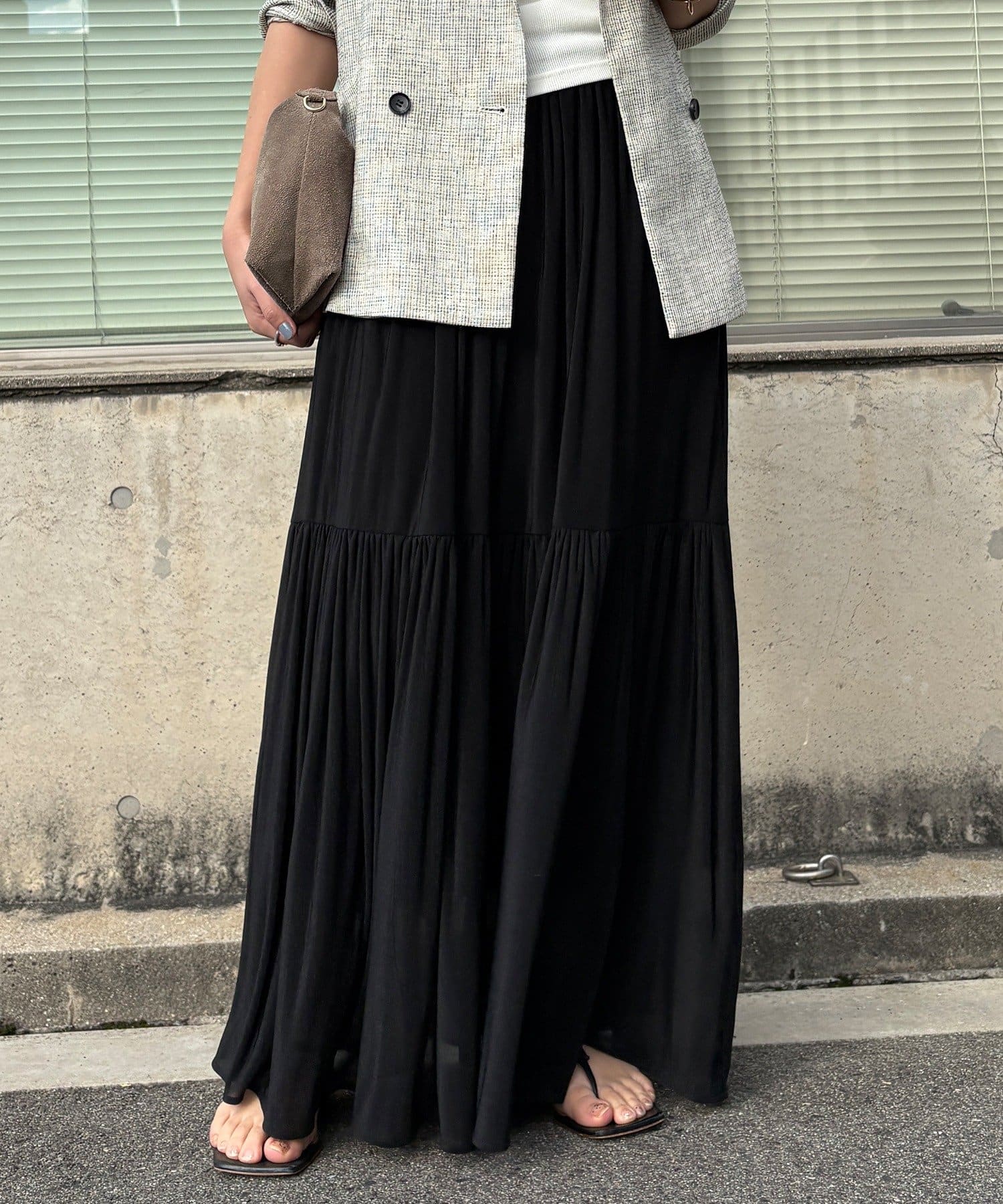 さらりとした落ち感のある素材感のため、甘く見えがちなティアードデザインも大人に決まります。