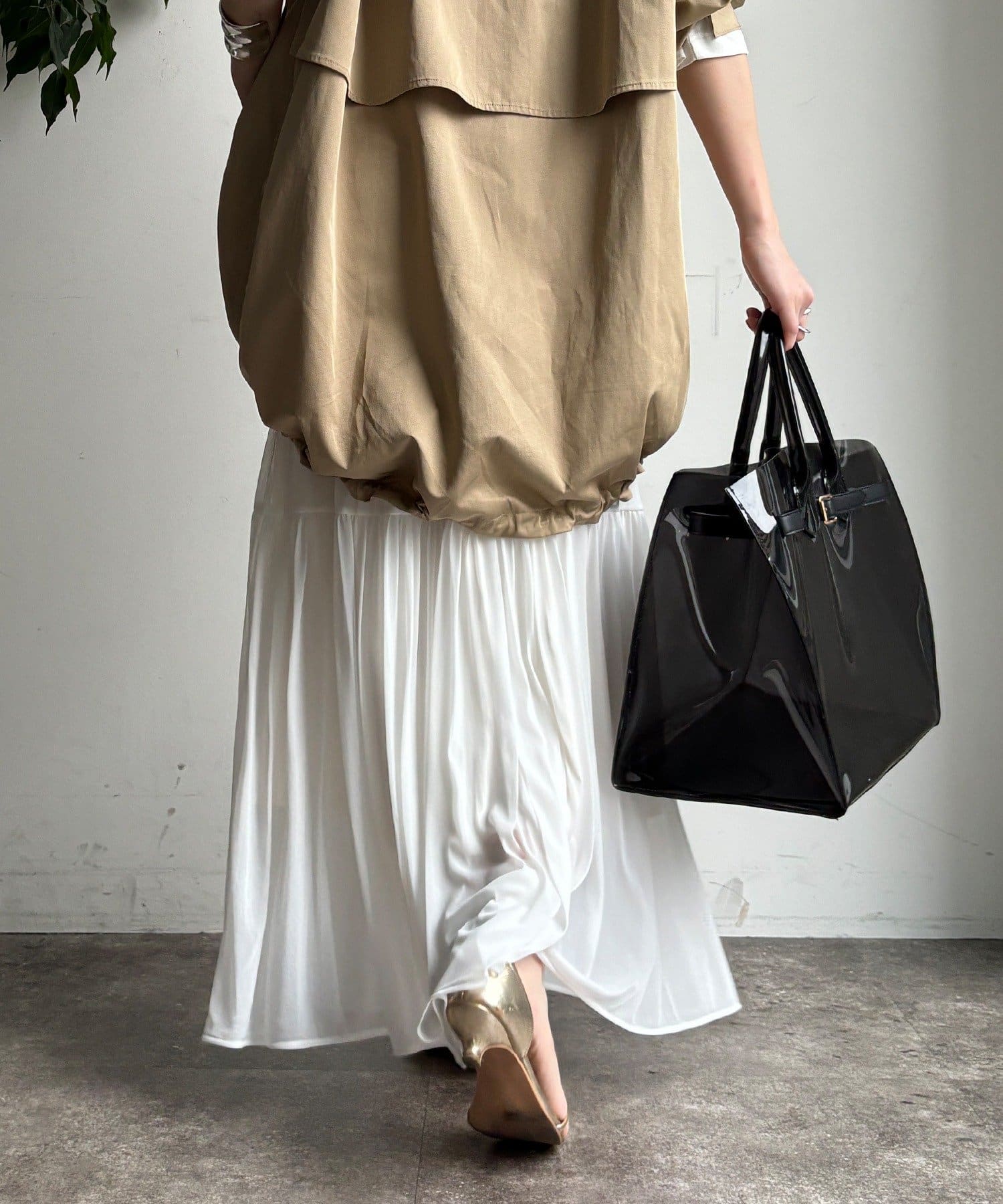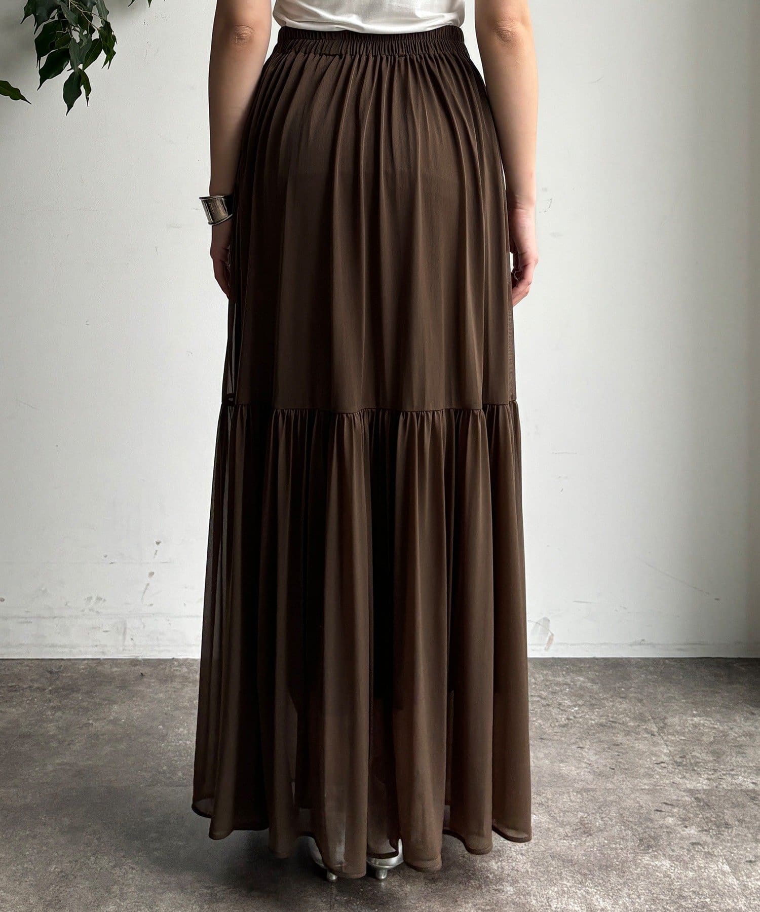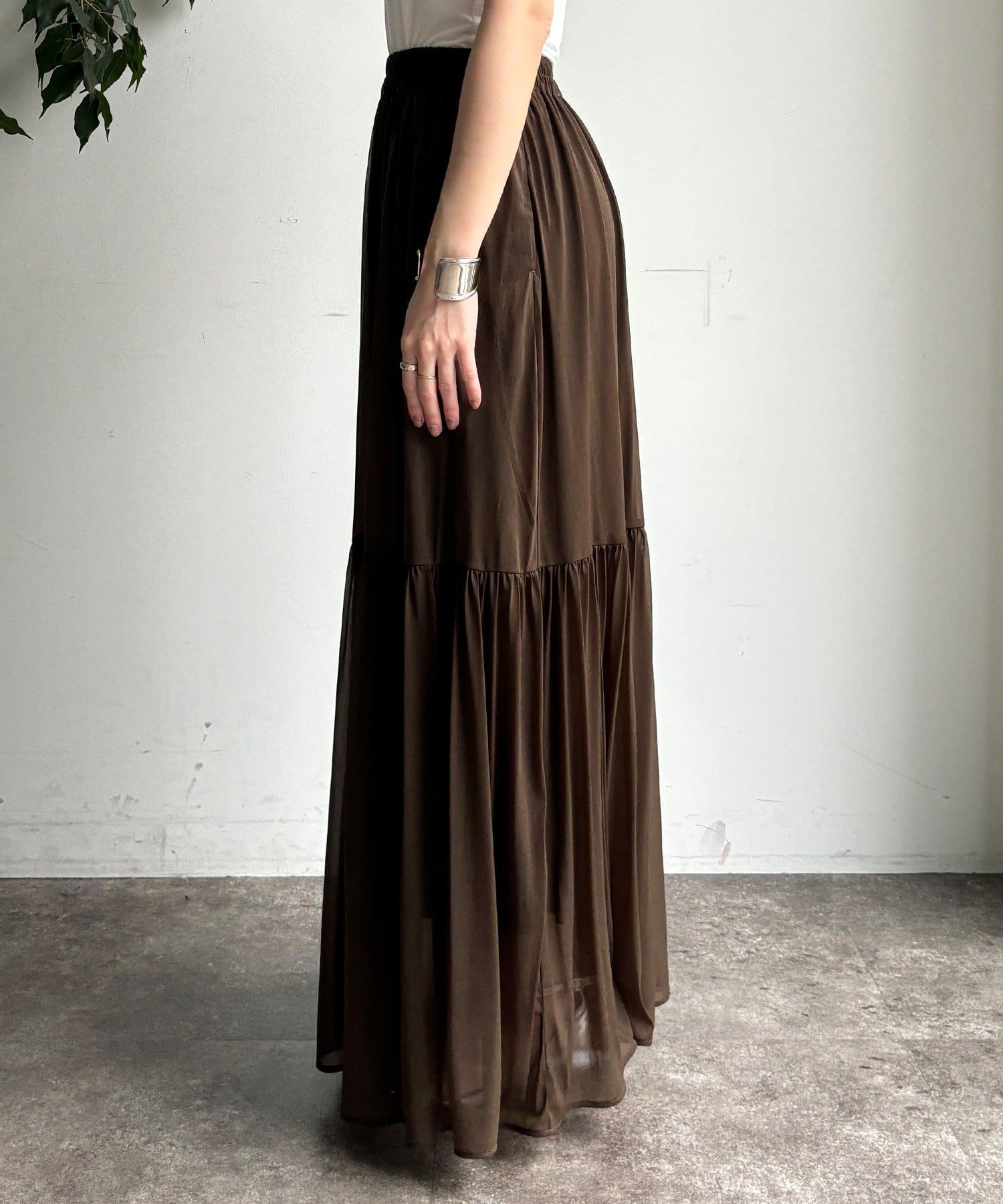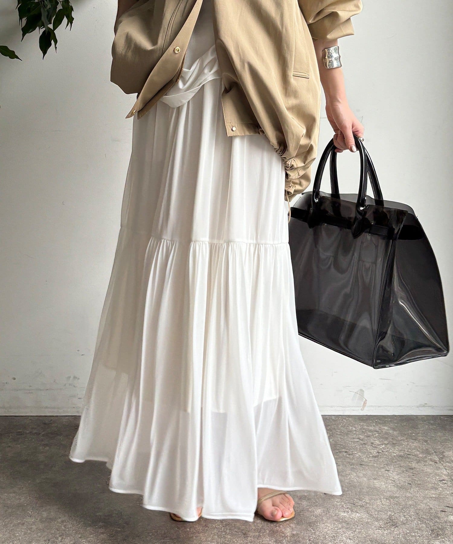 さらりとした落ち感のある素材感のため、甘く見えがちなティアードデザインも大人に決まります。