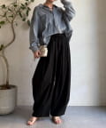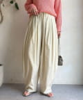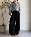 フロントのタックとウェストのギャザーがスタイルを良く見せてくれます。