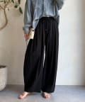 軽いナイロン素材でとても履き心地の良いタックギャザーパンツ。