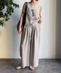 タックで腰まわりにゆとりを持たせつつ、落ち感のある生地が縦ラインを強調し、自然とスタイルアップが叶うデザインです。