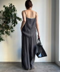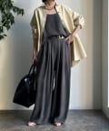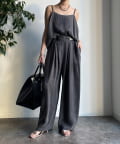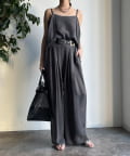 同素材のキャミトップと合わせれば旬なセットアップスタイルが完成します。