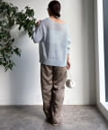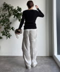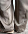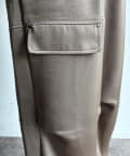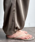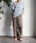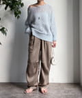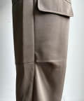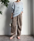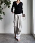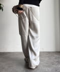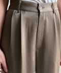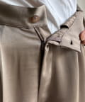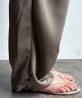 サテンならではの上品な光沢と、程よく力の抜けた落ち感が魅力のワイドパンツです。