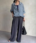 ワイドシルエット×フロントタックでお尻周りや太もものラインを