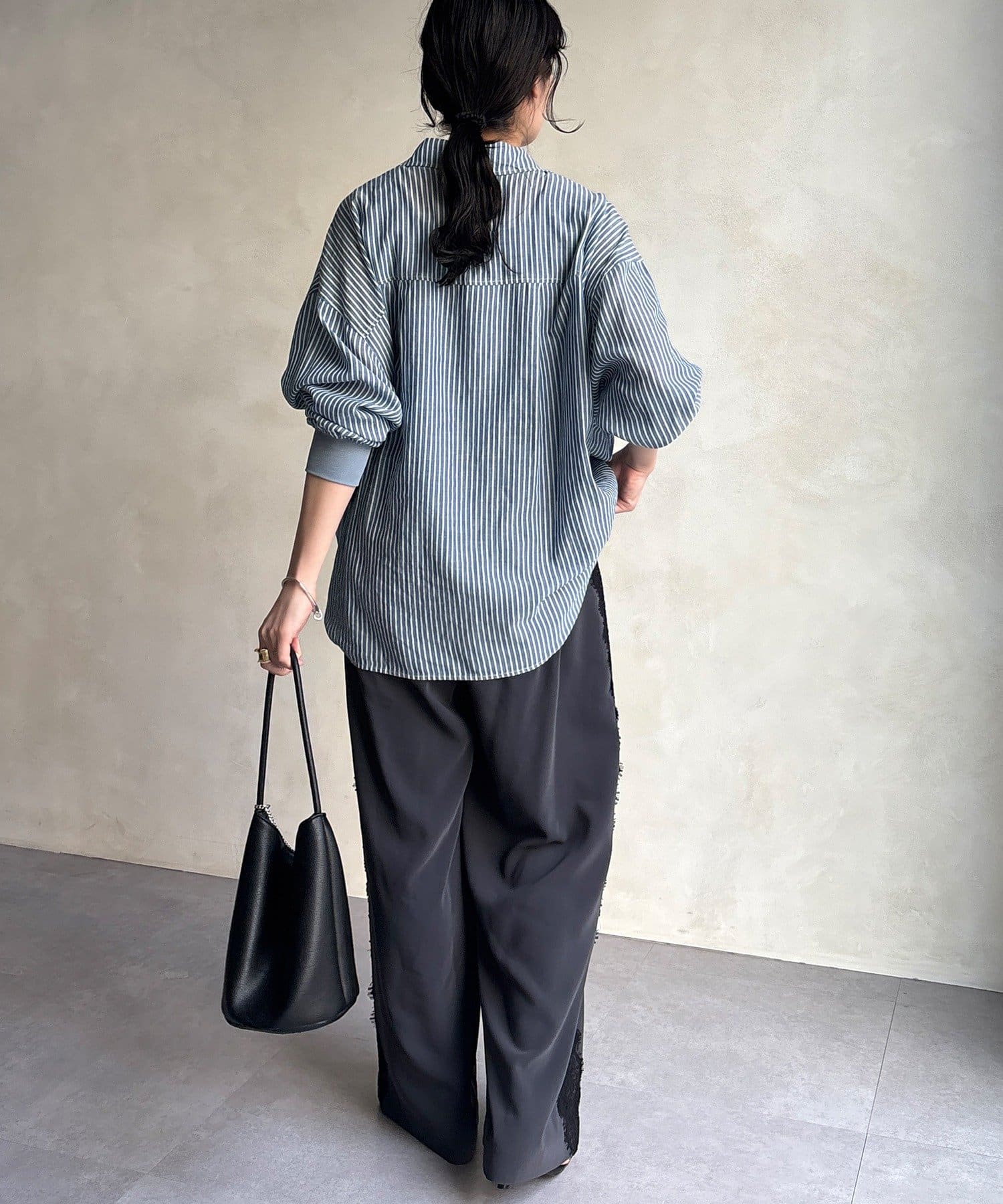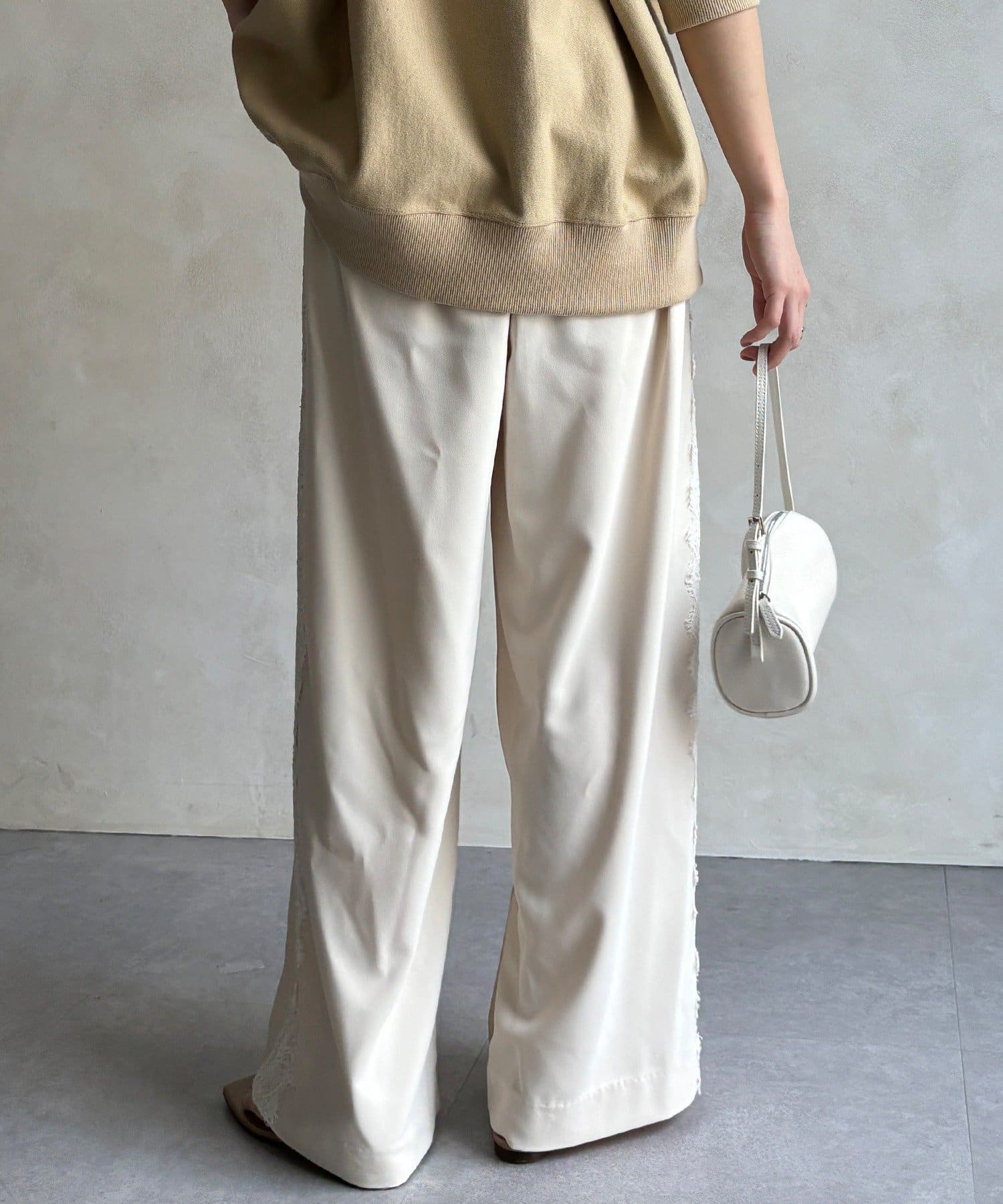 DOUDOU(ドゥドゥ) サイドレースタックワイドパンツ