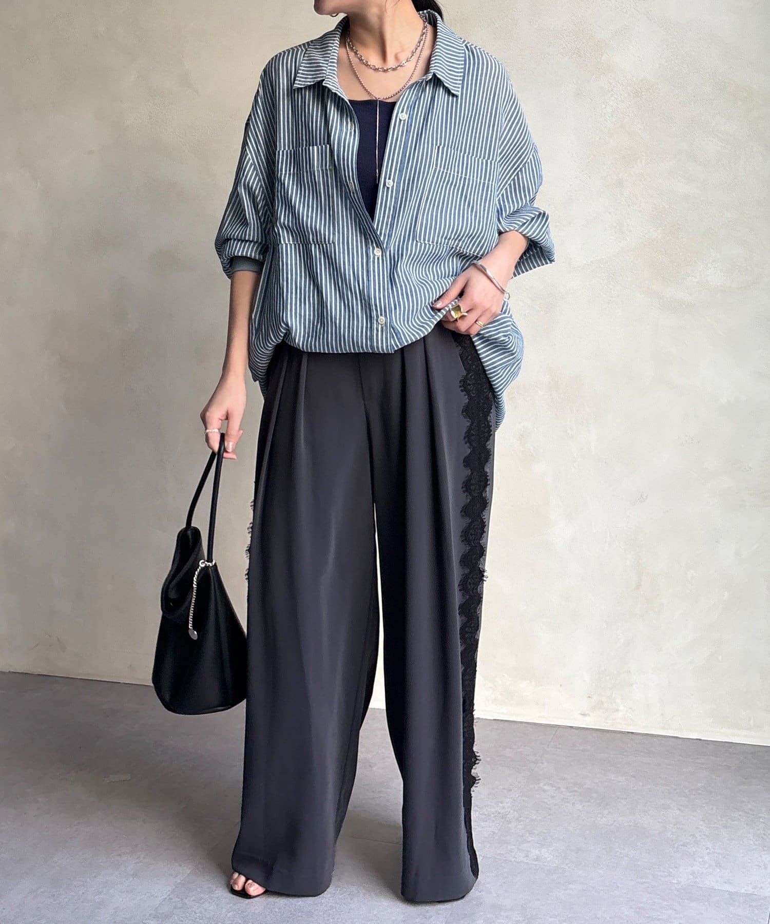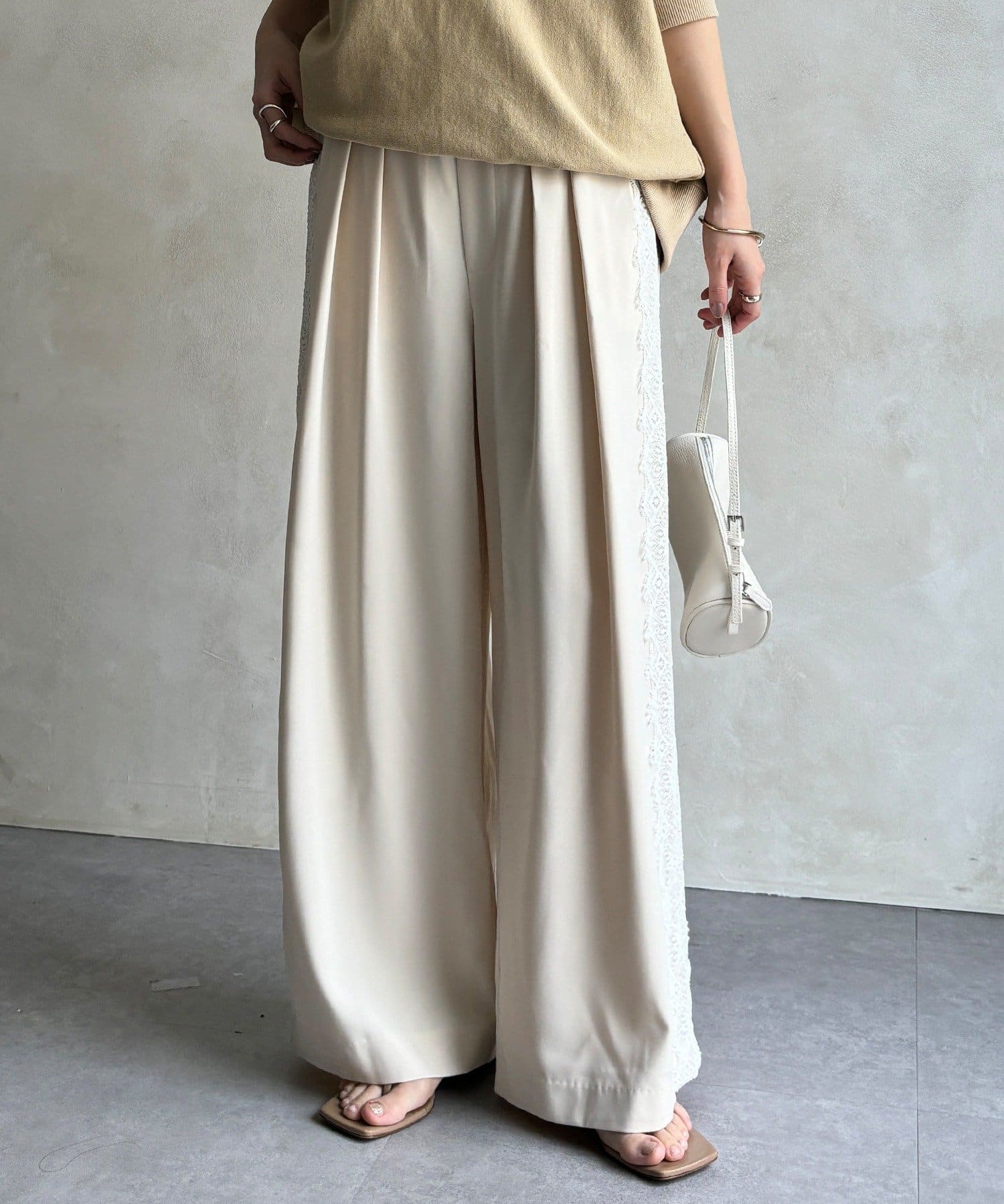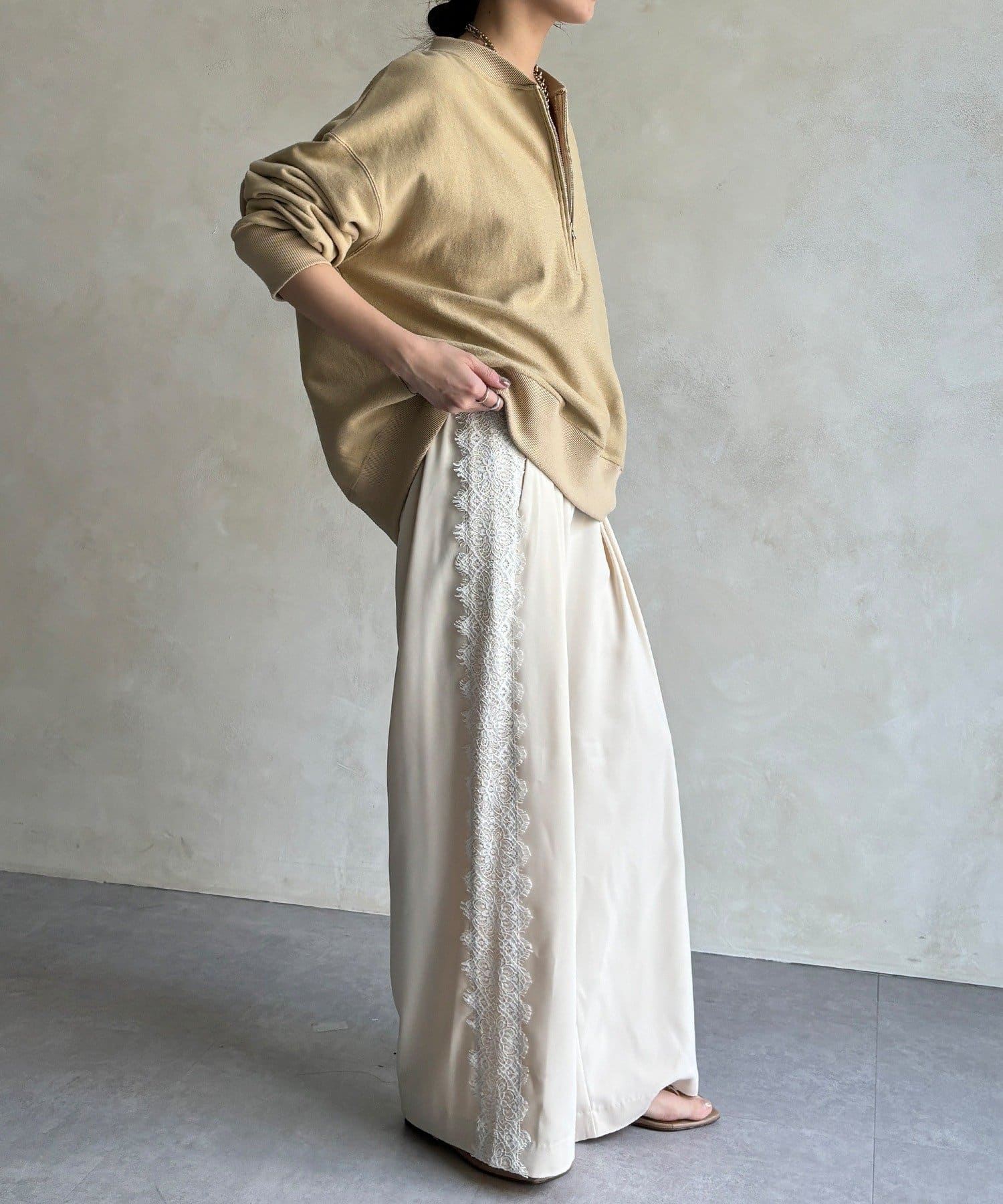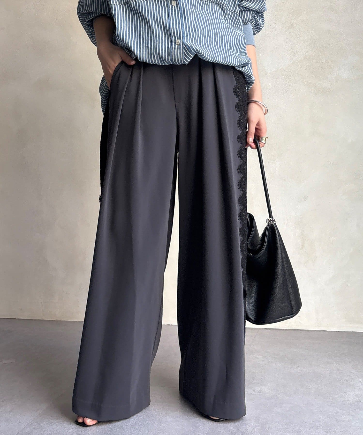 サイドレースで大人っぽく!オールシーズン使えるワイドパンツ