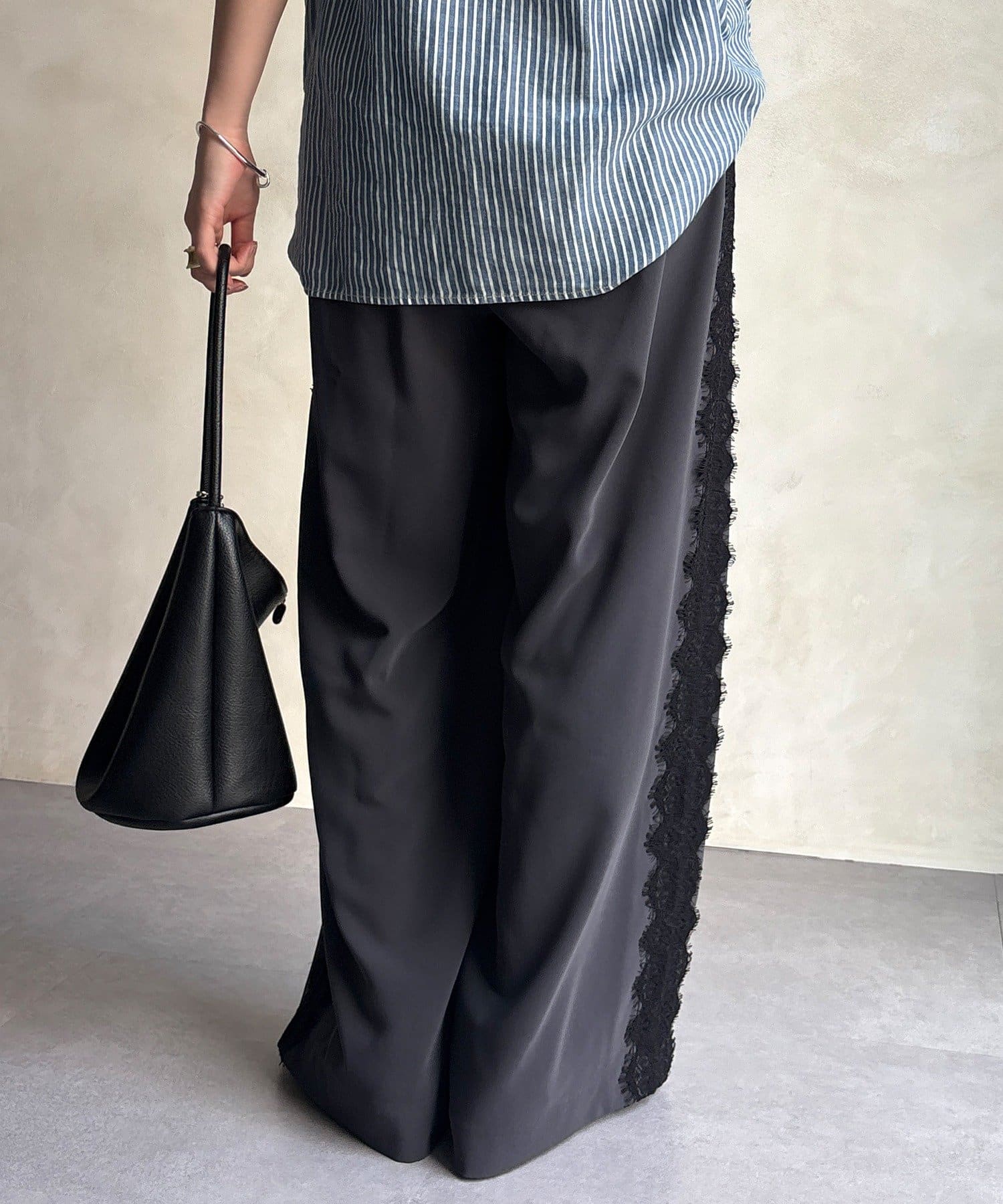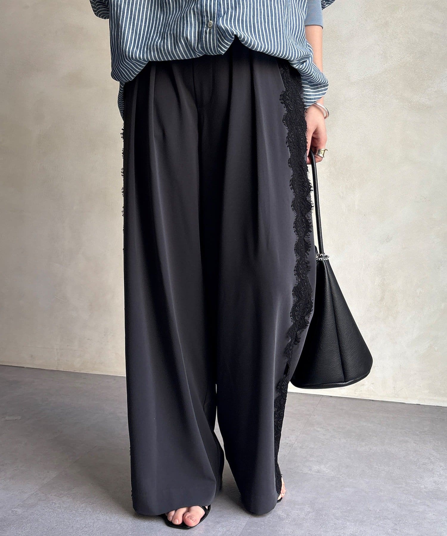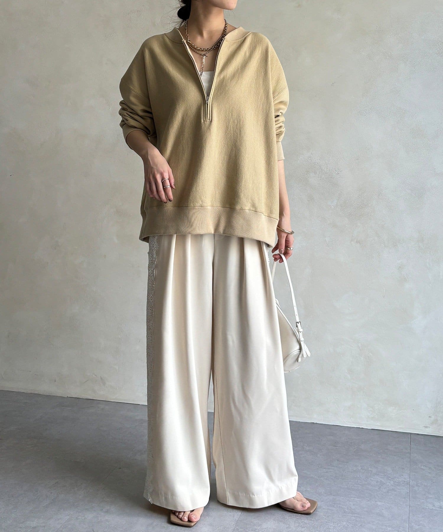 サイドレースで大人っぽく!オールシーズン使えるワイドパンツ