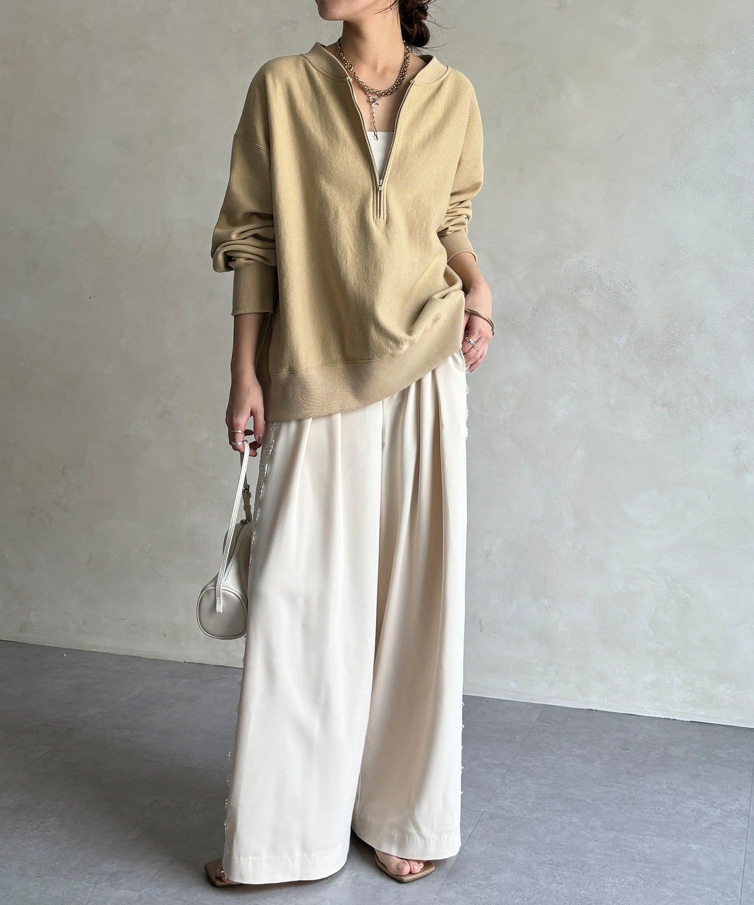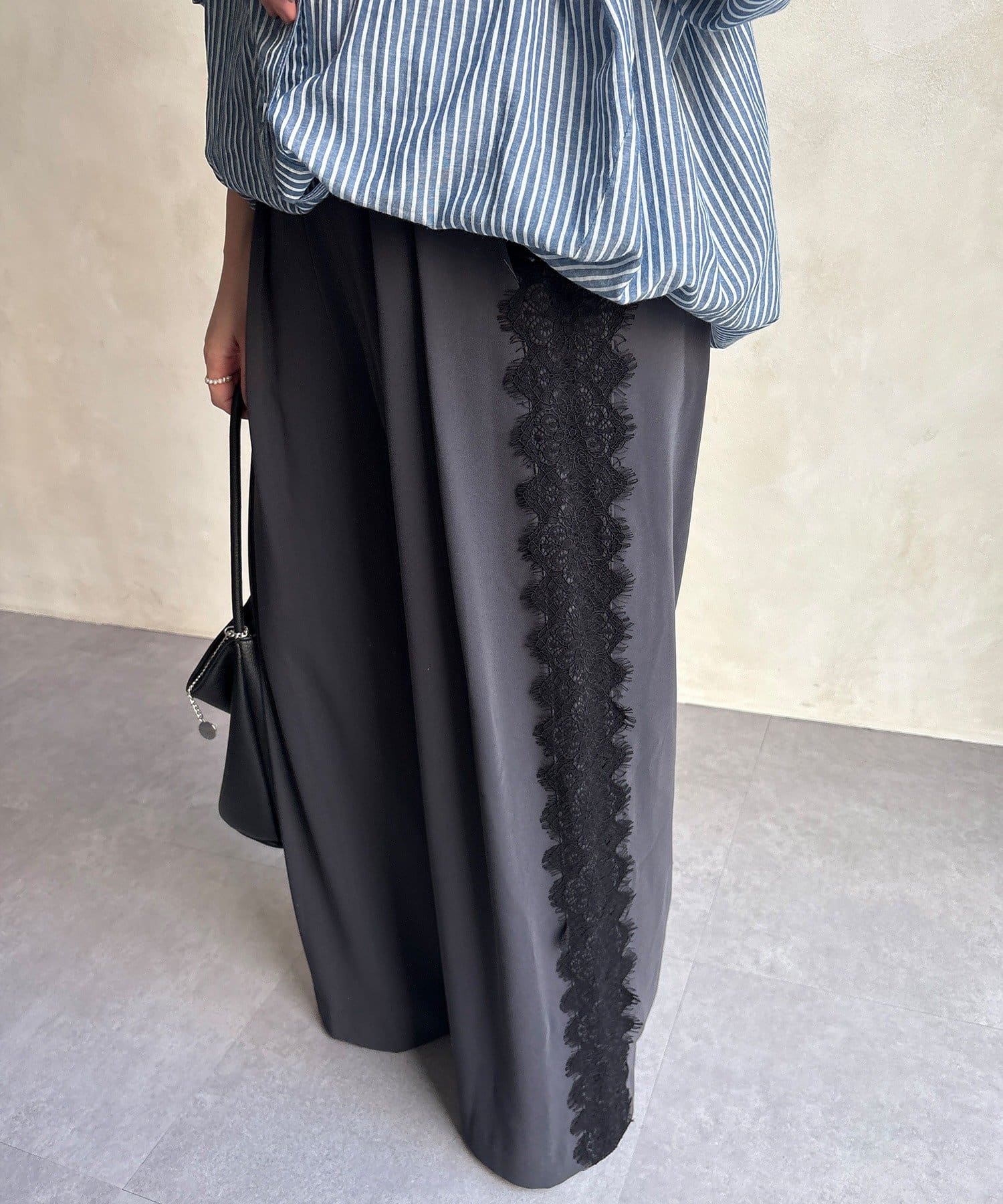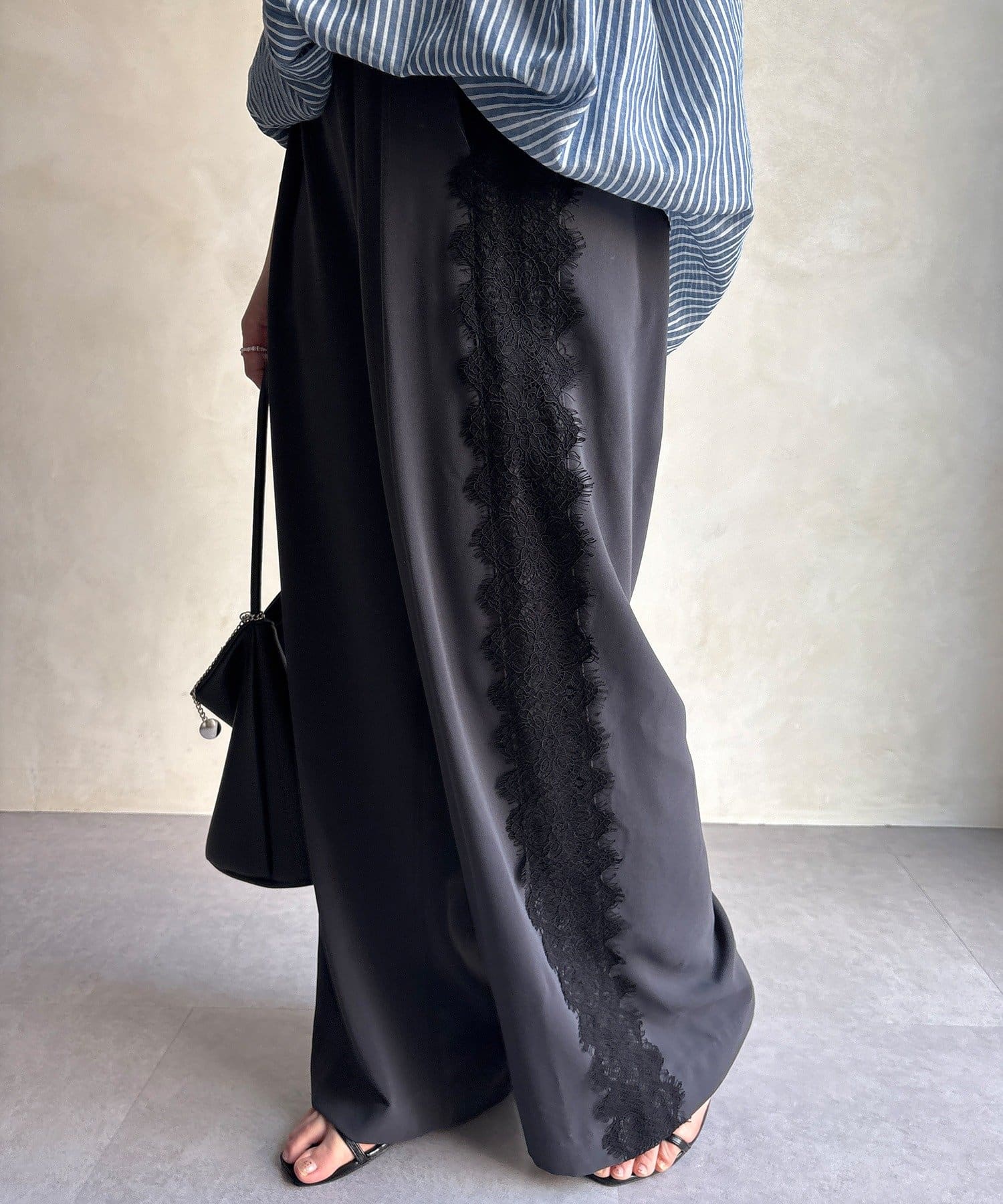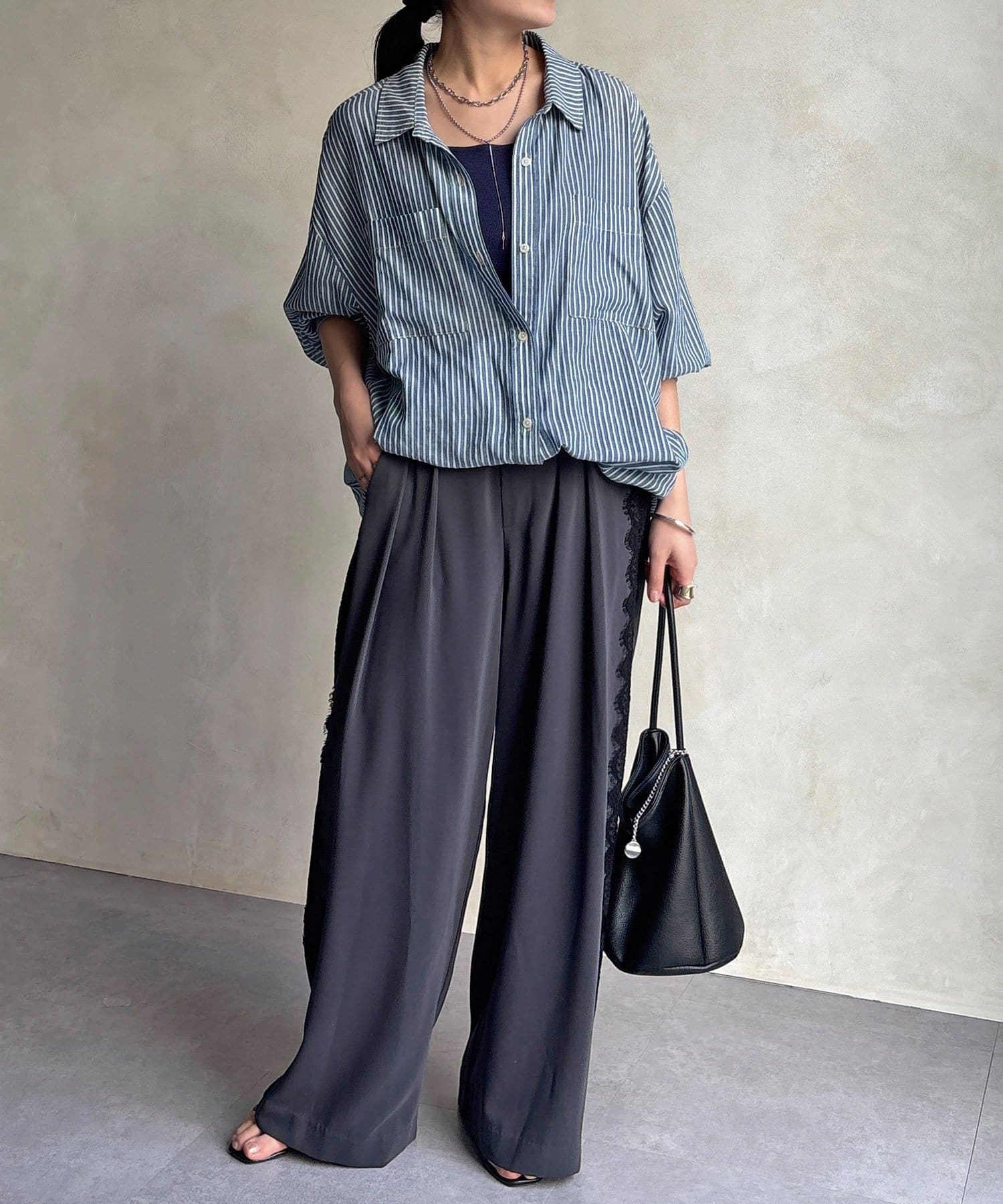 サイドレースで大人っぽく!オールシーズン使えるワイドパンツ