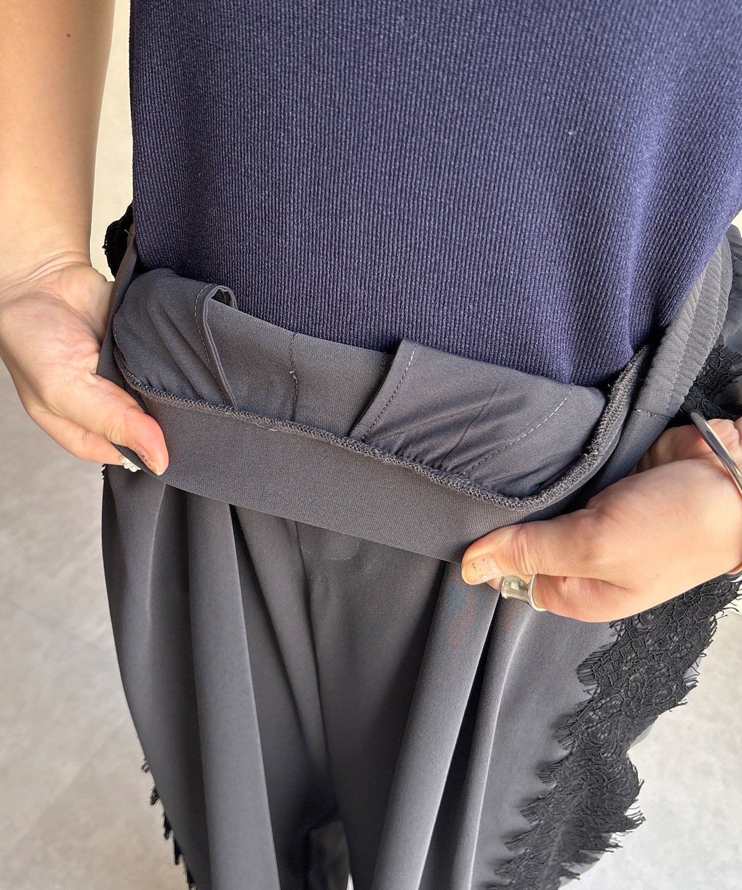 • DOUDOU(ドゥドゥ) サイドレースタックワイドパンツ