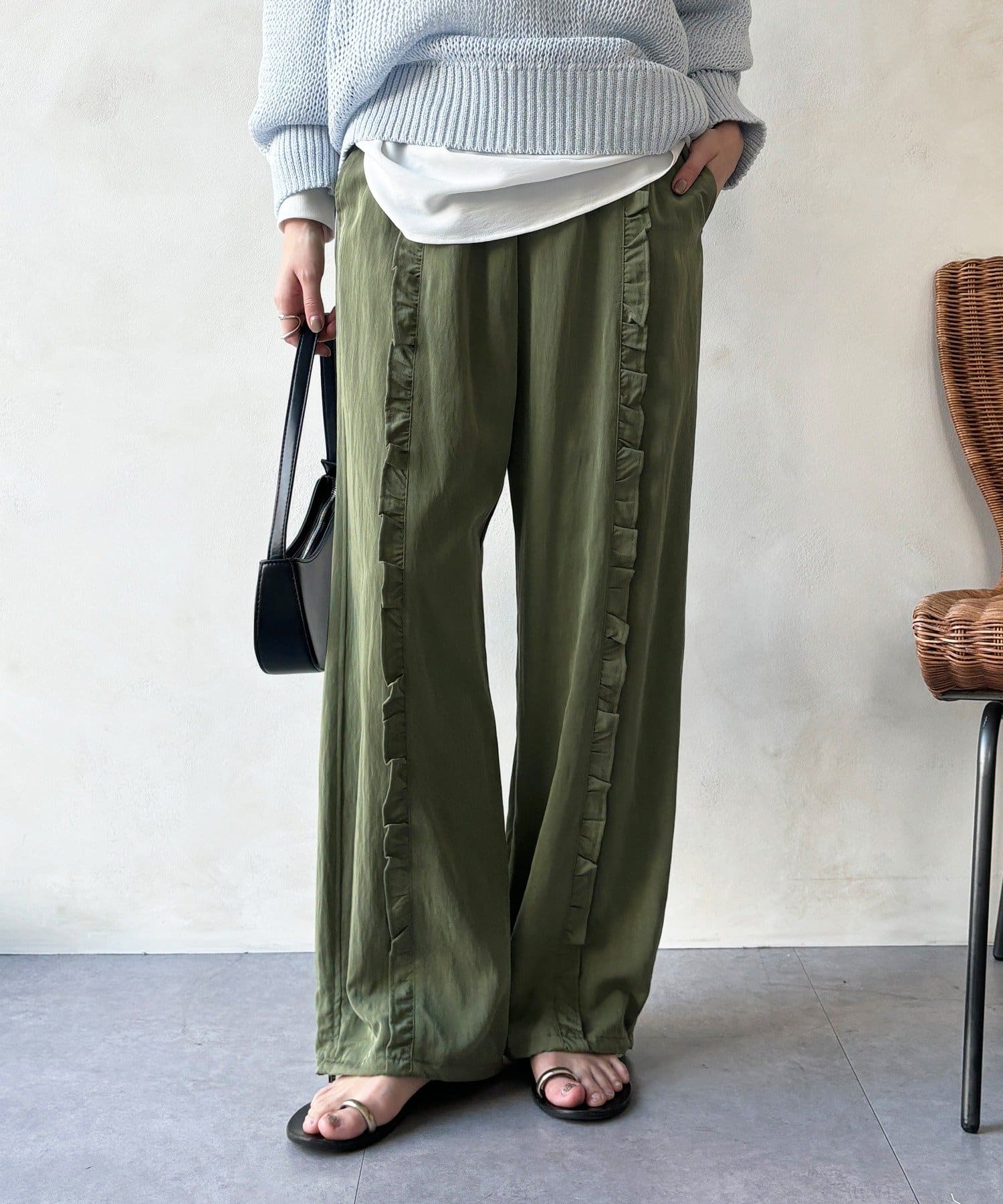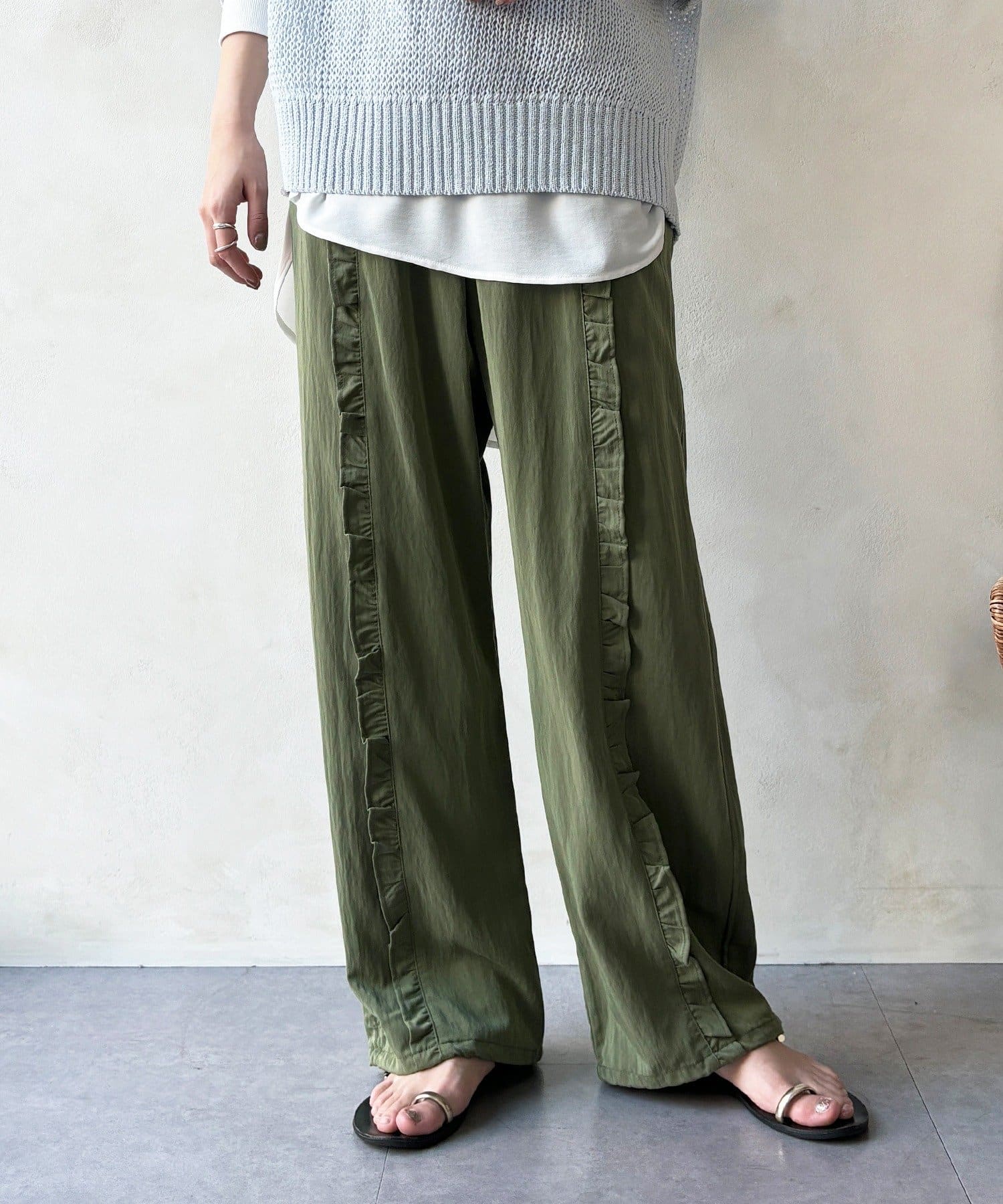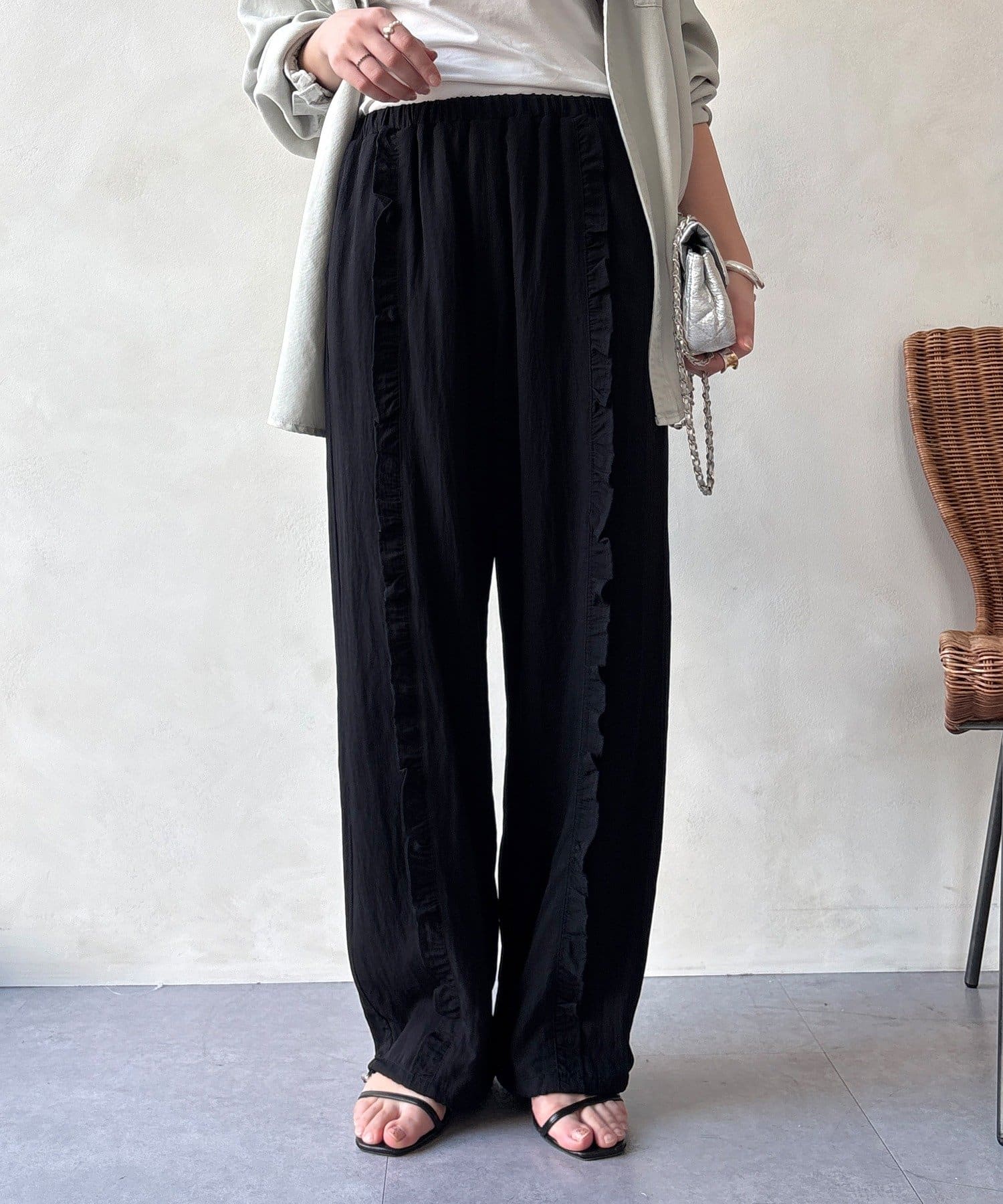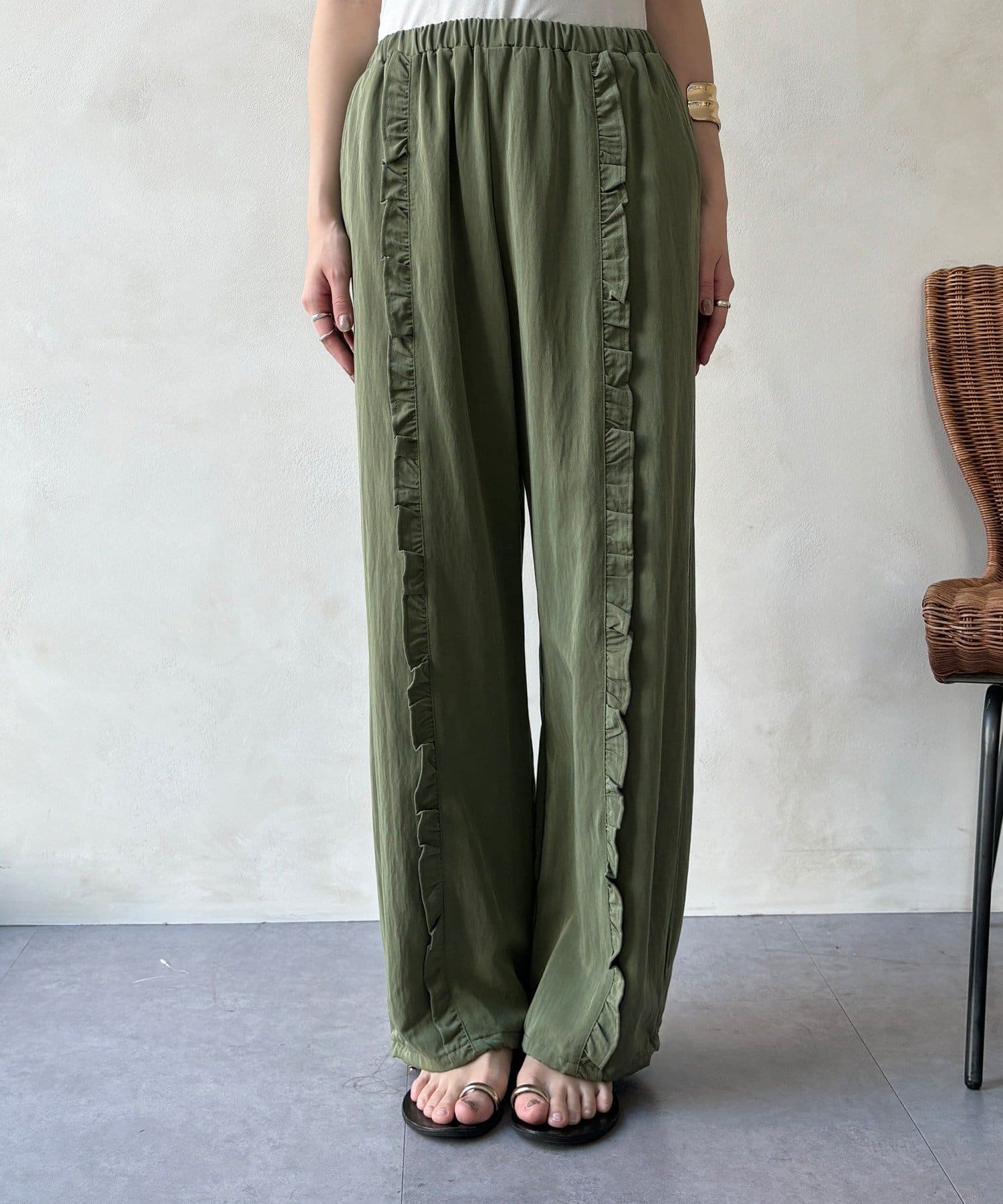 さりげなく甘い、フリルラインイージーパンツ