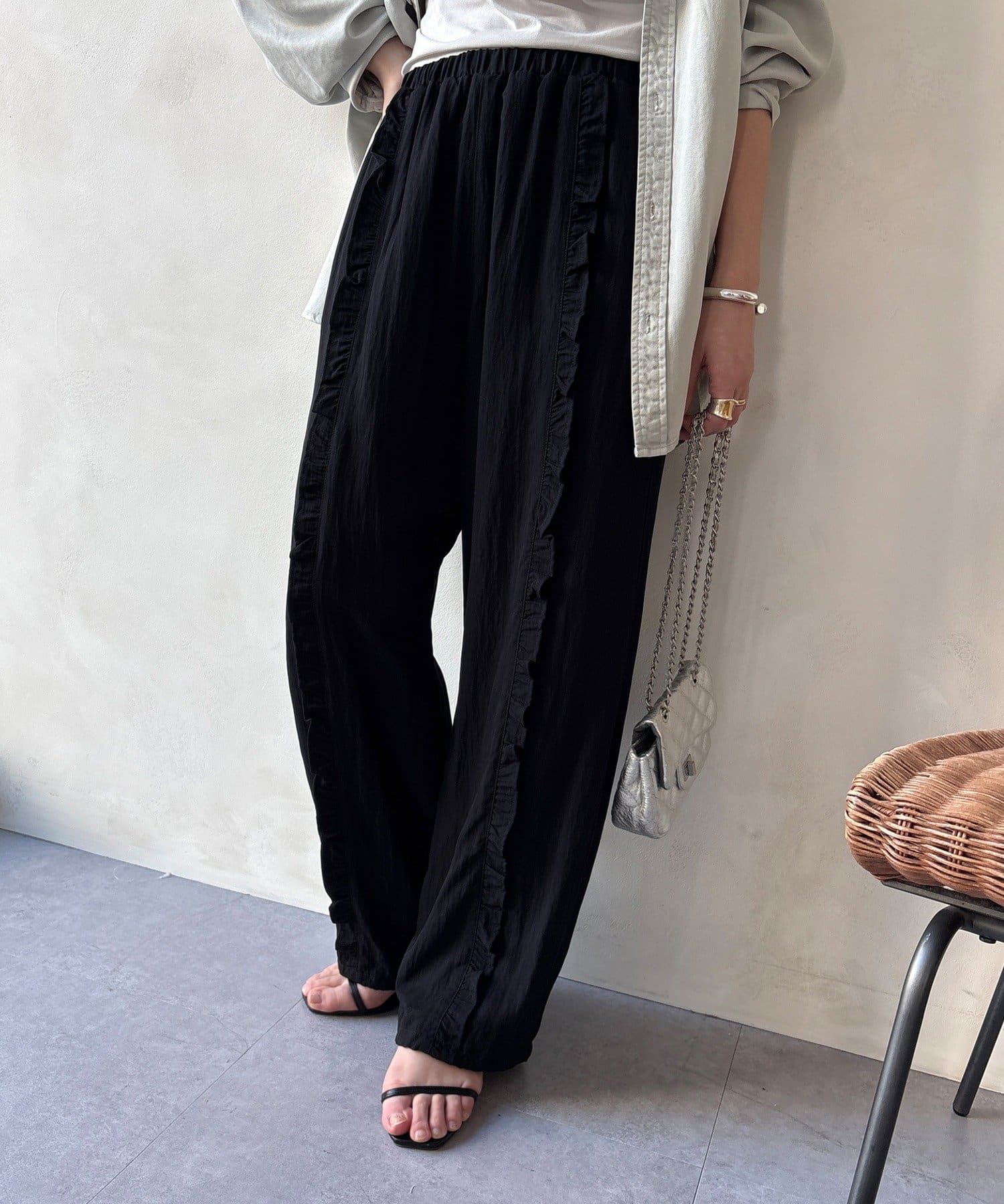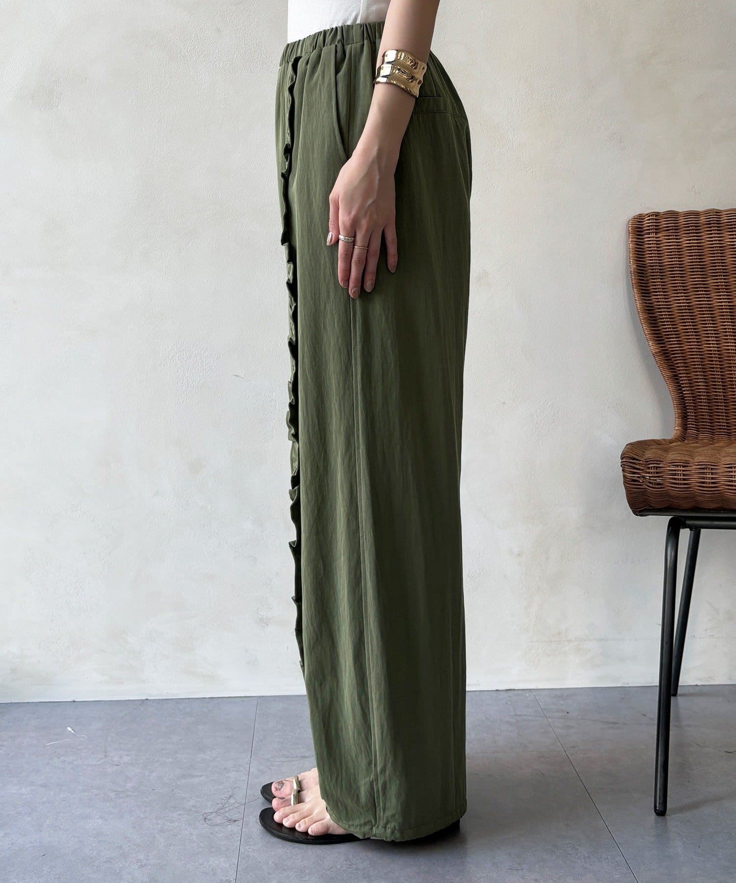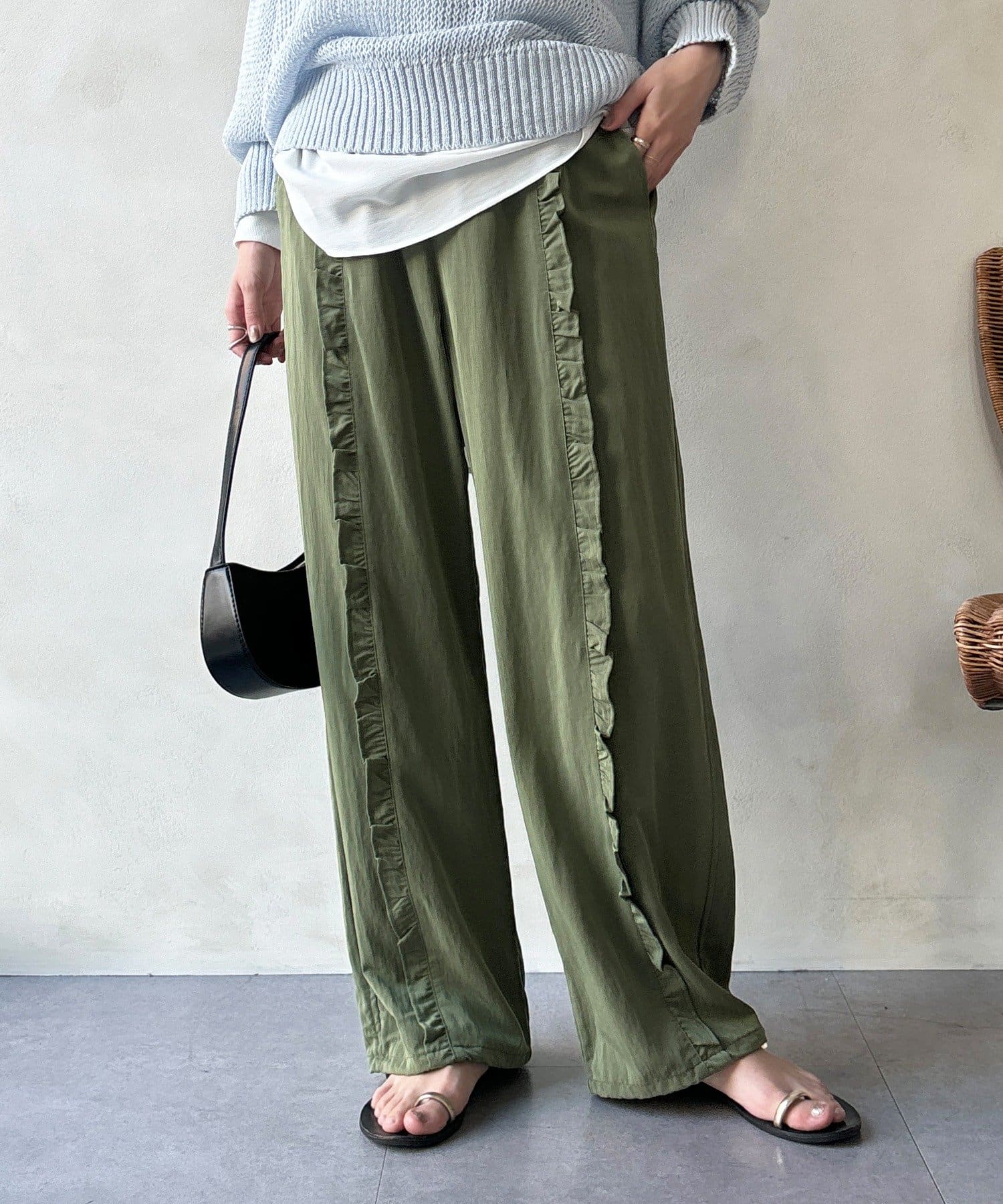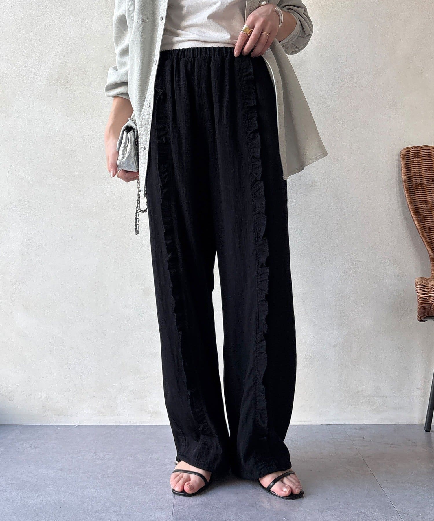 さりげなく甘い、フリルラインイージーパンツ