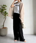 脚のラインを拾わないゆったりとしたワイドシルエットで、リラックスした着心地を再現。