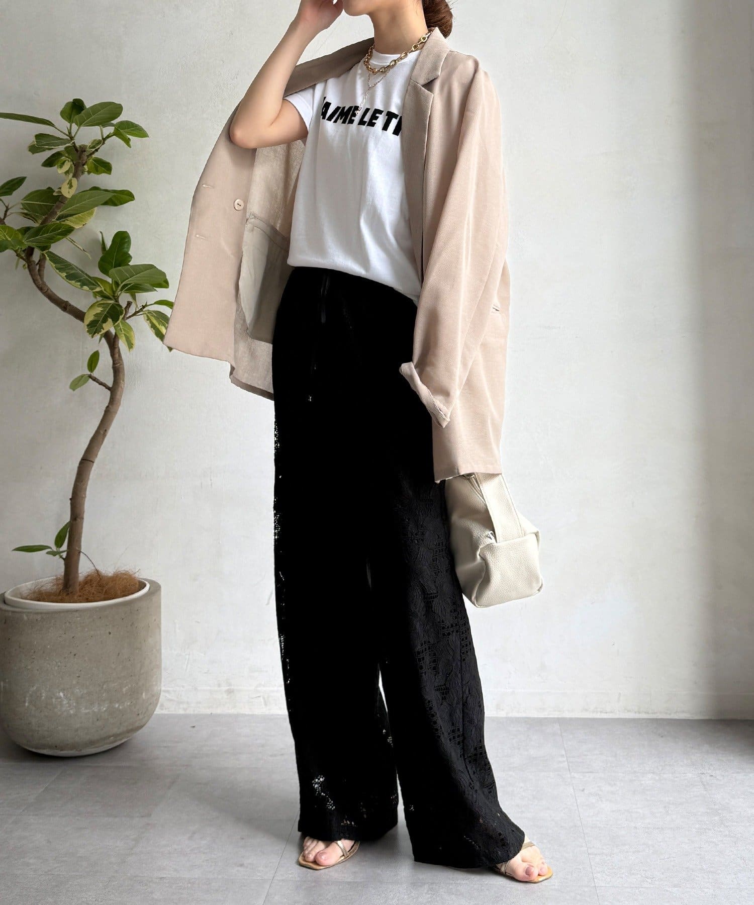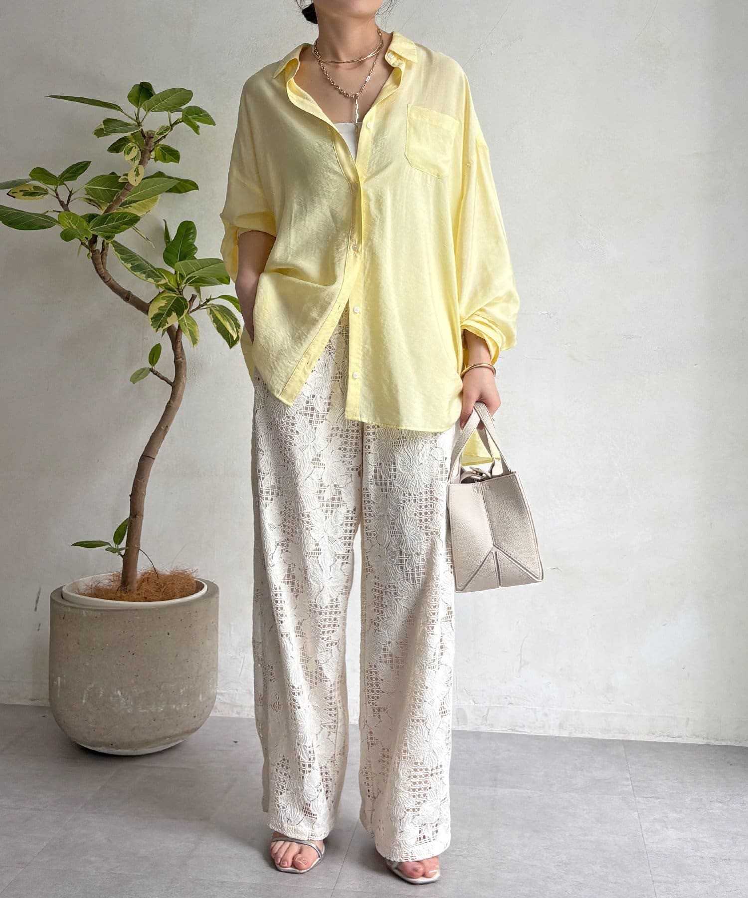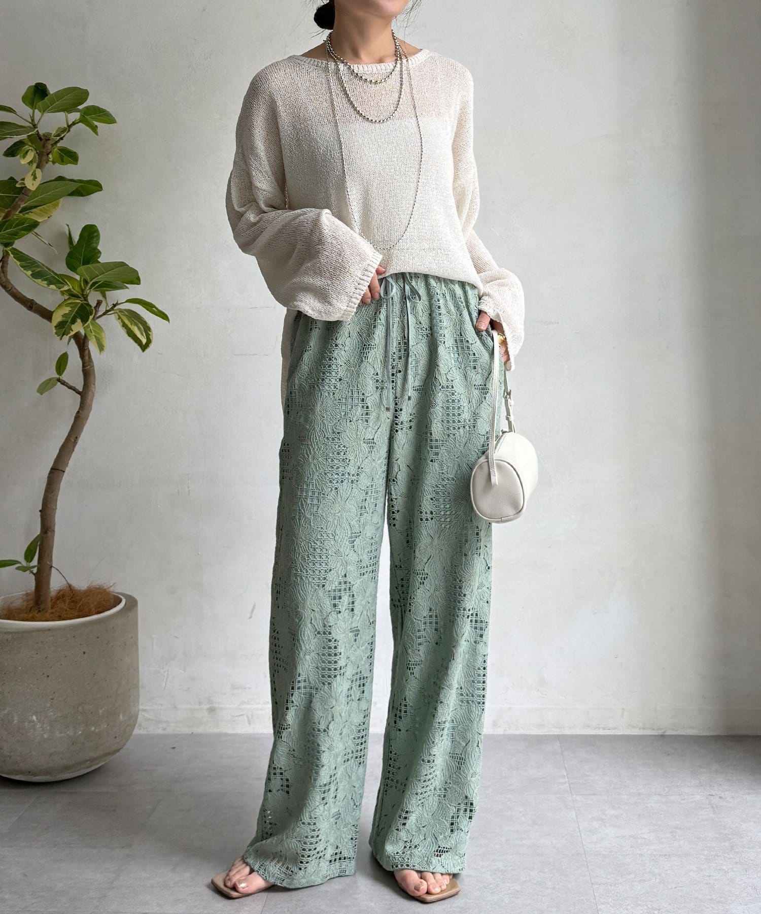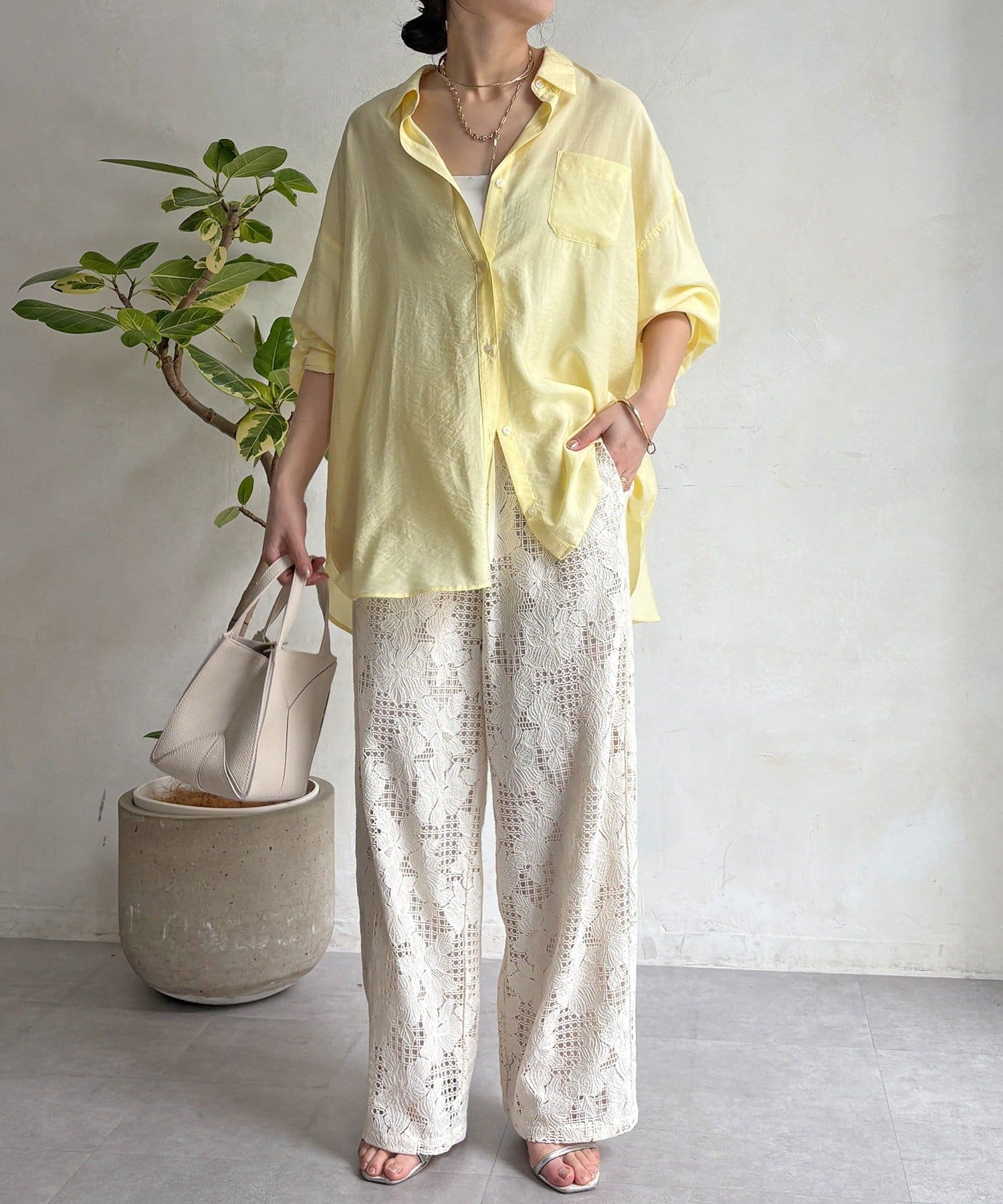 レースの透け感と軽やかな生地が、スッキリとした印象を与えてくれます。