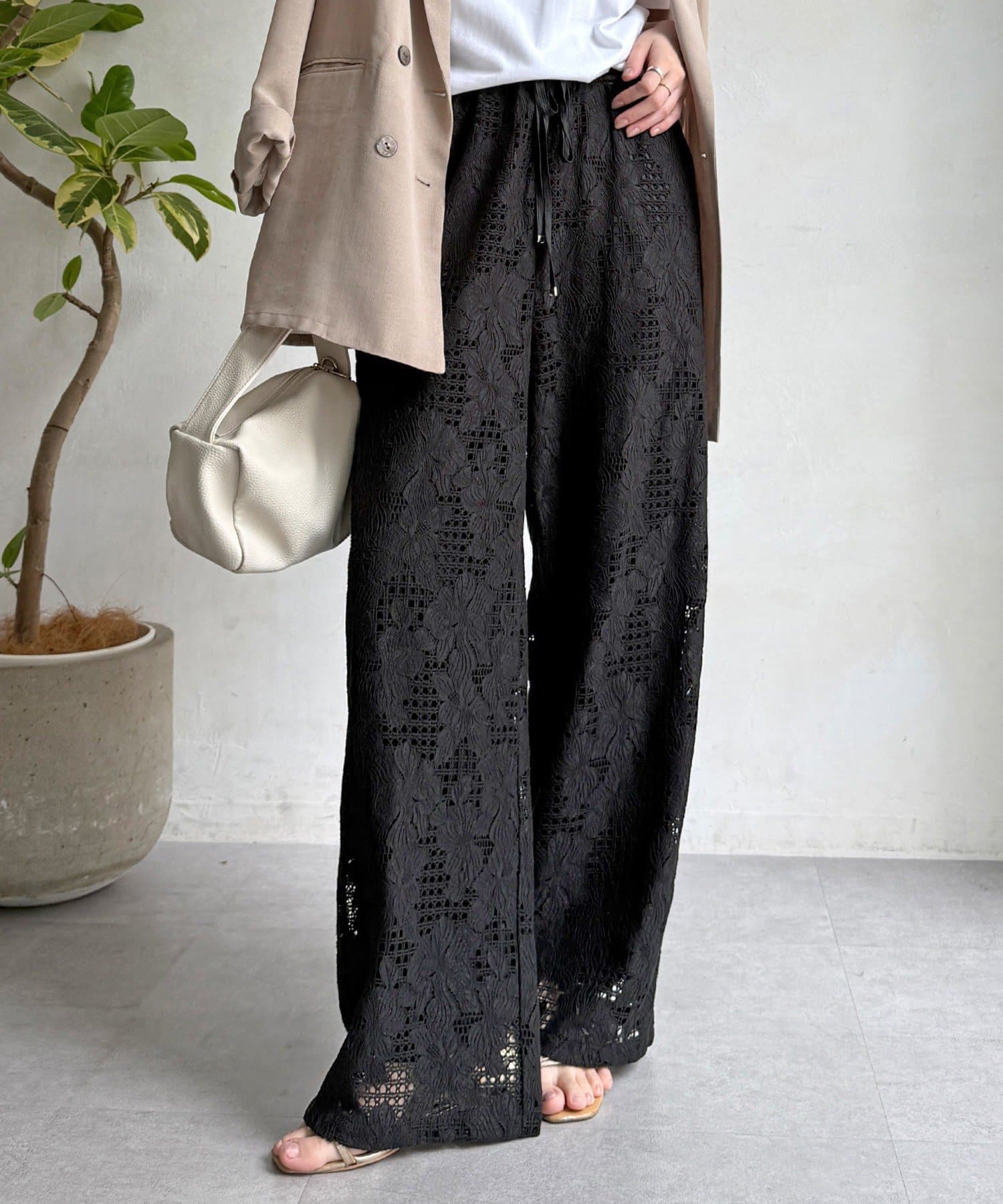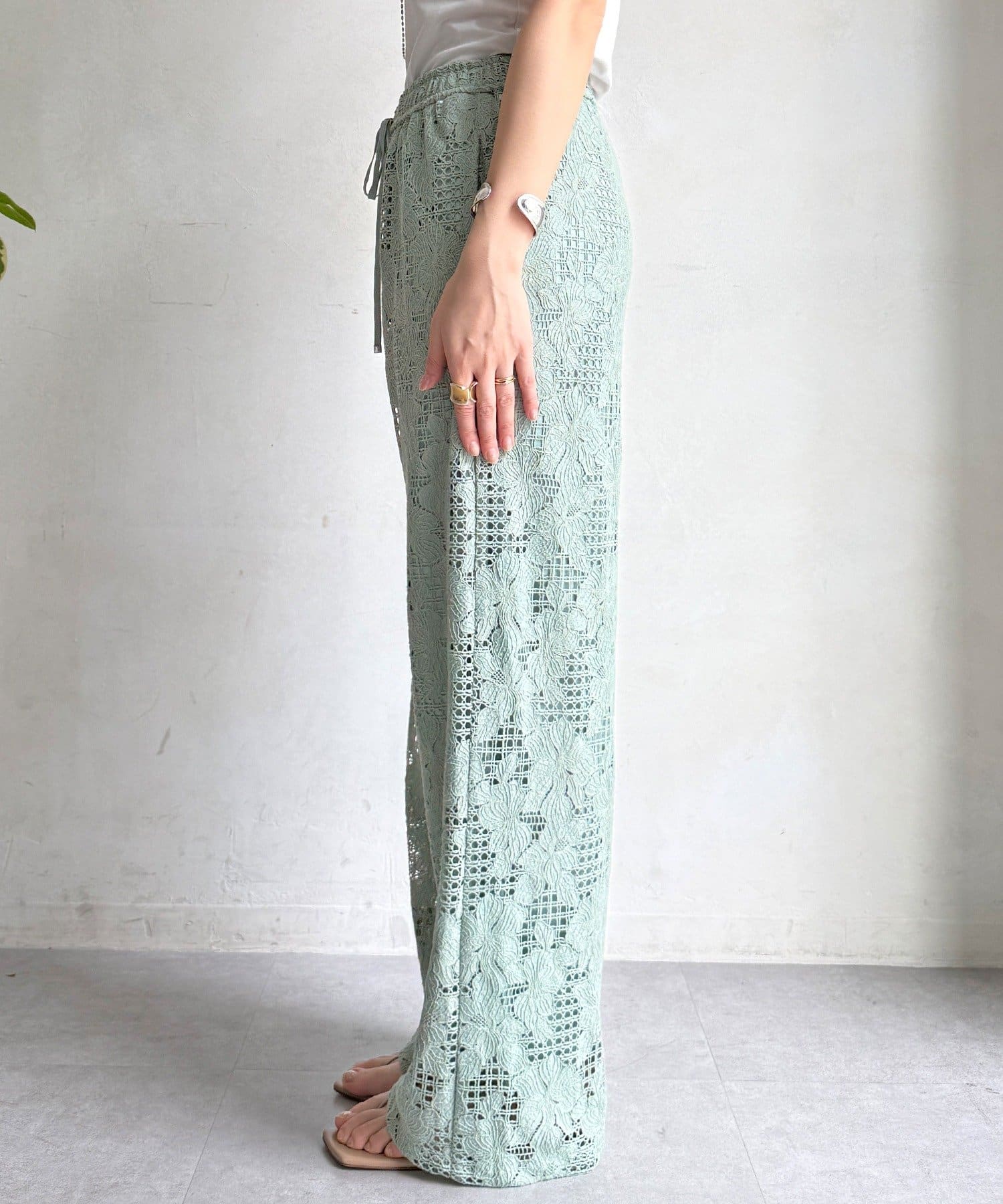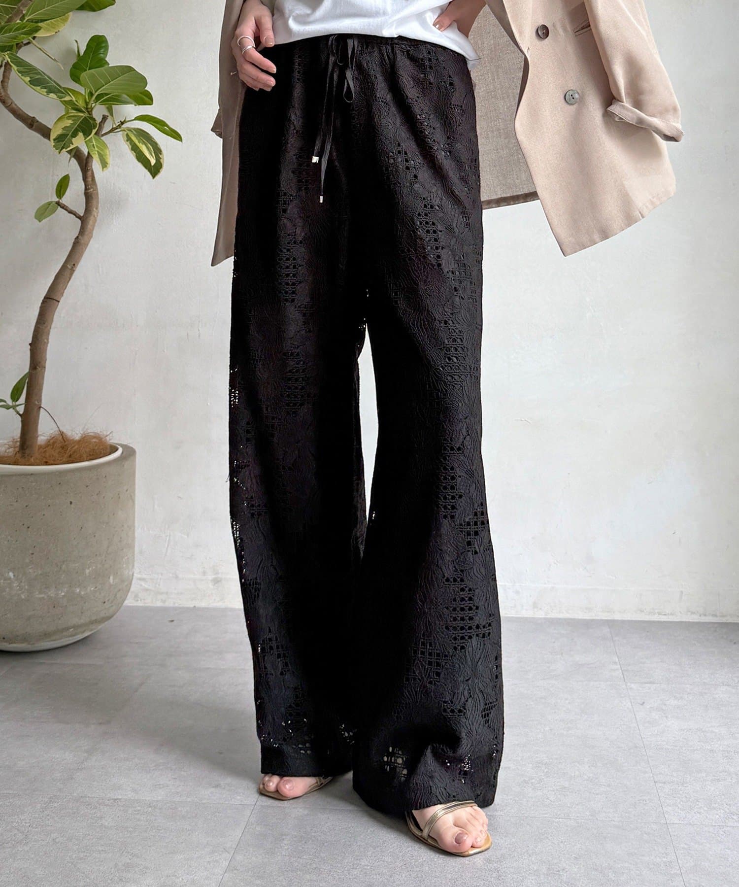 【WEB限定】フラワーコードレースイージーパンツ