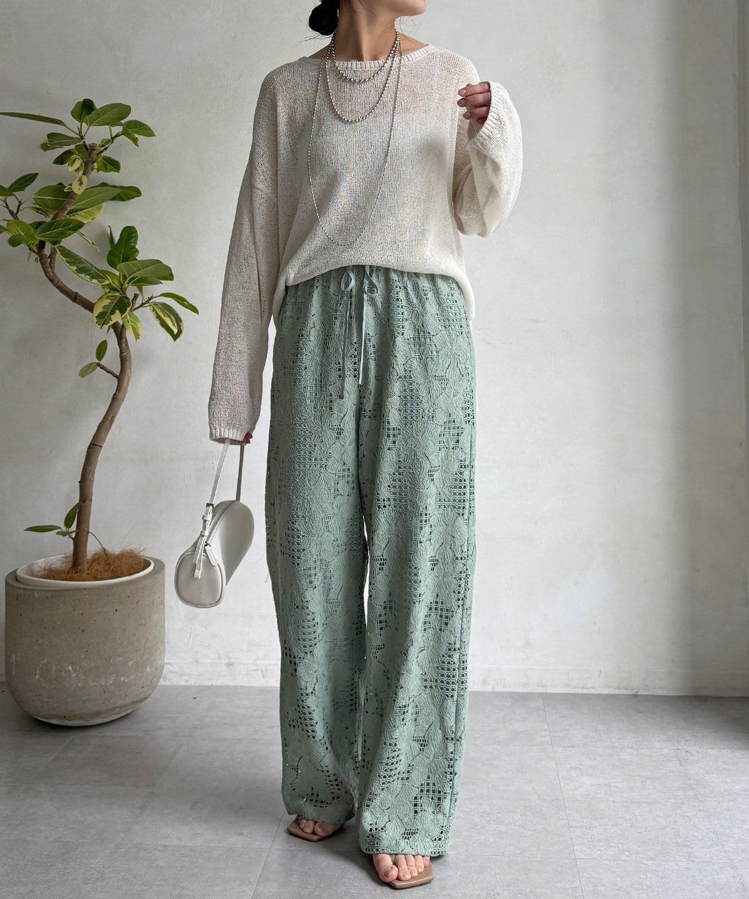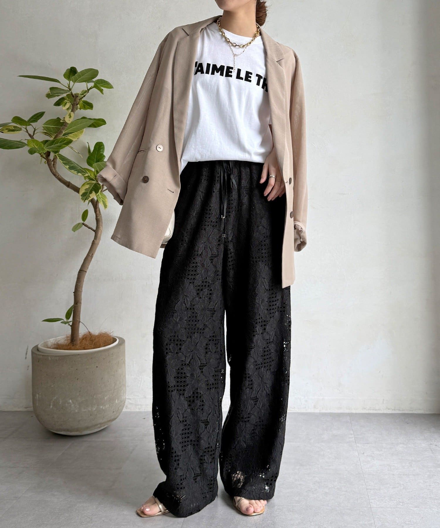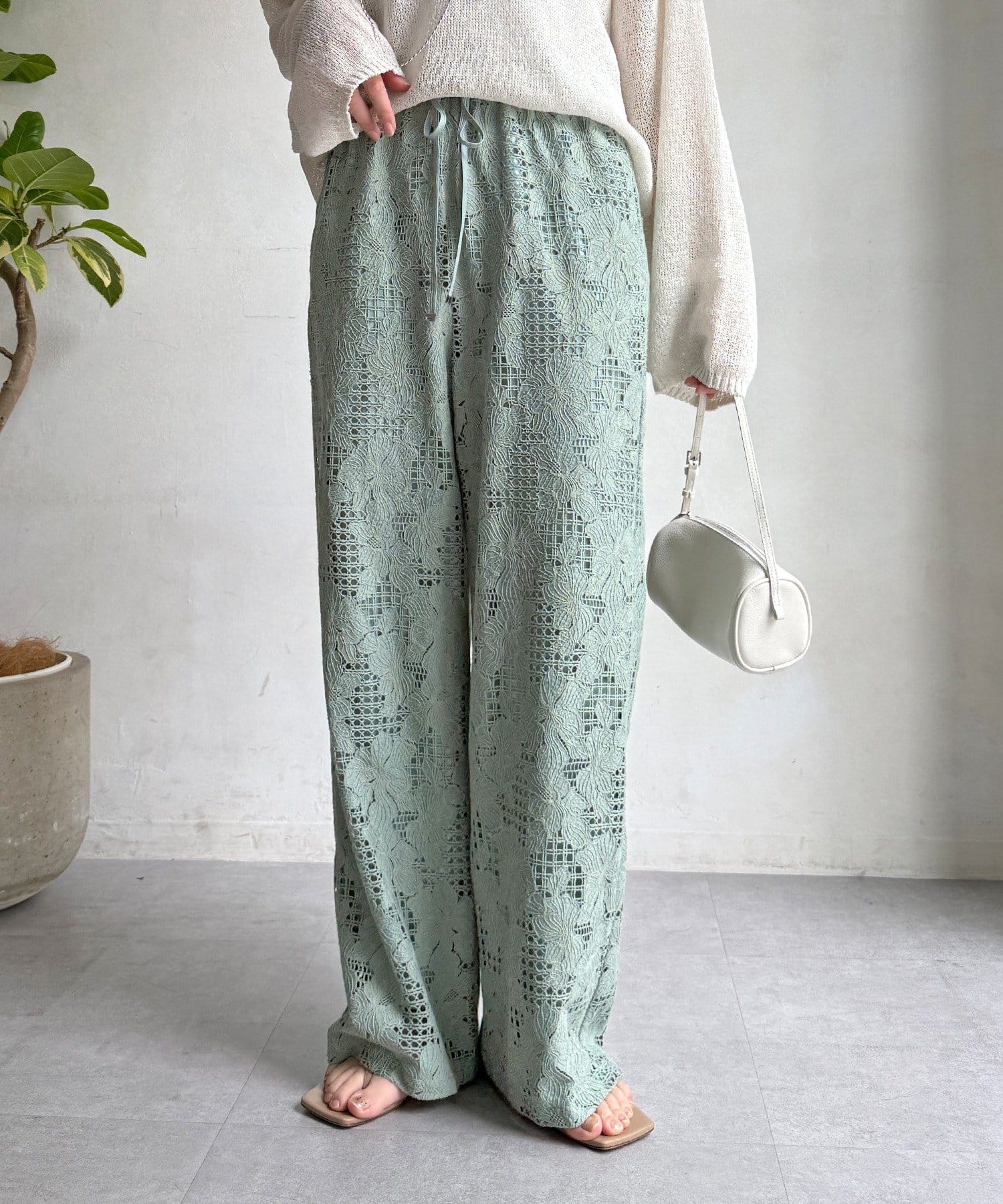 【WEB限定】フラワーコードレースイージーパンツ