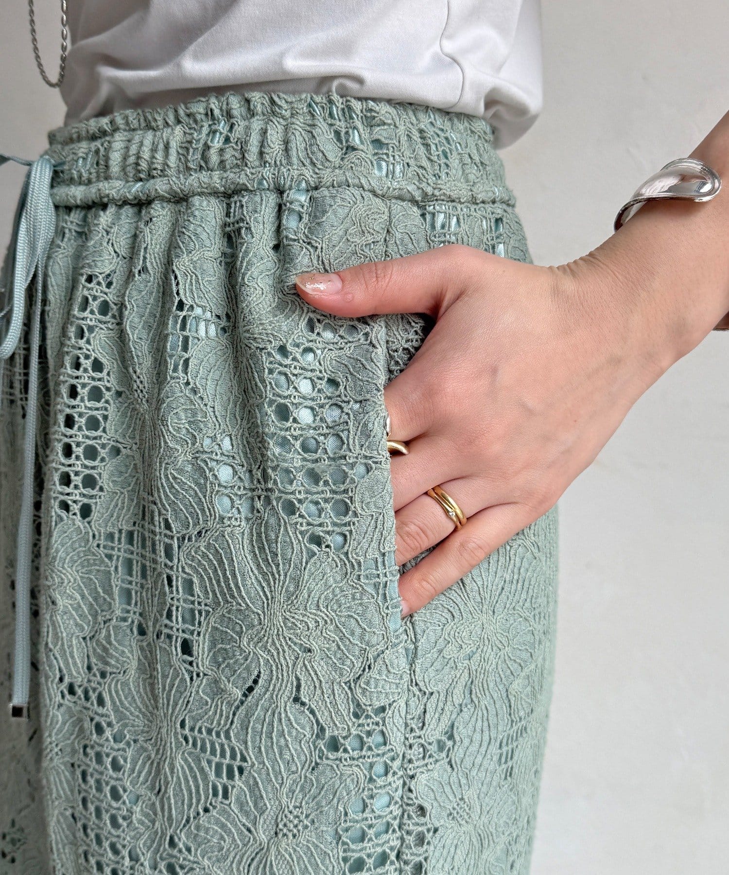 立体的な美しさのコードレースパンツ