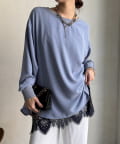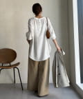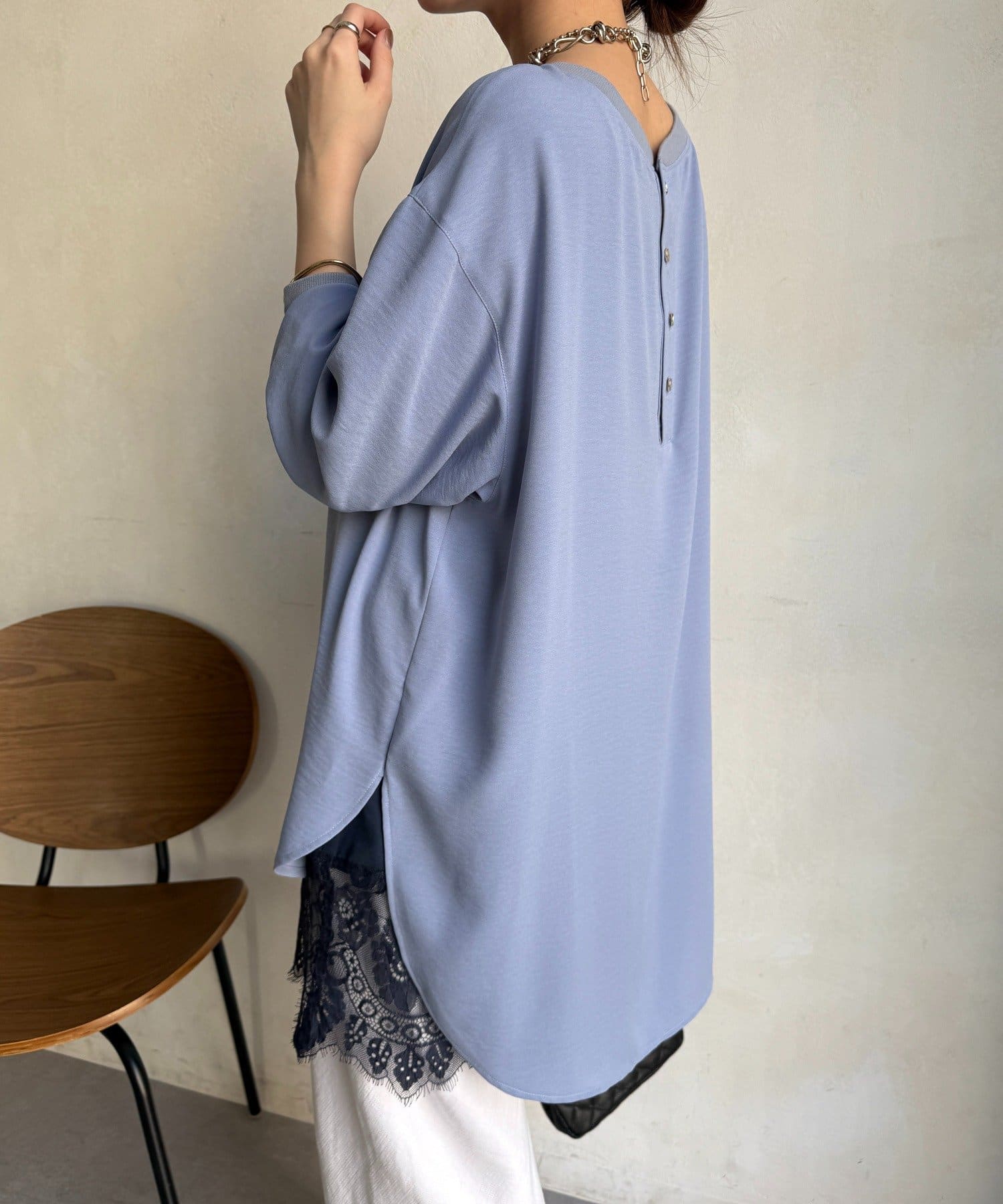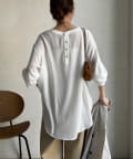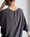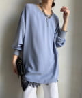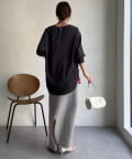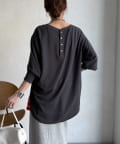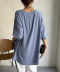 • DOUDOU(ドゥドゥ) 袖リブバックボタンジョーゼットプルオーバー