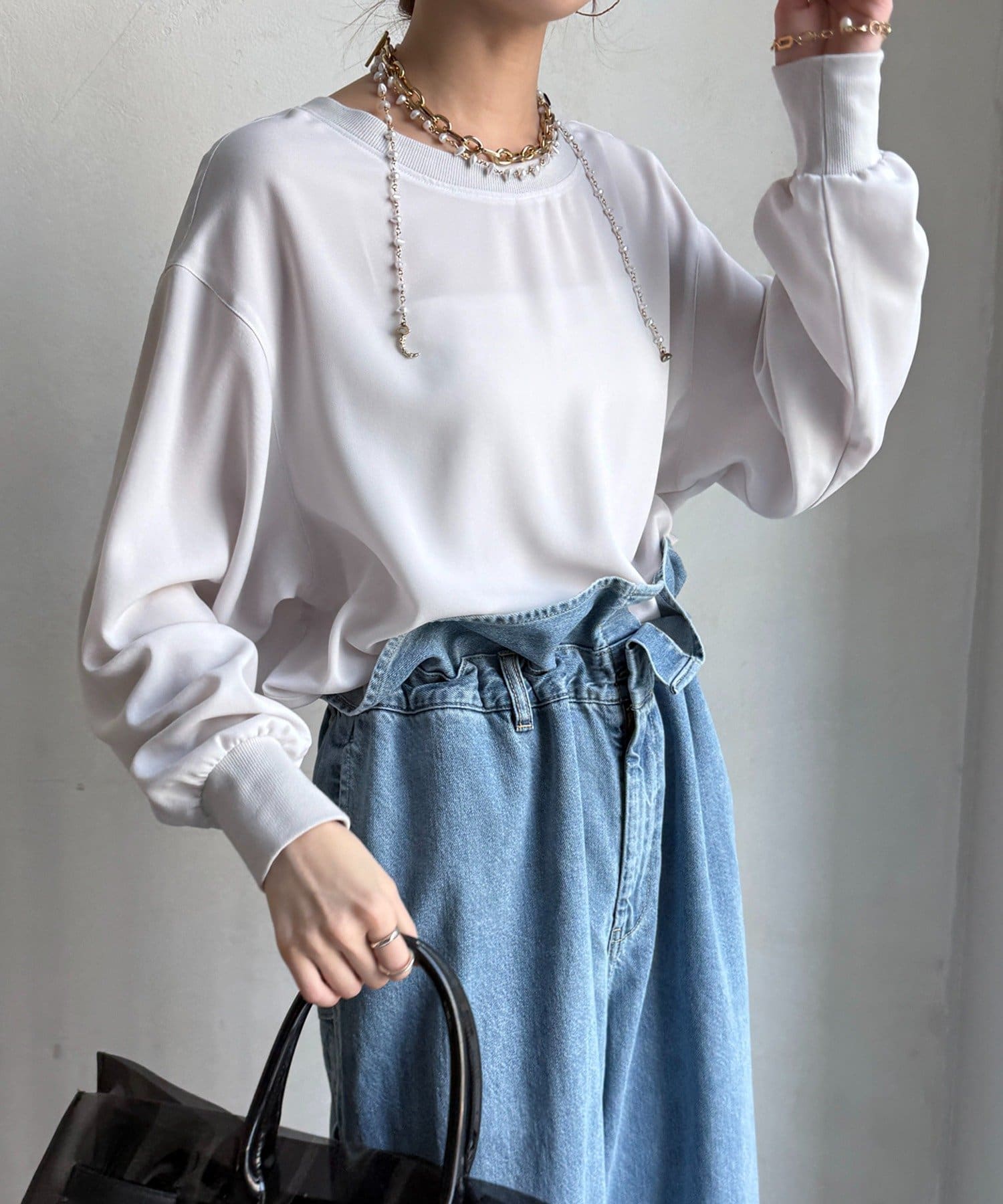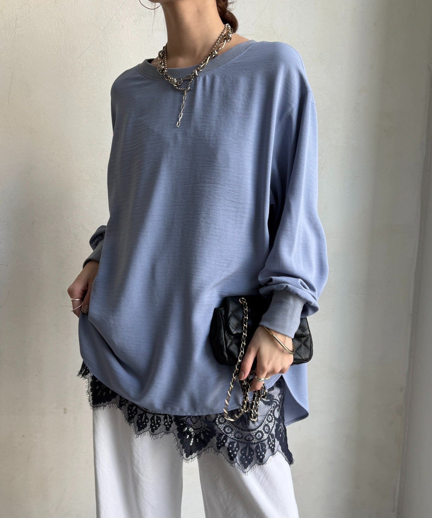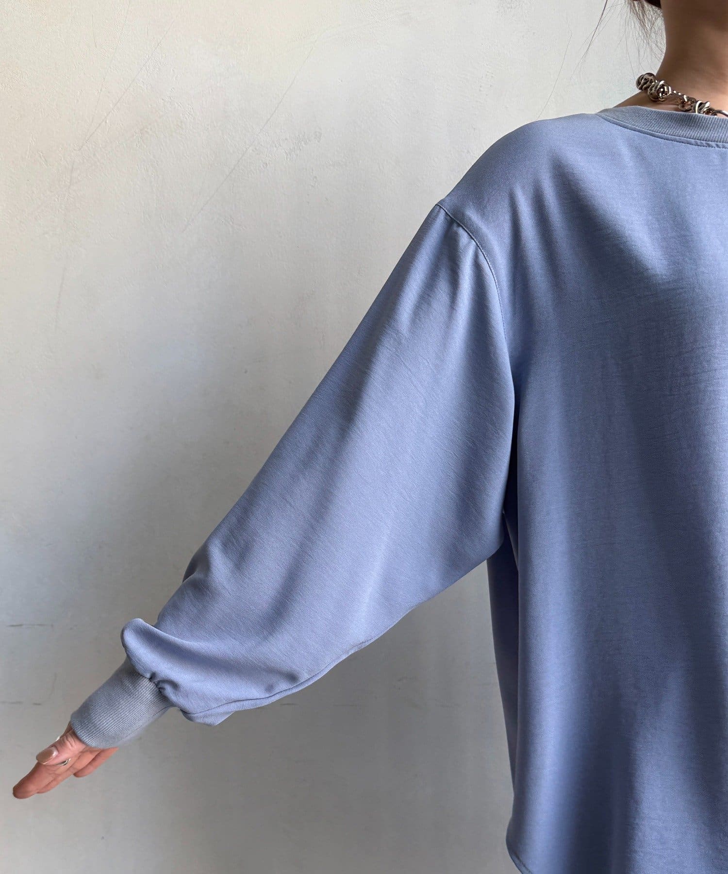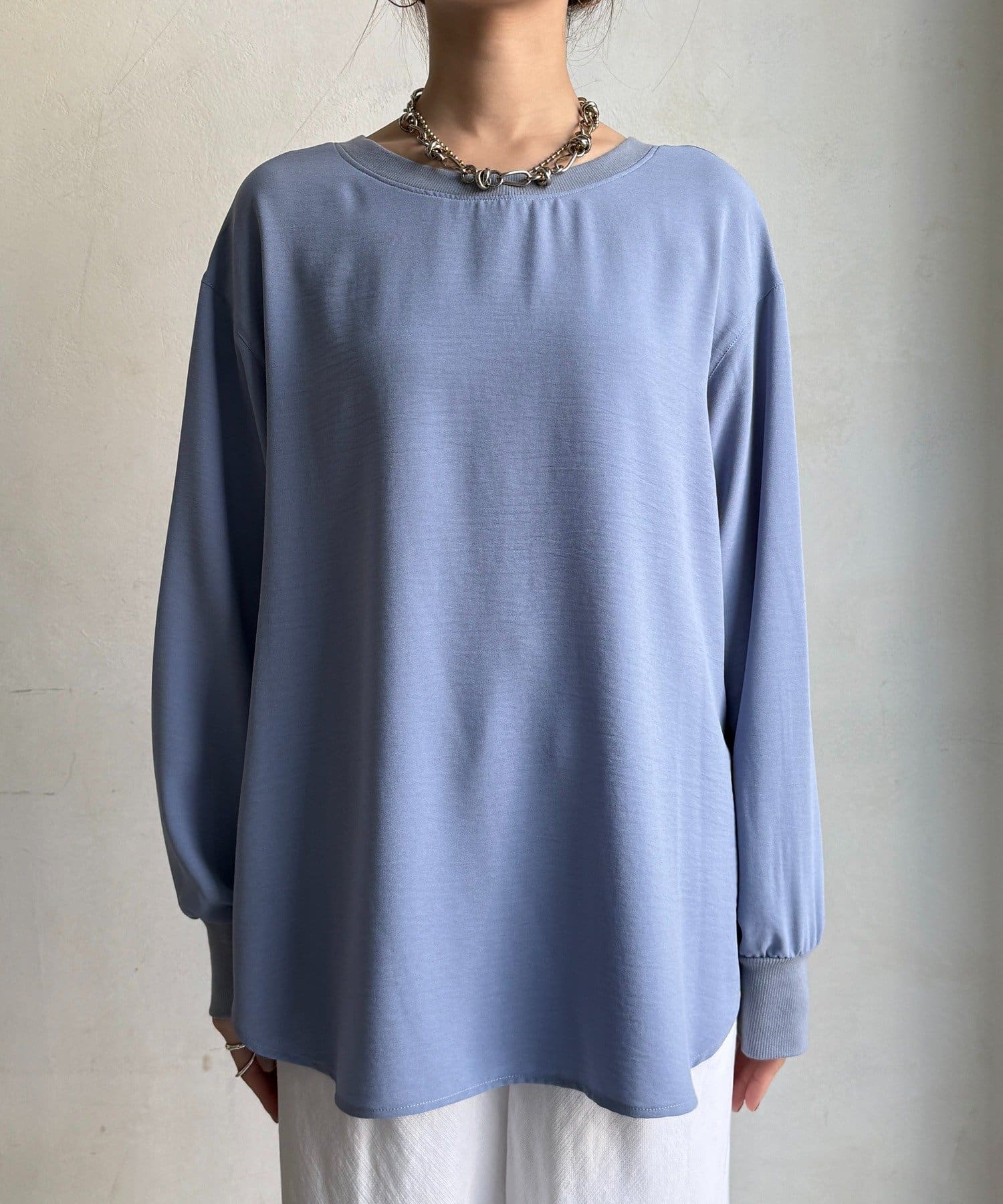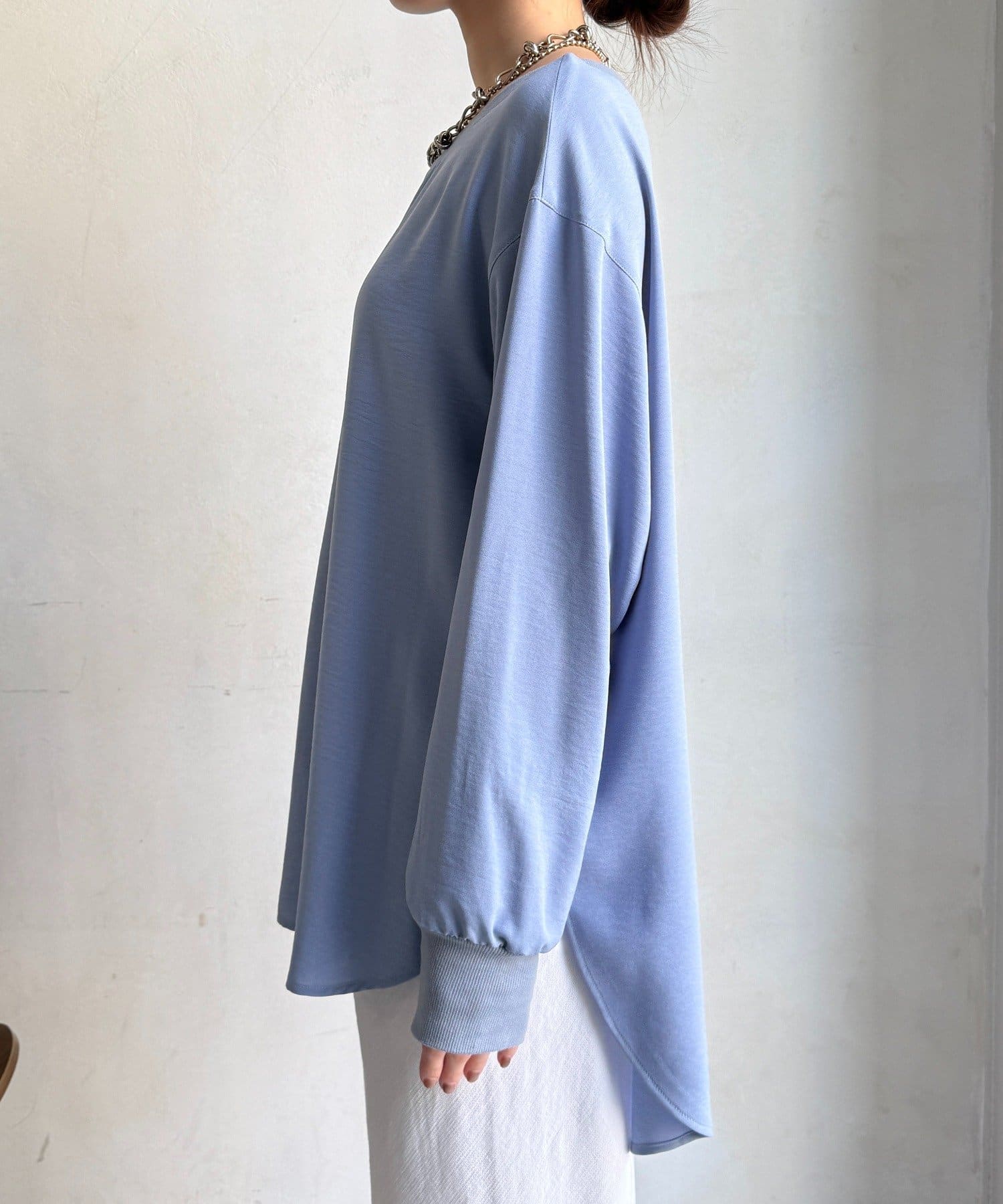袖リブバックボタンジョーゼットプルオーバー