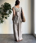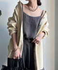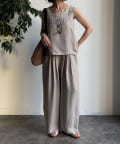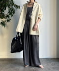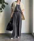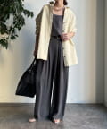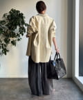 同素材のタックワイドパンツと合わせれば、旬のムード漂う セットアップスタイルが完成します。