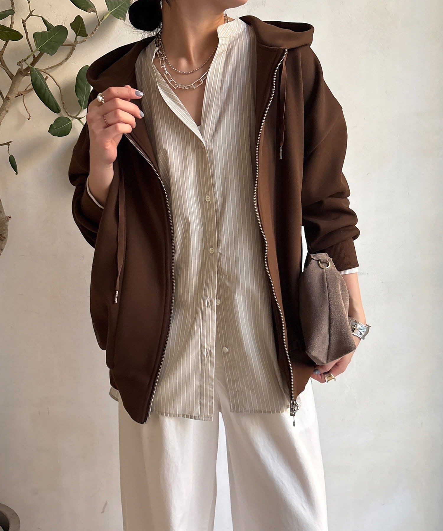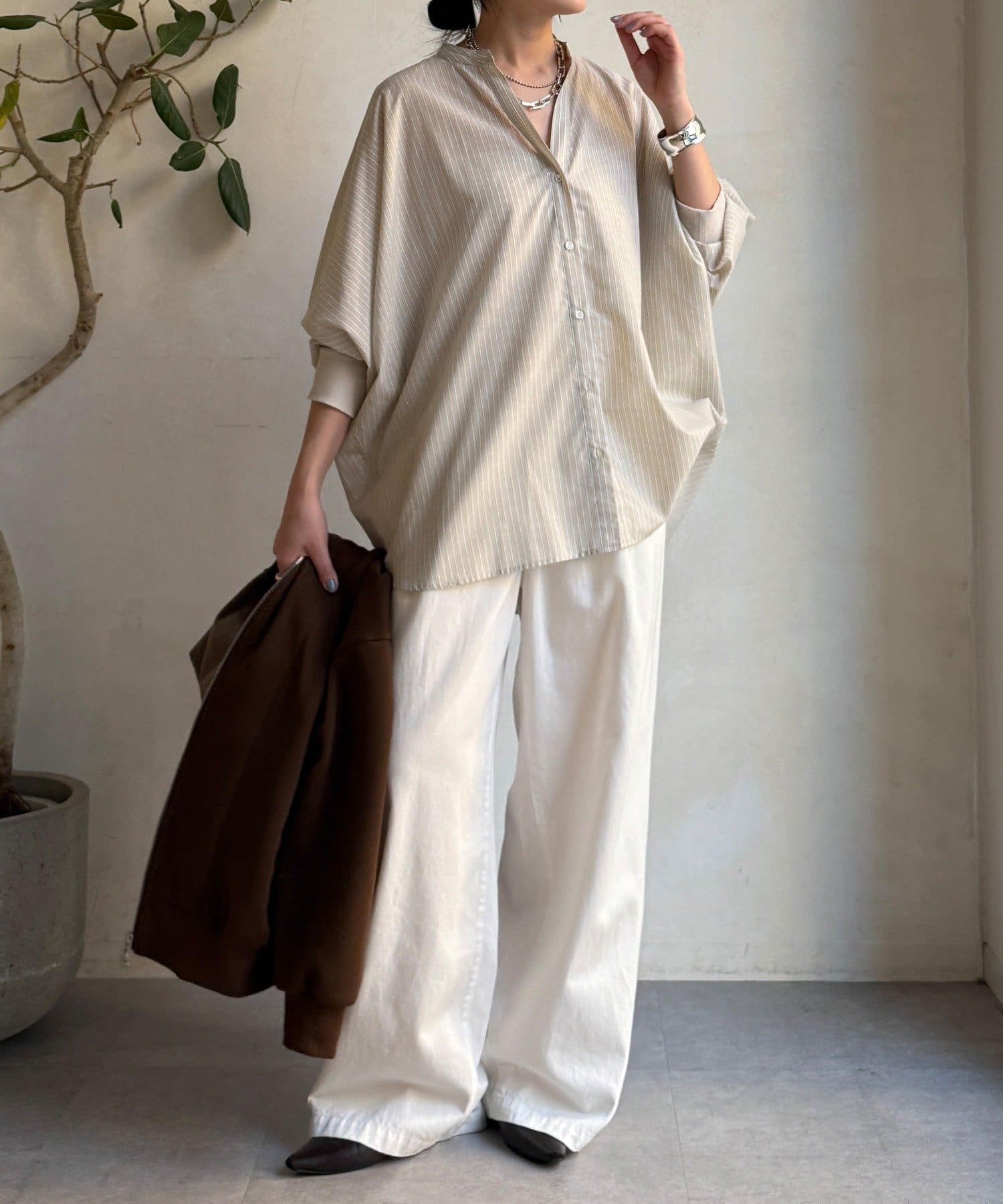 ボトムスも選ばない何にでも合わせやすいアイテムです。