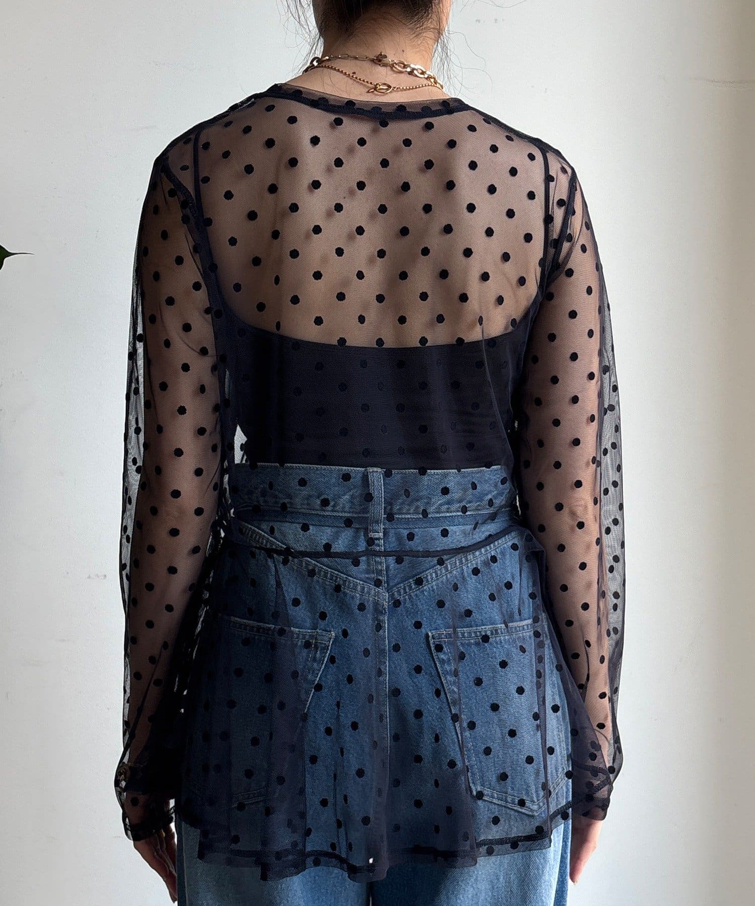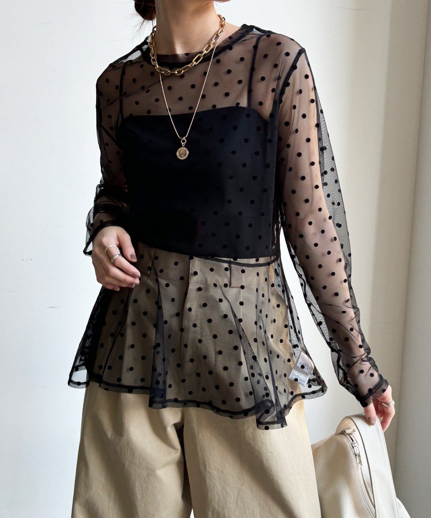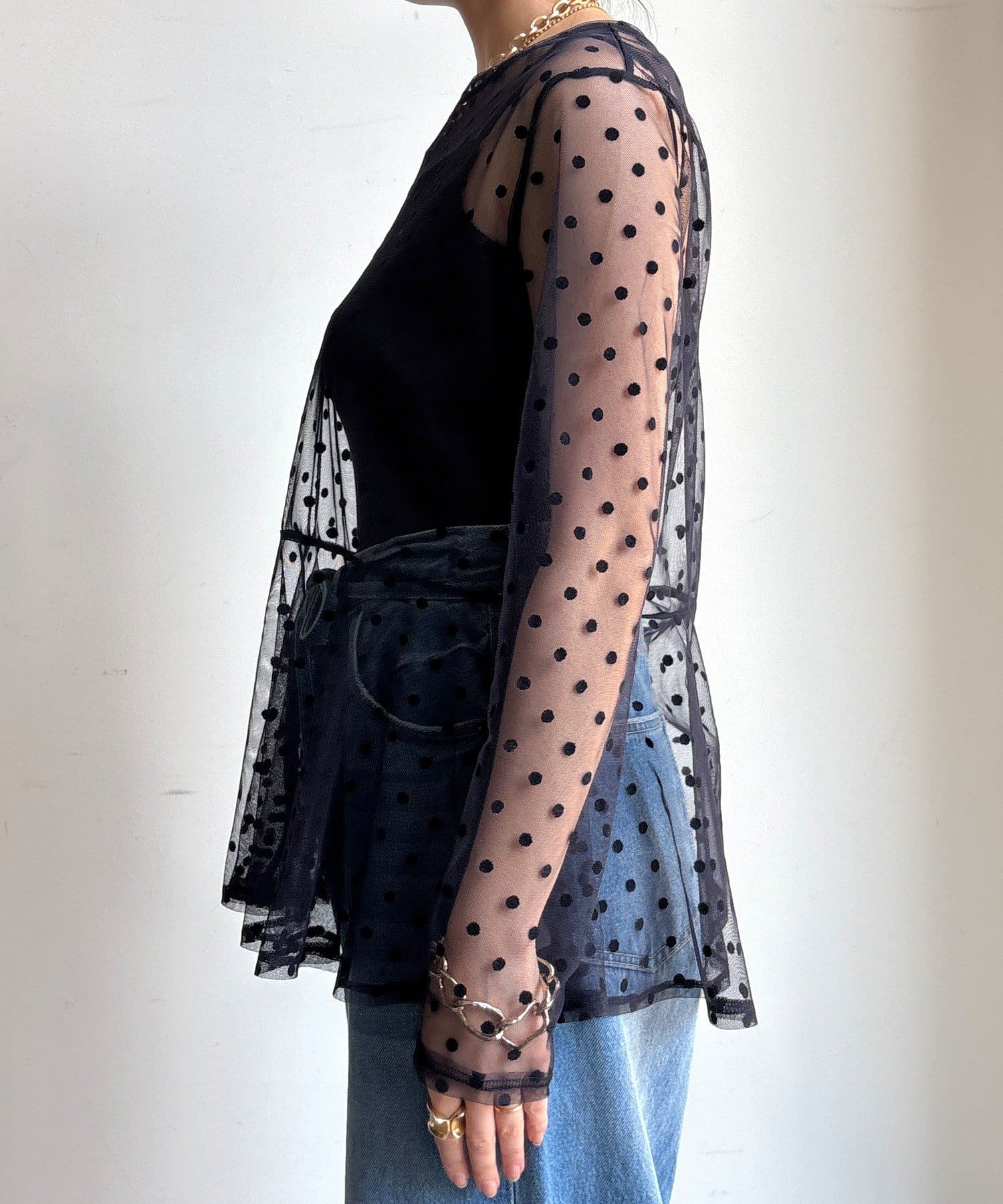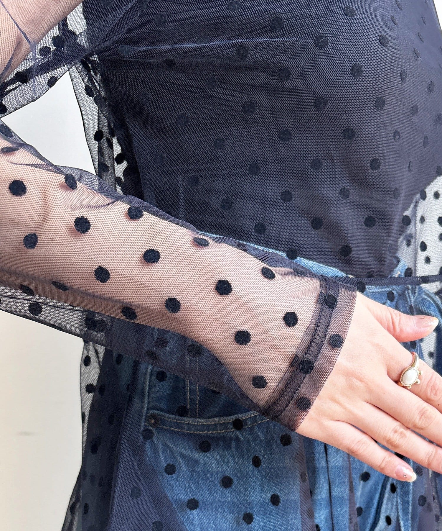ふんわりとした透け感が魅力の、ドットチュールチュニック。