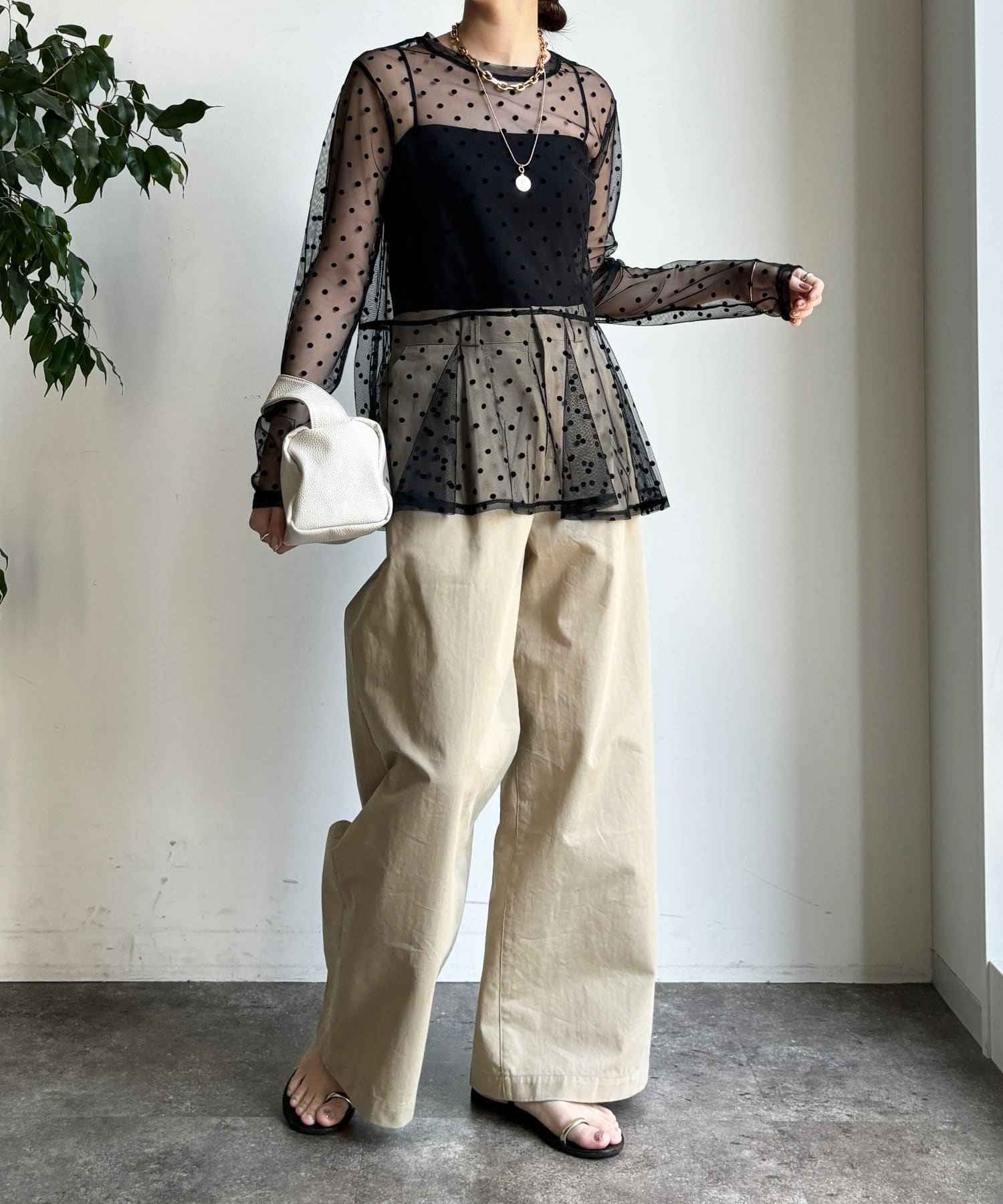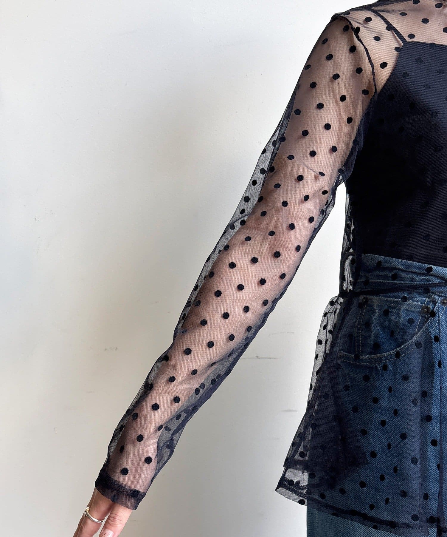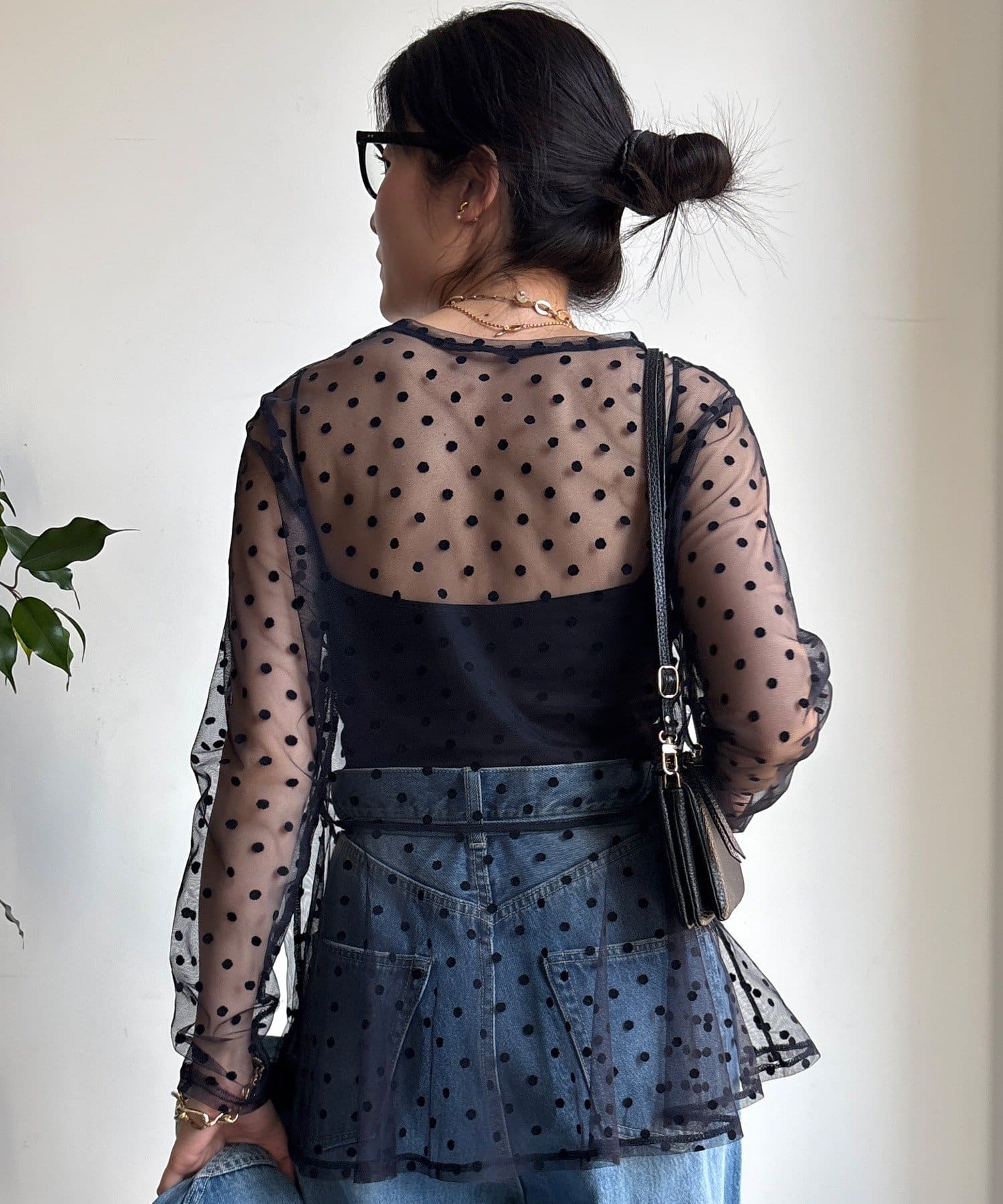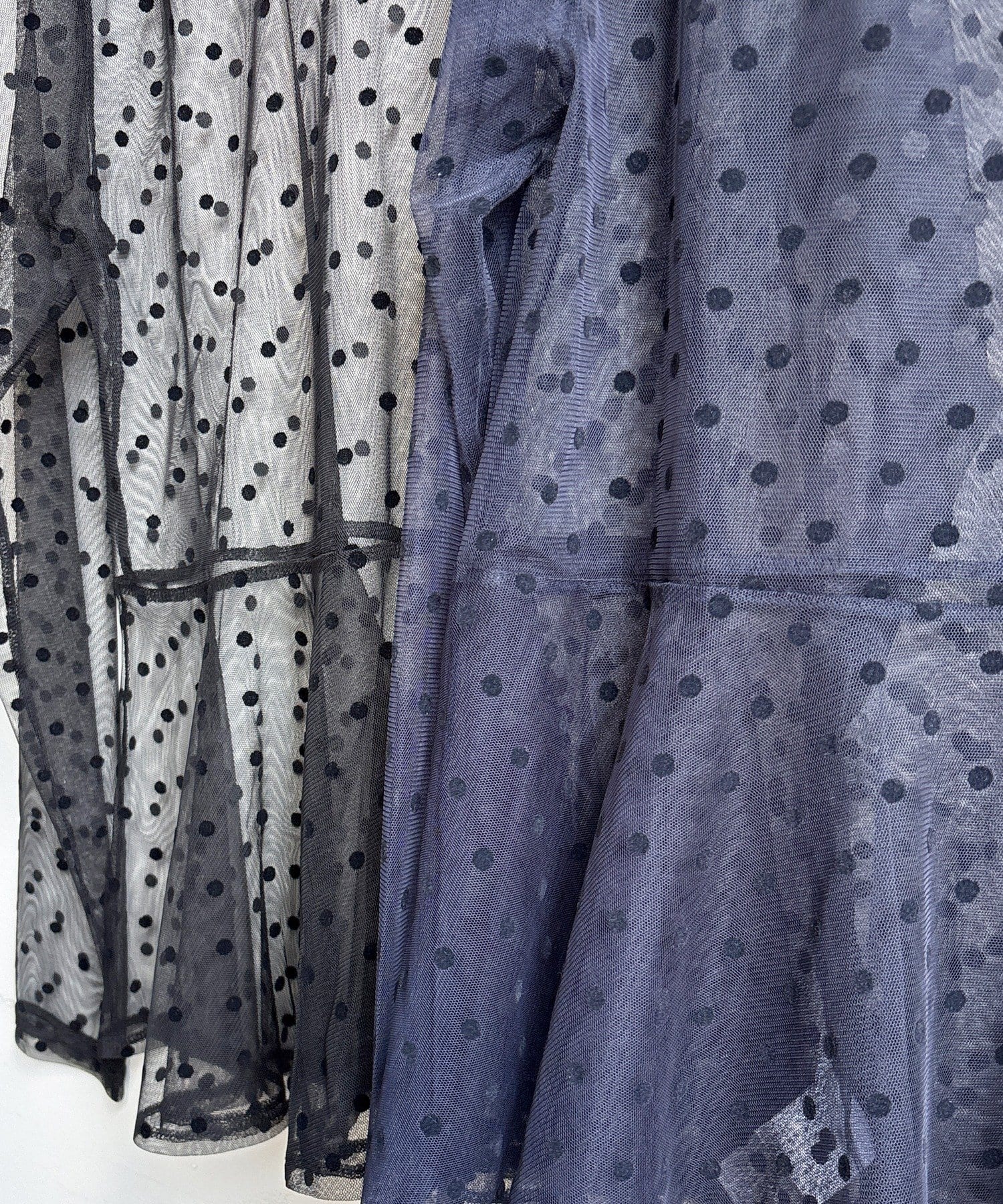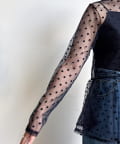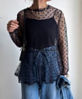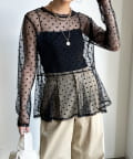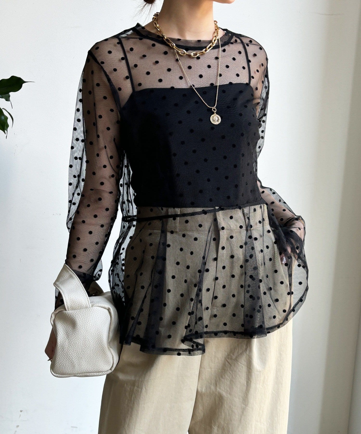 ふんわりとした透け感が魅力の、ドットチュールチュニック。