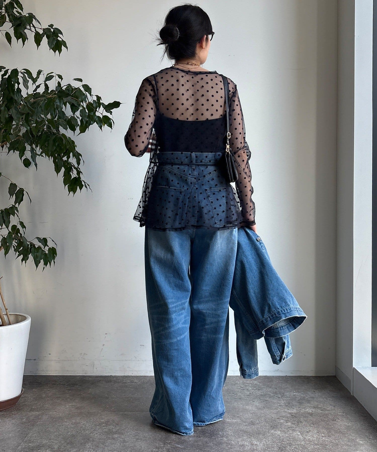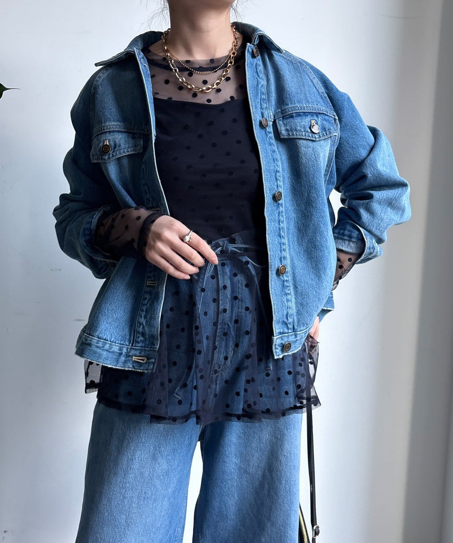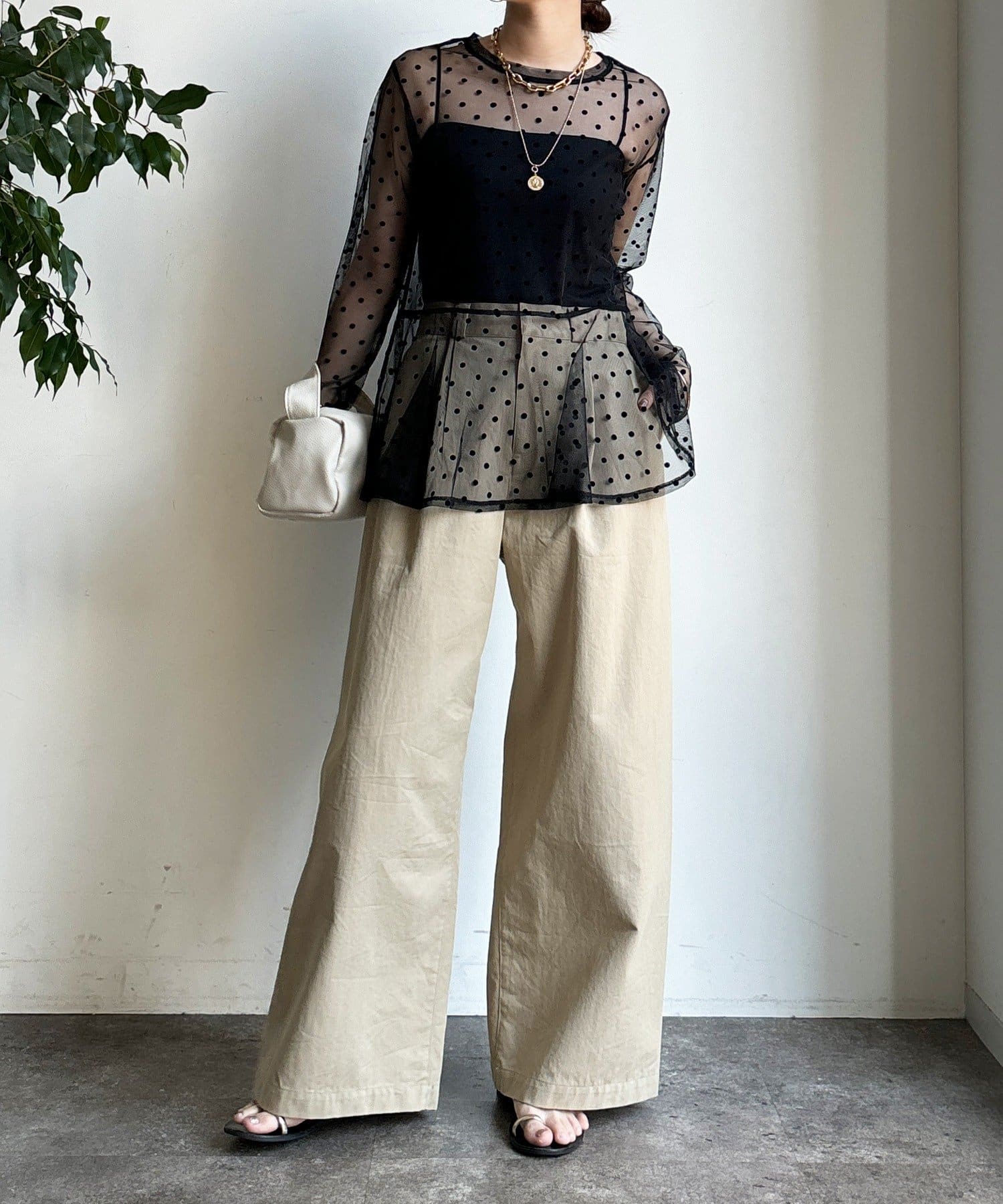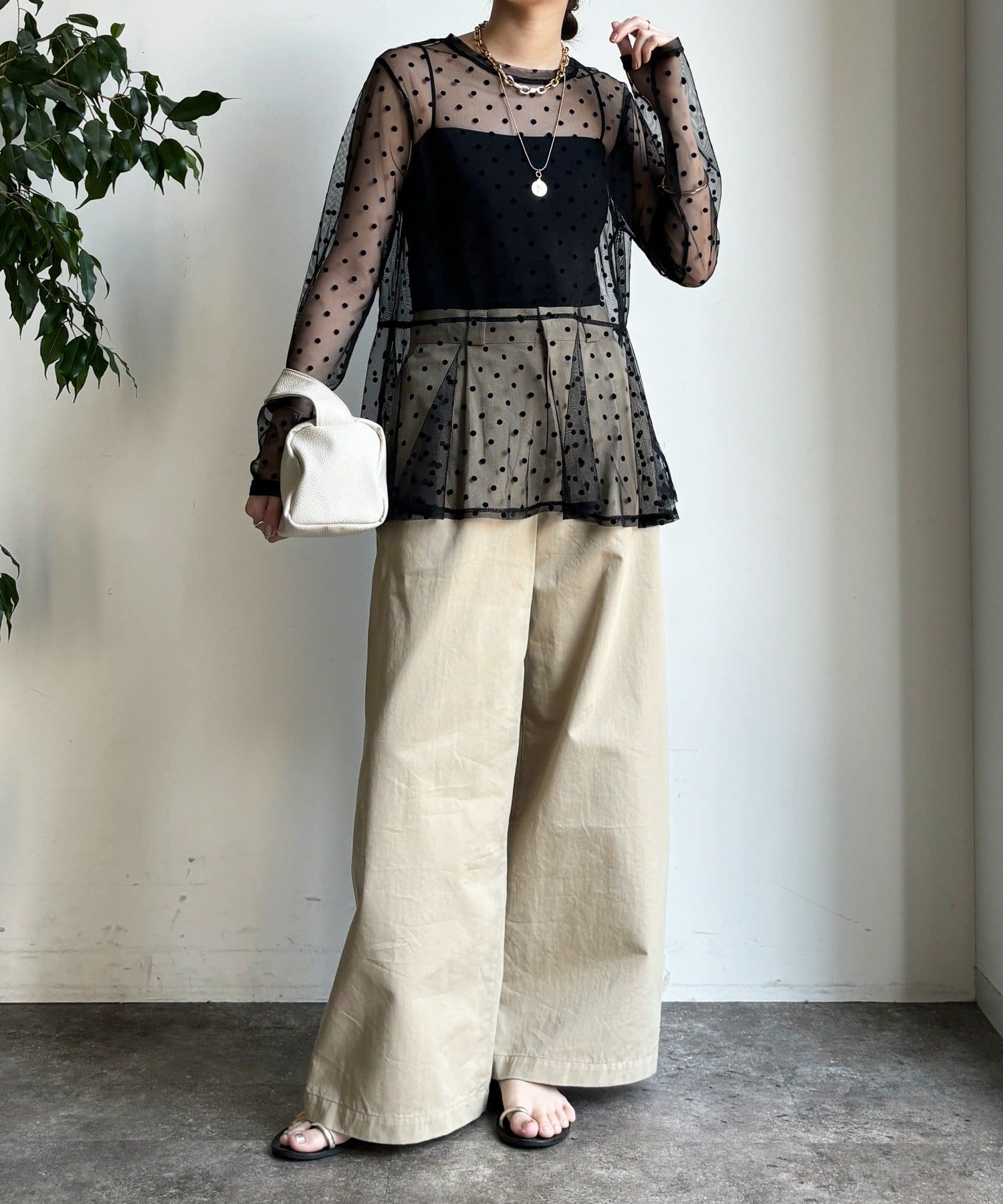 ふんわりとした透け感が魅力の、ドットチュールチュニック。