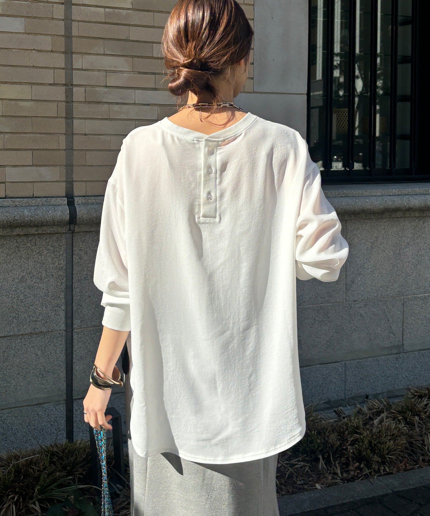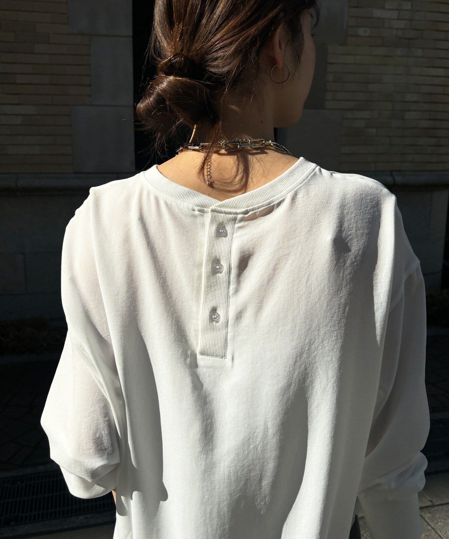 袖リブバックボタンジョーゼットロゴプルオーバー