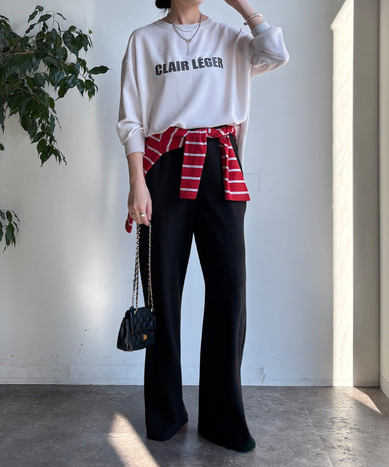 カジュアルさもありながら、ジョーゼット素材のきれいめな印象もプラスし、大人なスタイルに仕上がります。