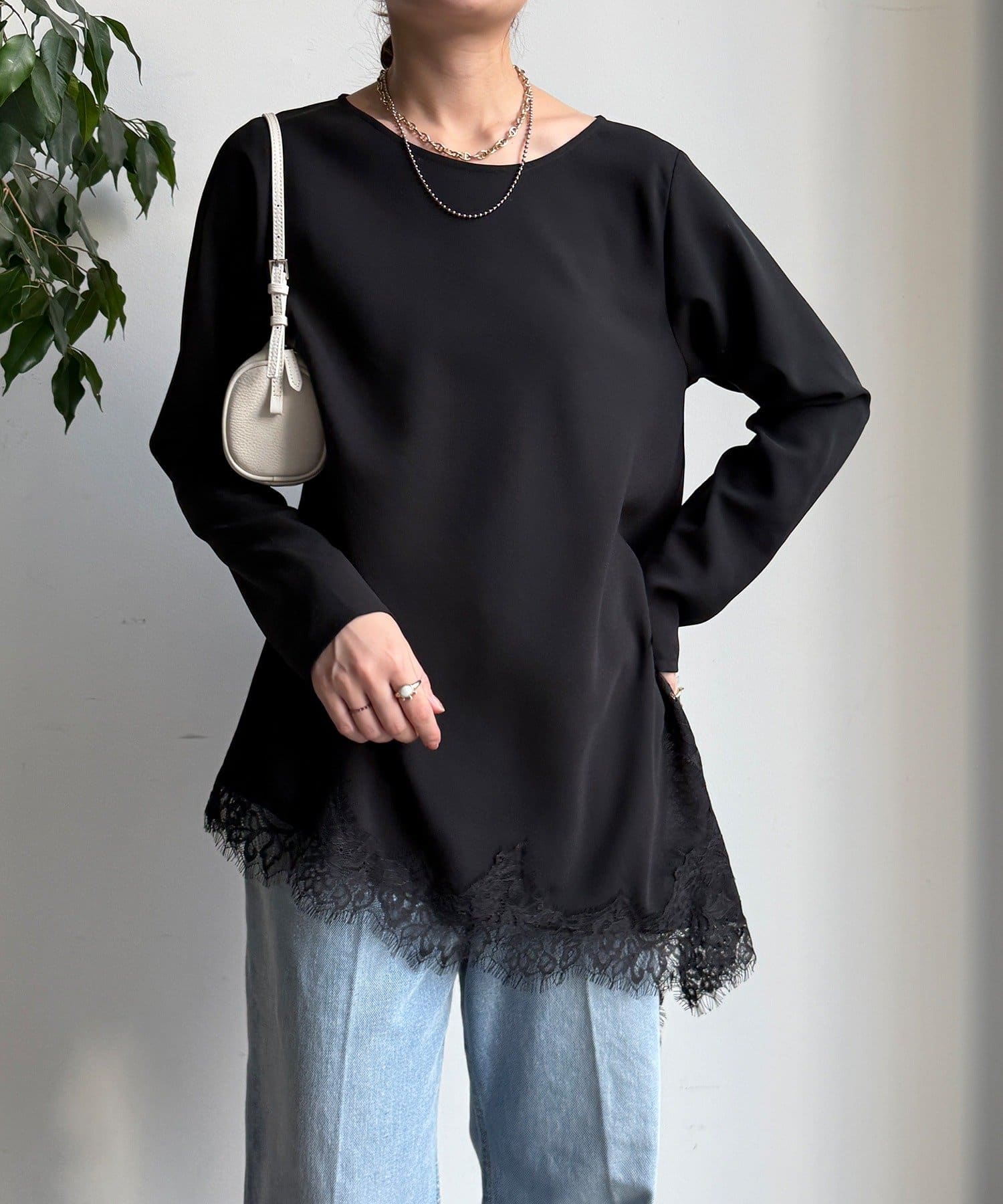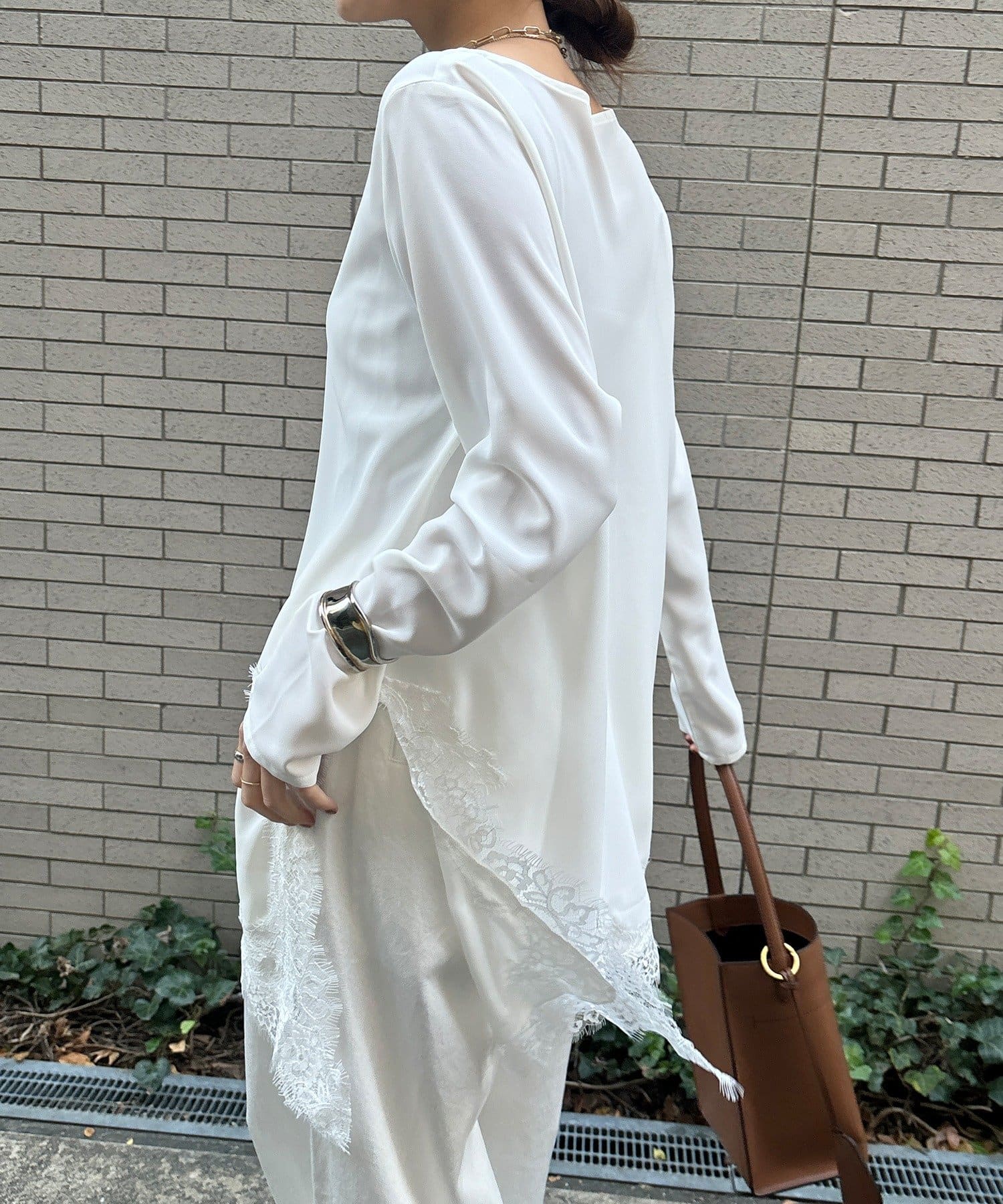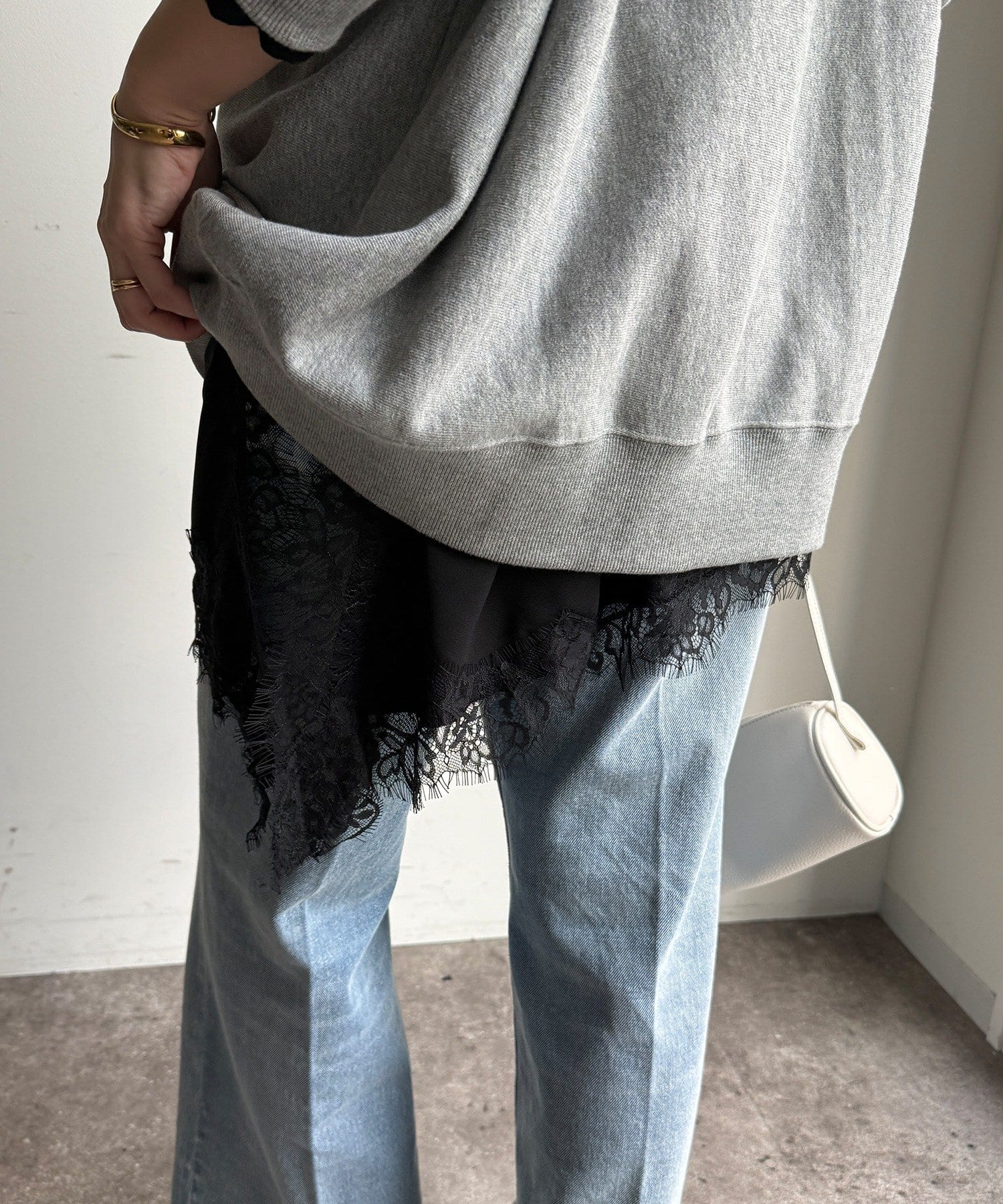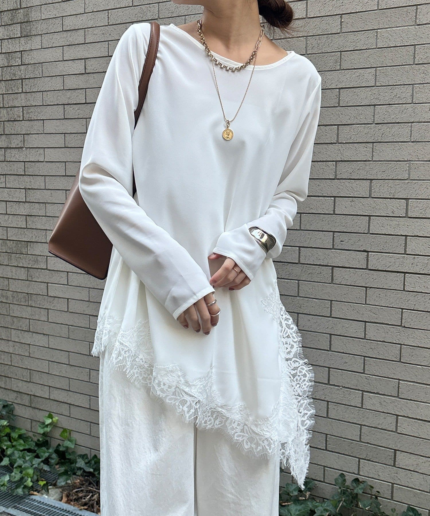 また、裾にはアシンメトリーのレースデザインをプラスすることで、レイヤードした際ポイントとなってくれる1枚に。